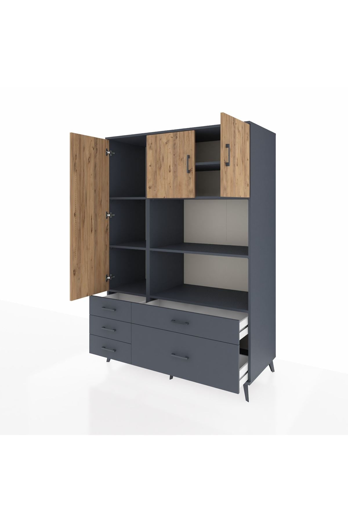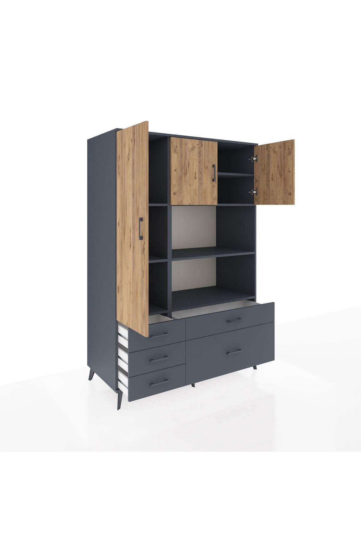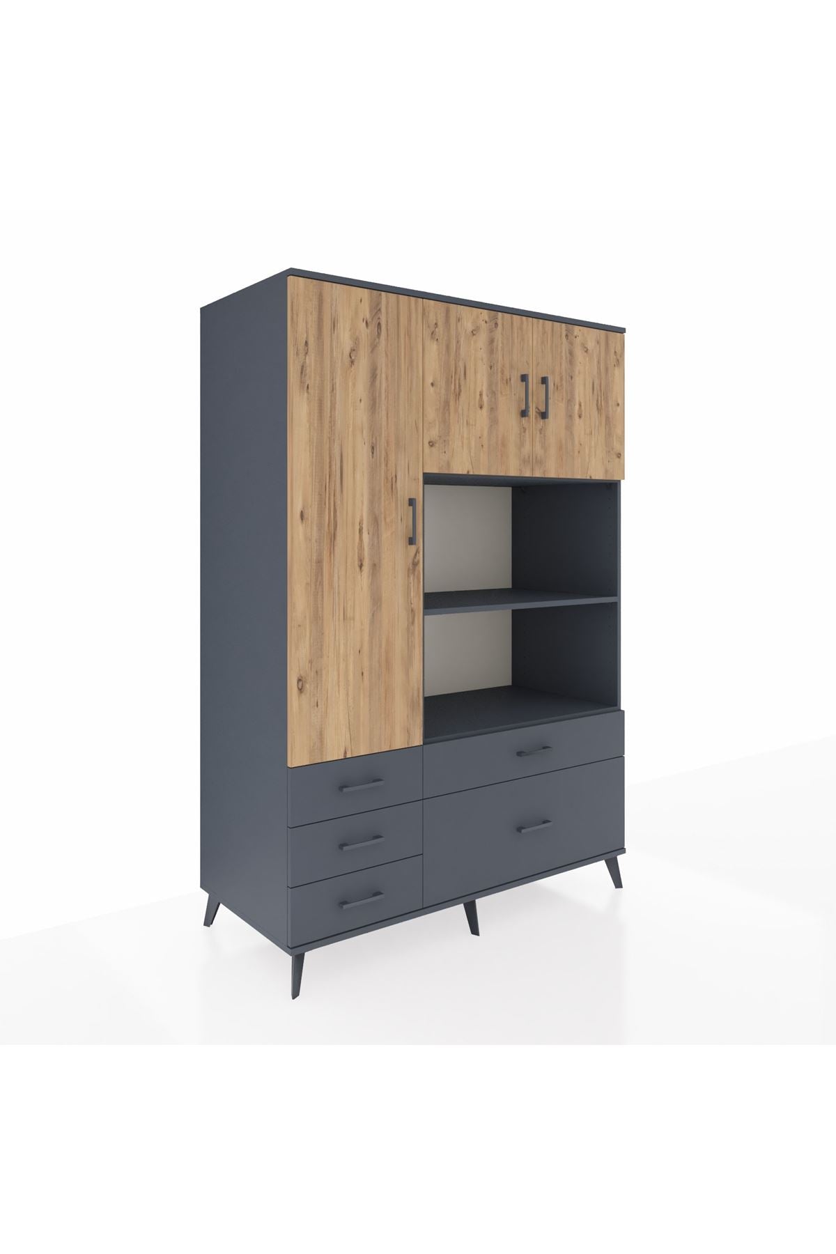 Kronos Dolap 7 Raflı 5 Çekmeceli 3 Kapaklı 132x59x195 Antrasit-Çam/Antrasit