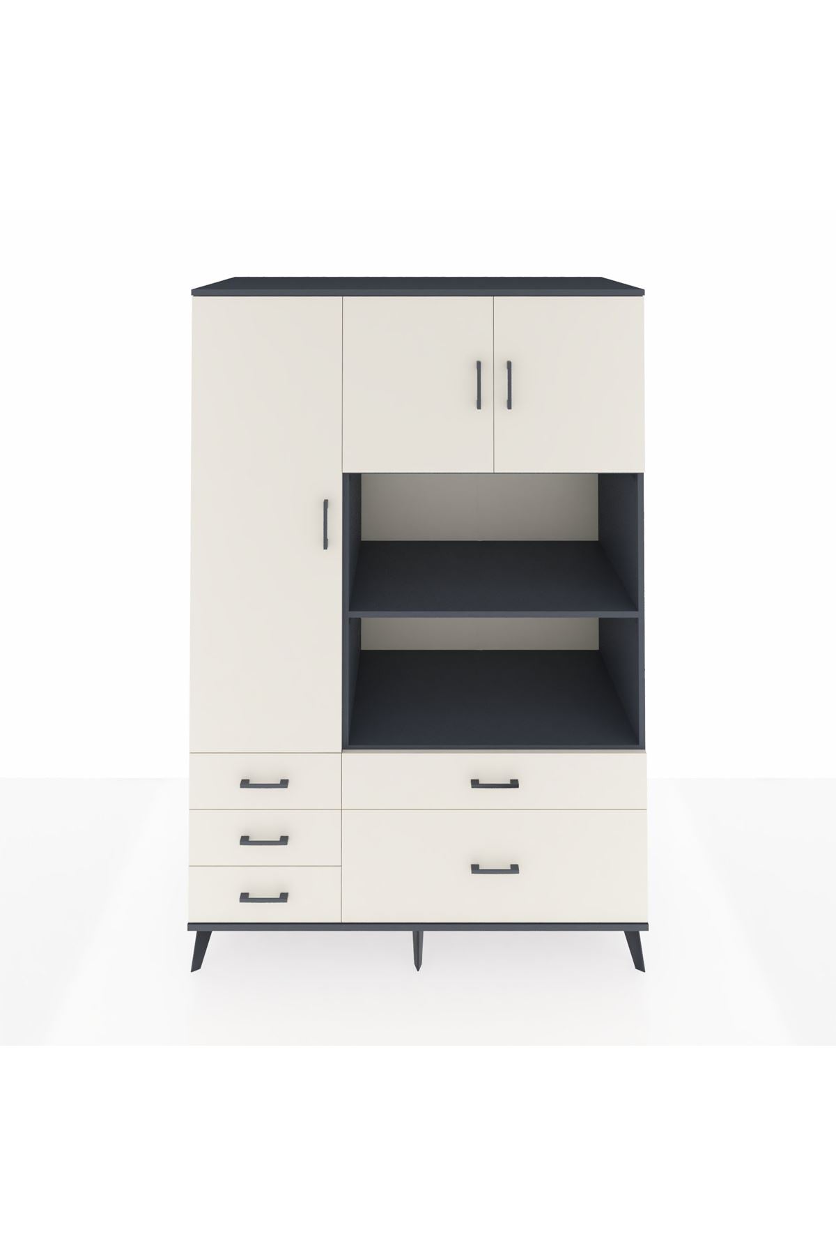 Kronos Dolap 7 Raflı 5 Çekmeceli 3 Kapaklı 132x59x195 Antrasit-Aytaşı/Aytaşı