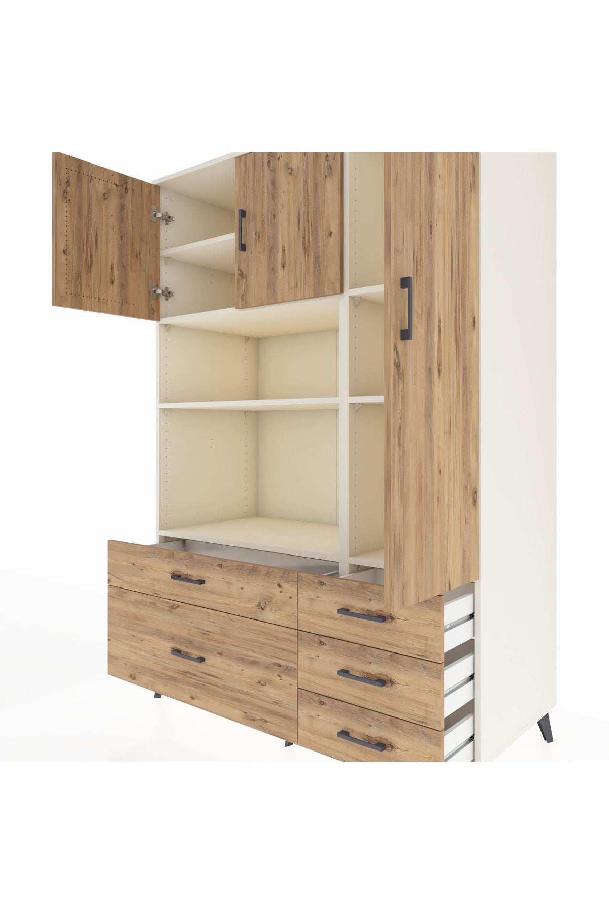 Kronos Dolap 7 Raflı 5 Çekmeceli 3 Kapaklı 132x59x195 Aytaşı-Çam/Çam