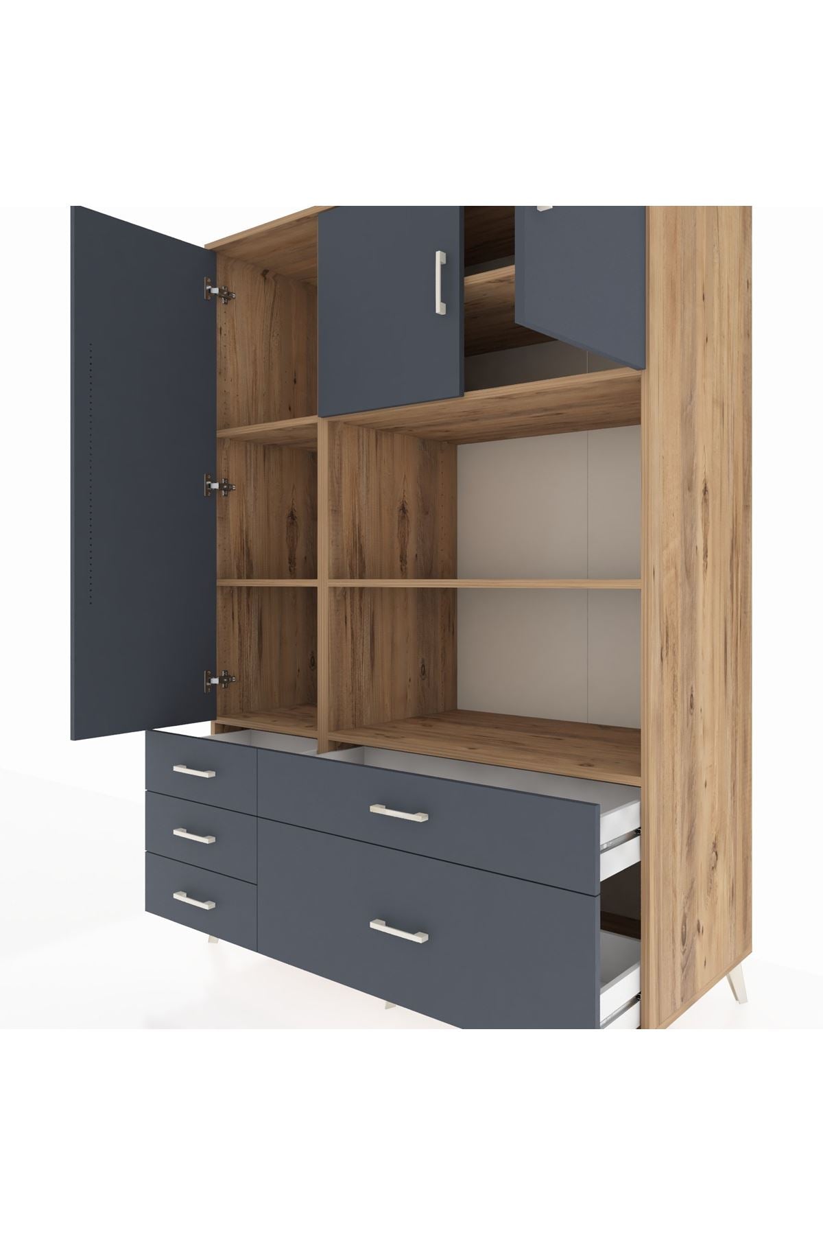 Kronos Dolap 7 Raflı 5 Çekmeceli 3 Kapaklı 132x59x195 Çam-Antrasit/Antrasit