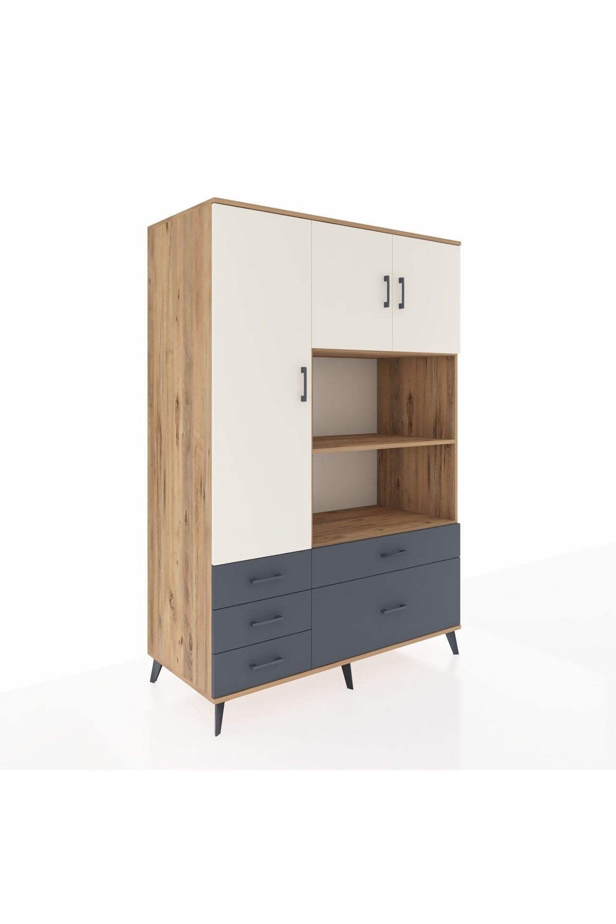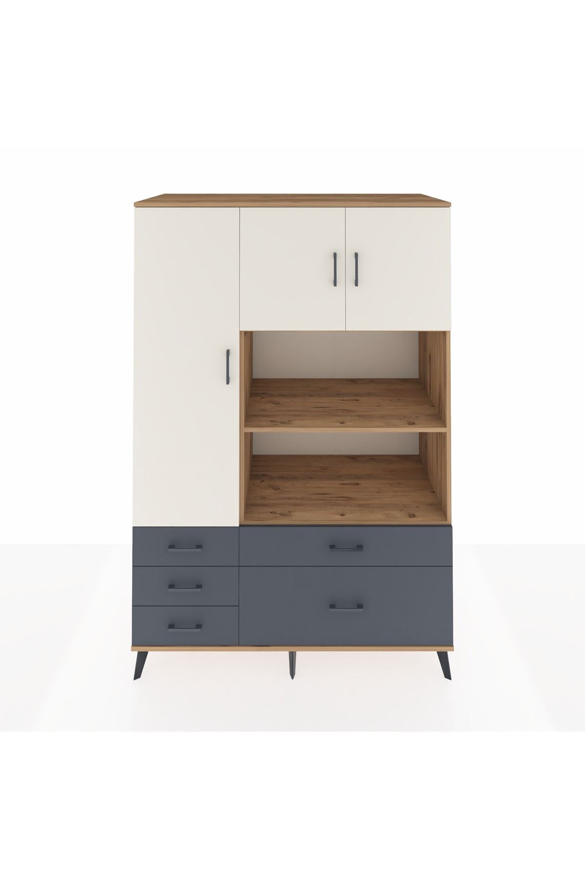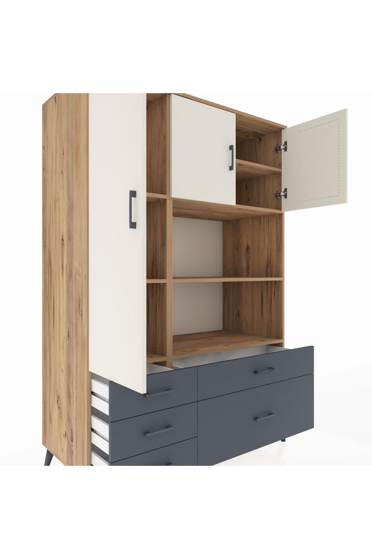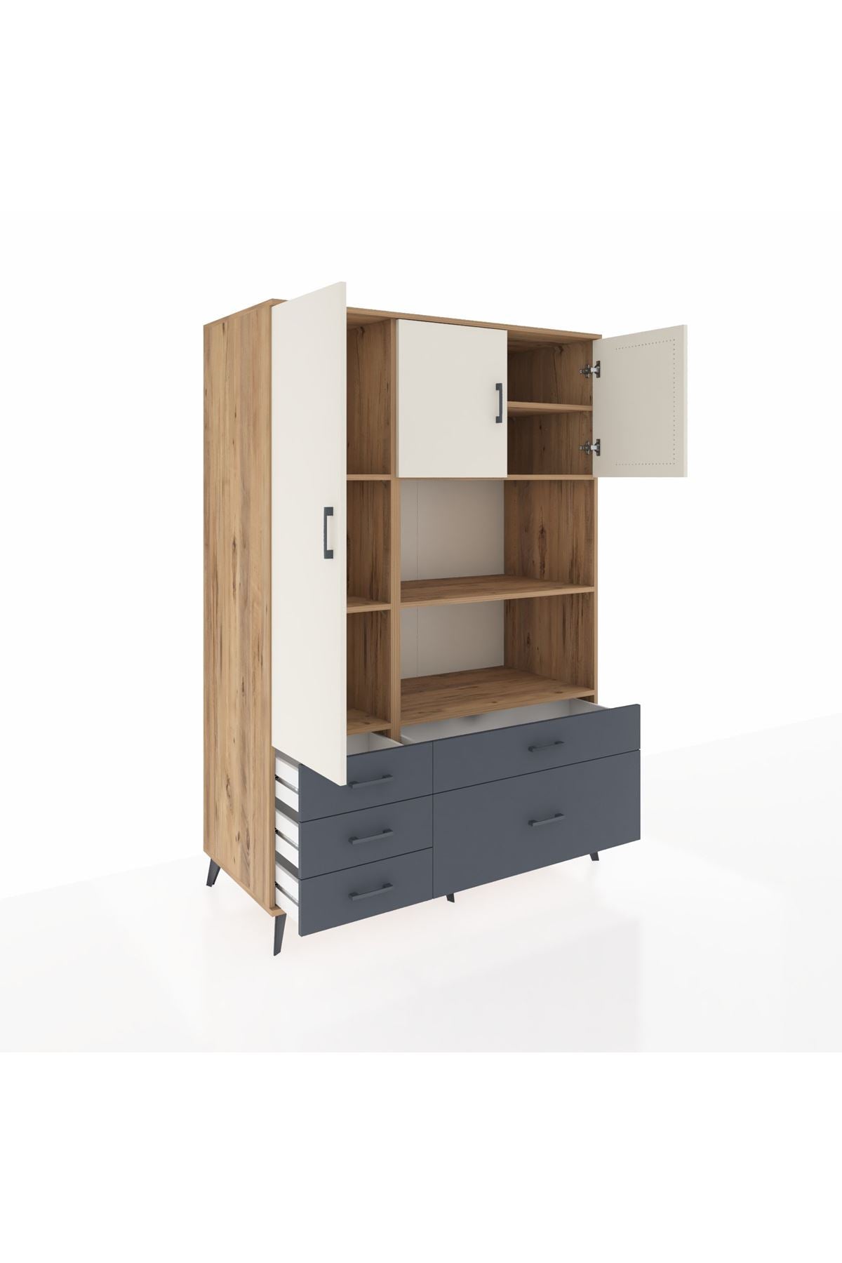Kronos Dolap 7 Raflı 5 Çekmeceli 3 Kapaklı 132x59x195 Çam-Aytaşı/Antrasit