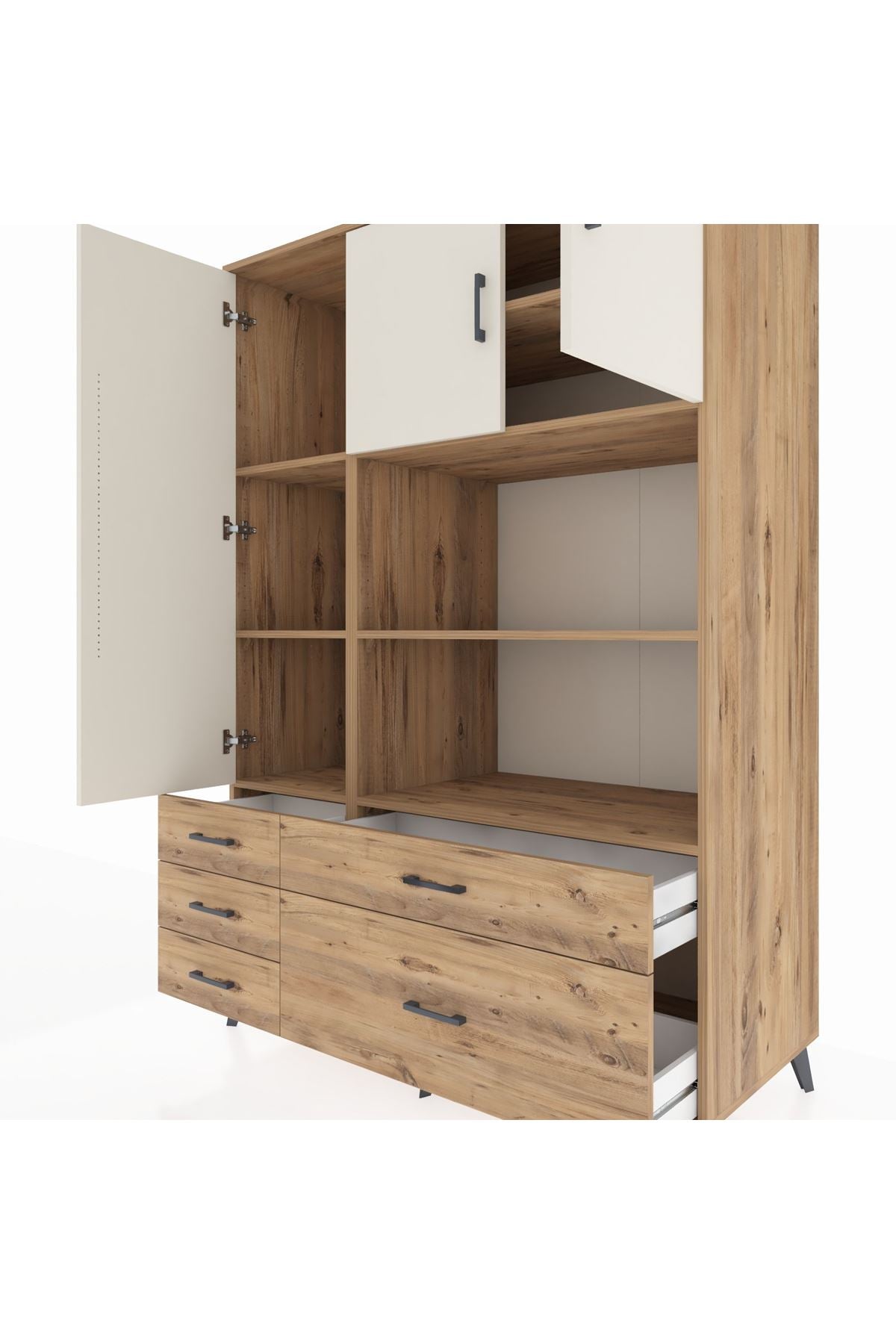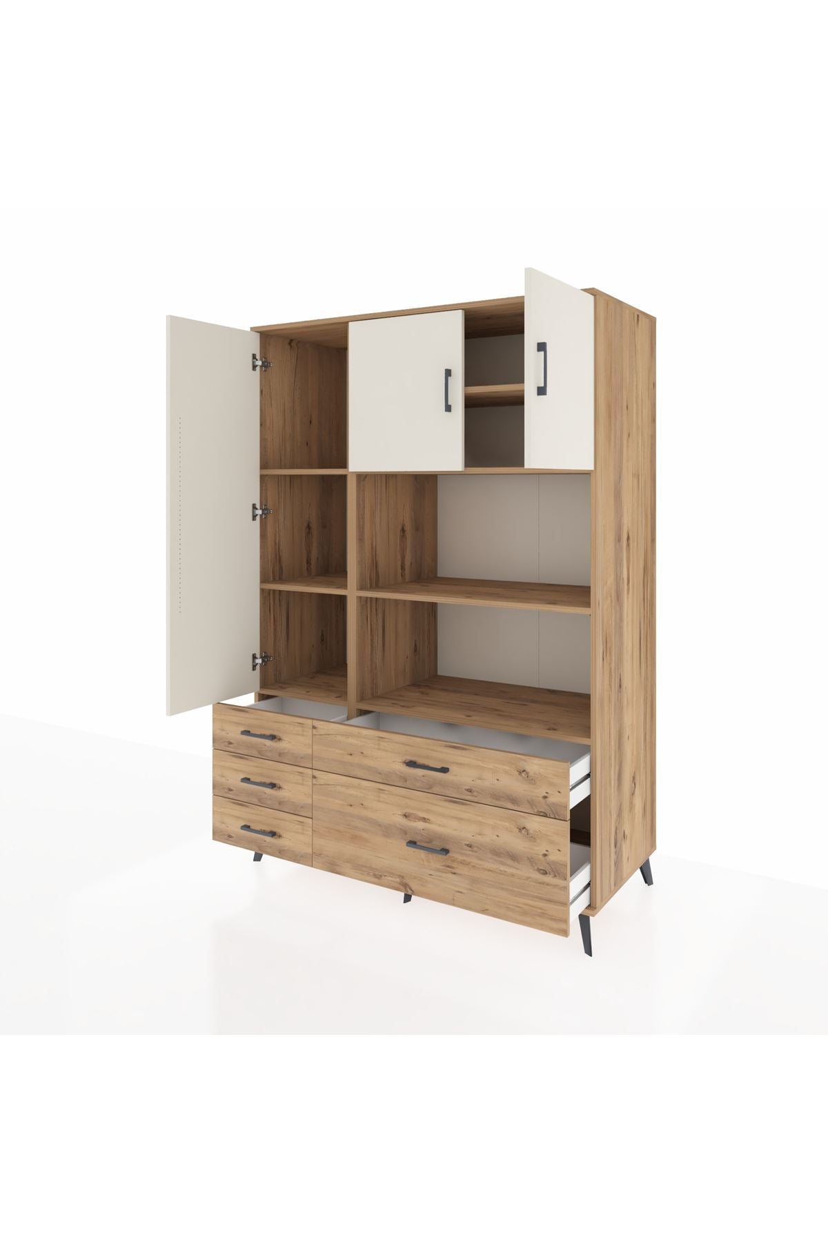 Kronos Dolap 7 Raflı 5 Çekmeceli 3 Kapaklı 132x59x195 Çam-Aytaşı/Çam