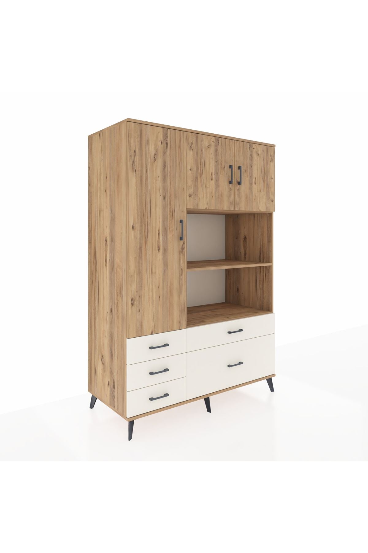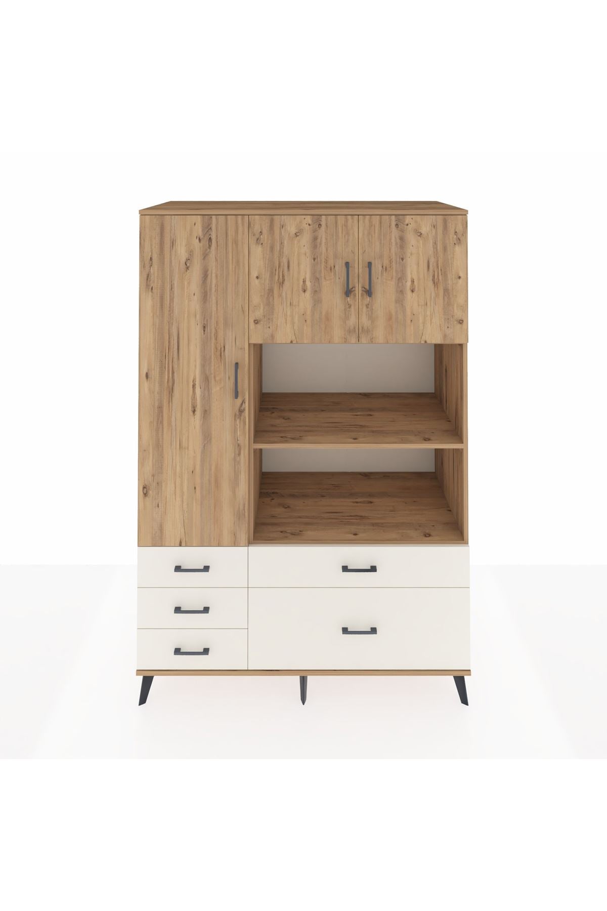 3 kapaklı bölmesiyle büyük eşyalarınızı kolayca saklarken, 5 çekmecesiyle de küçük nesneler için harika bir alan sunar. 🗄️ Çam renginin sıcaklığı ile aytaşı detaylarının modernliği bir arada!
