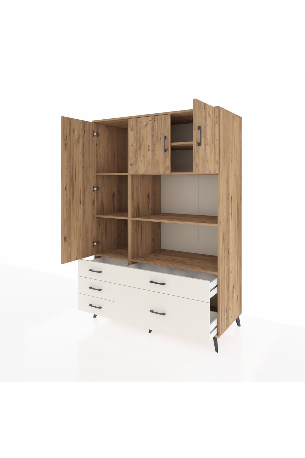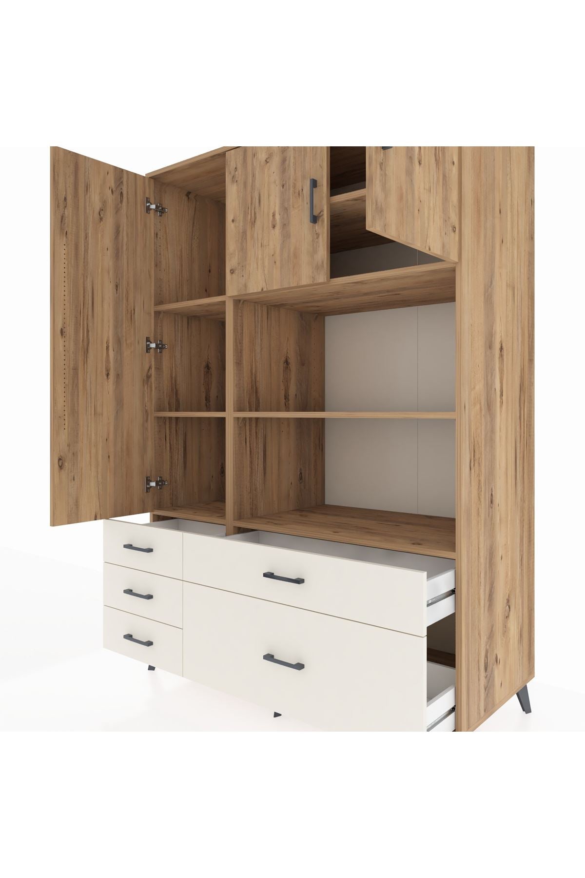 Kronos Dolap 7 Raflı 5 Çekmeceli 3 Kapaklı 132x59x195 Çam-Çam/Aytaşı