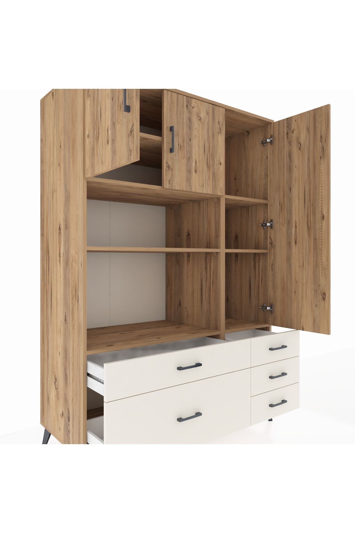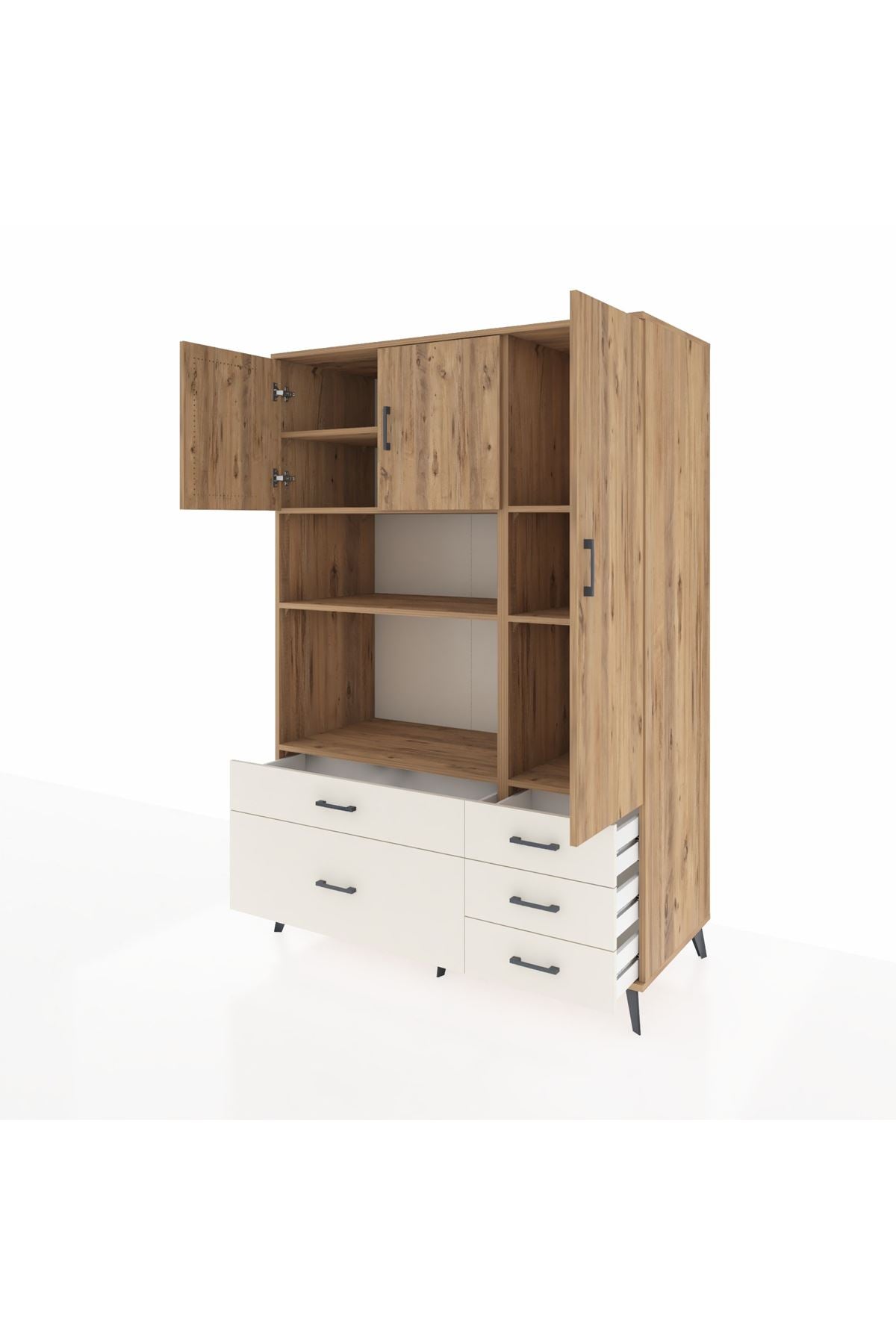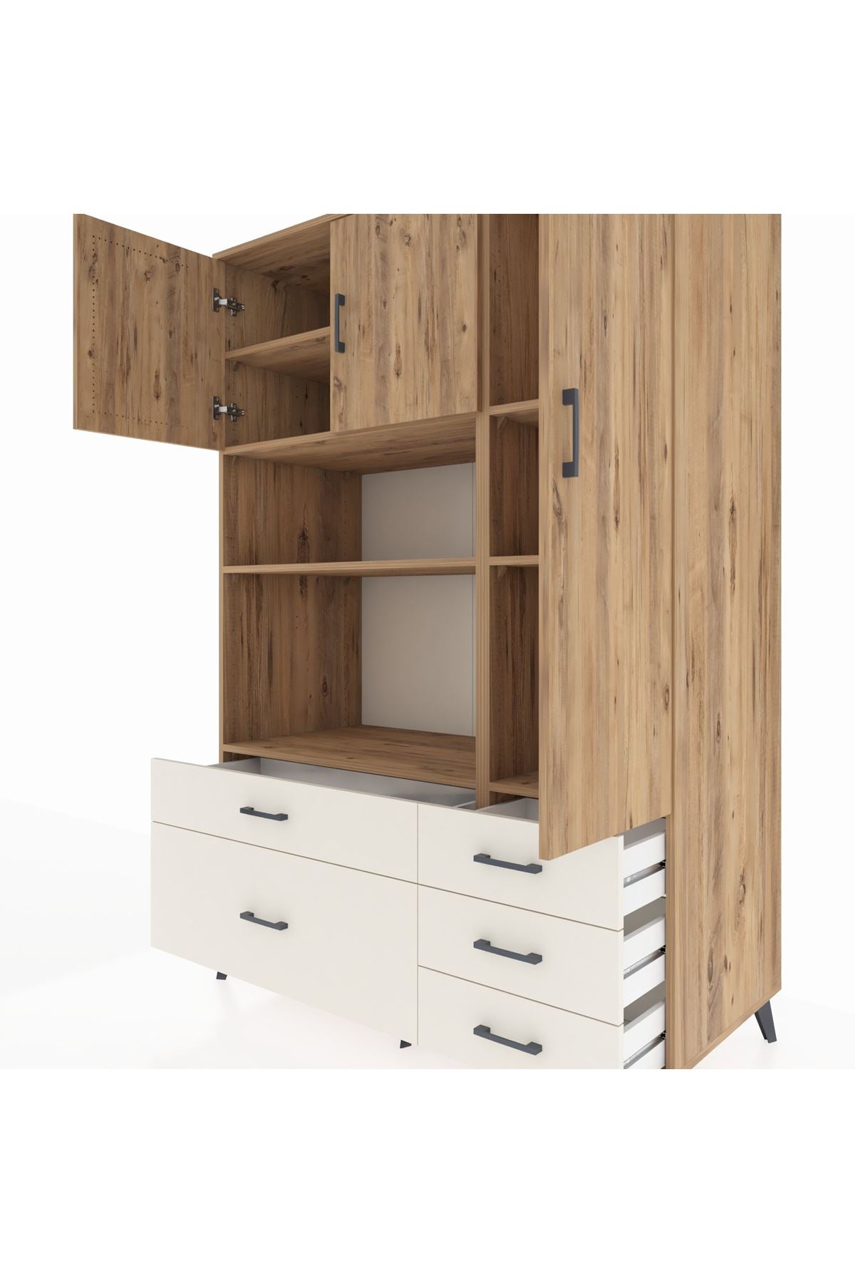 Kronos Dolap 7 Raflı 5 Çekmeceli 3 Kapaklı 132x59x195 Çam-Çam/Aytaşı