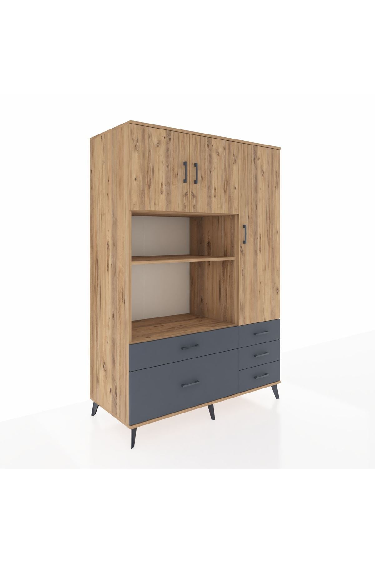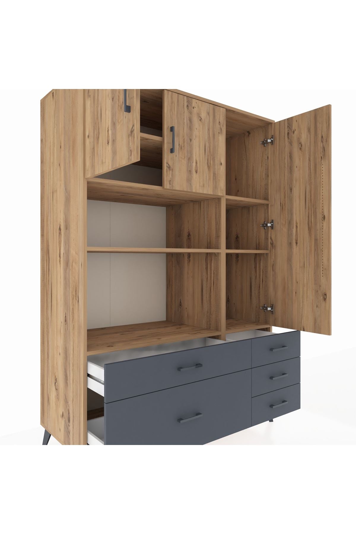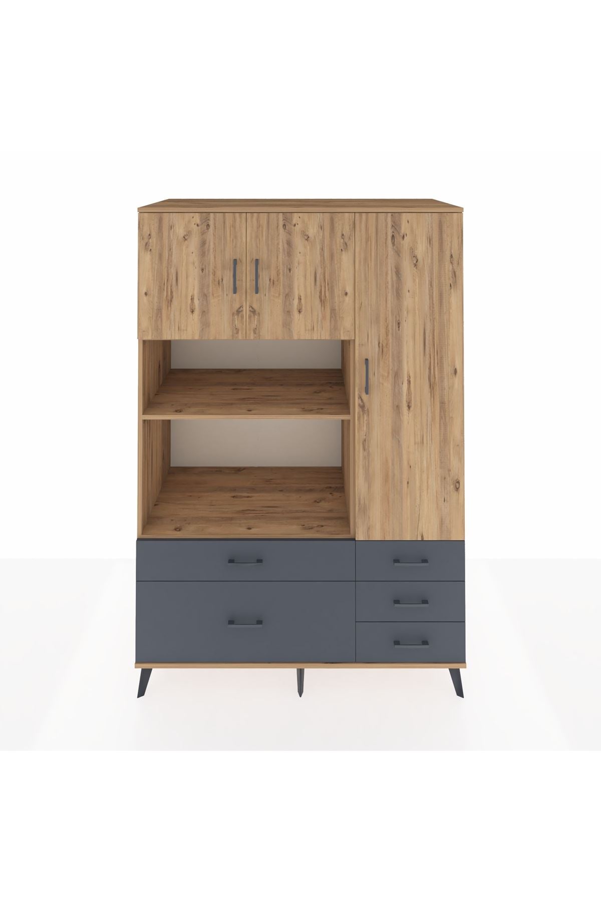 Kronos Dolap 7 Raflı 5 Çekmeceli 3 Kapaklı 132x59x195 Çam-Çam/Antrasit