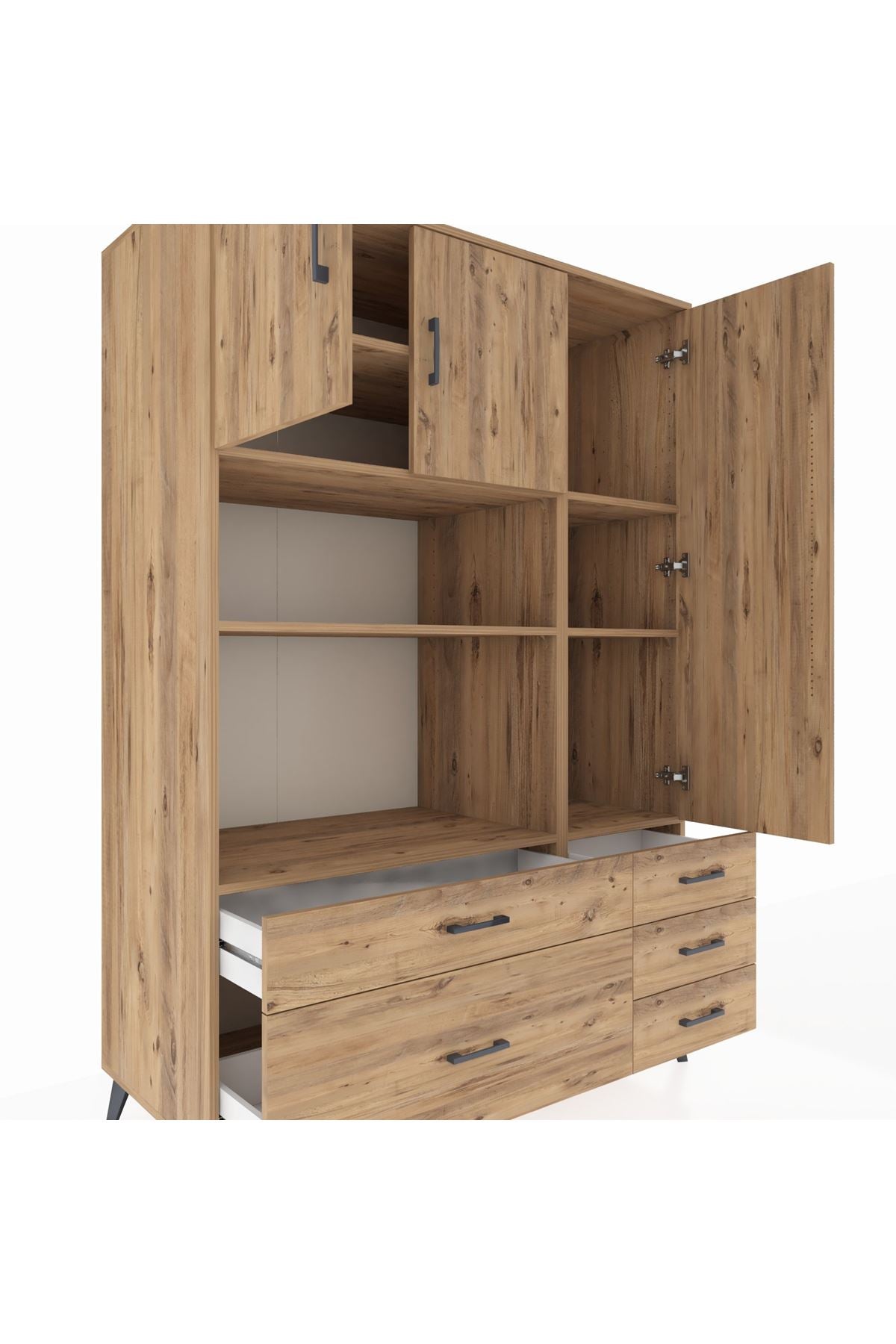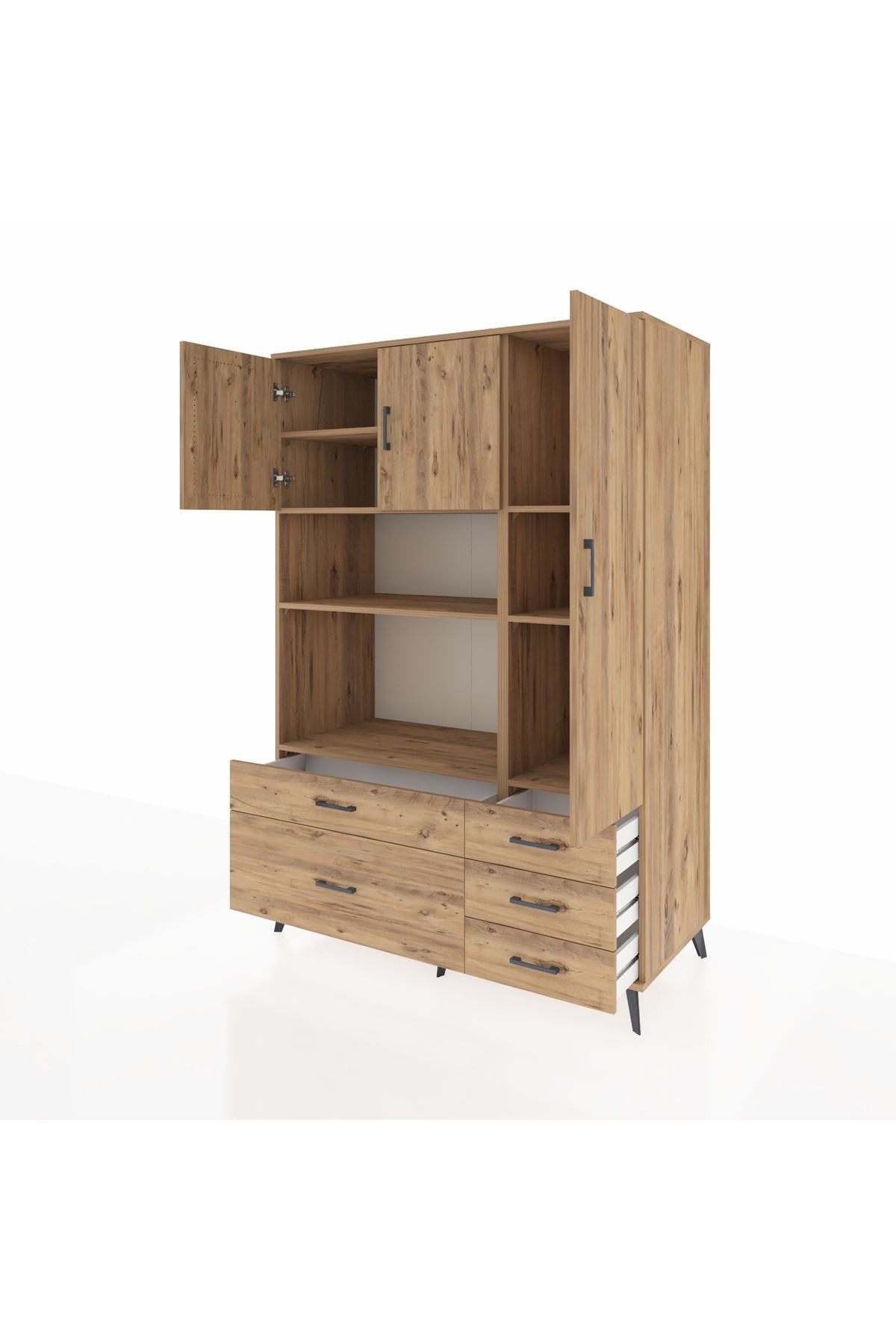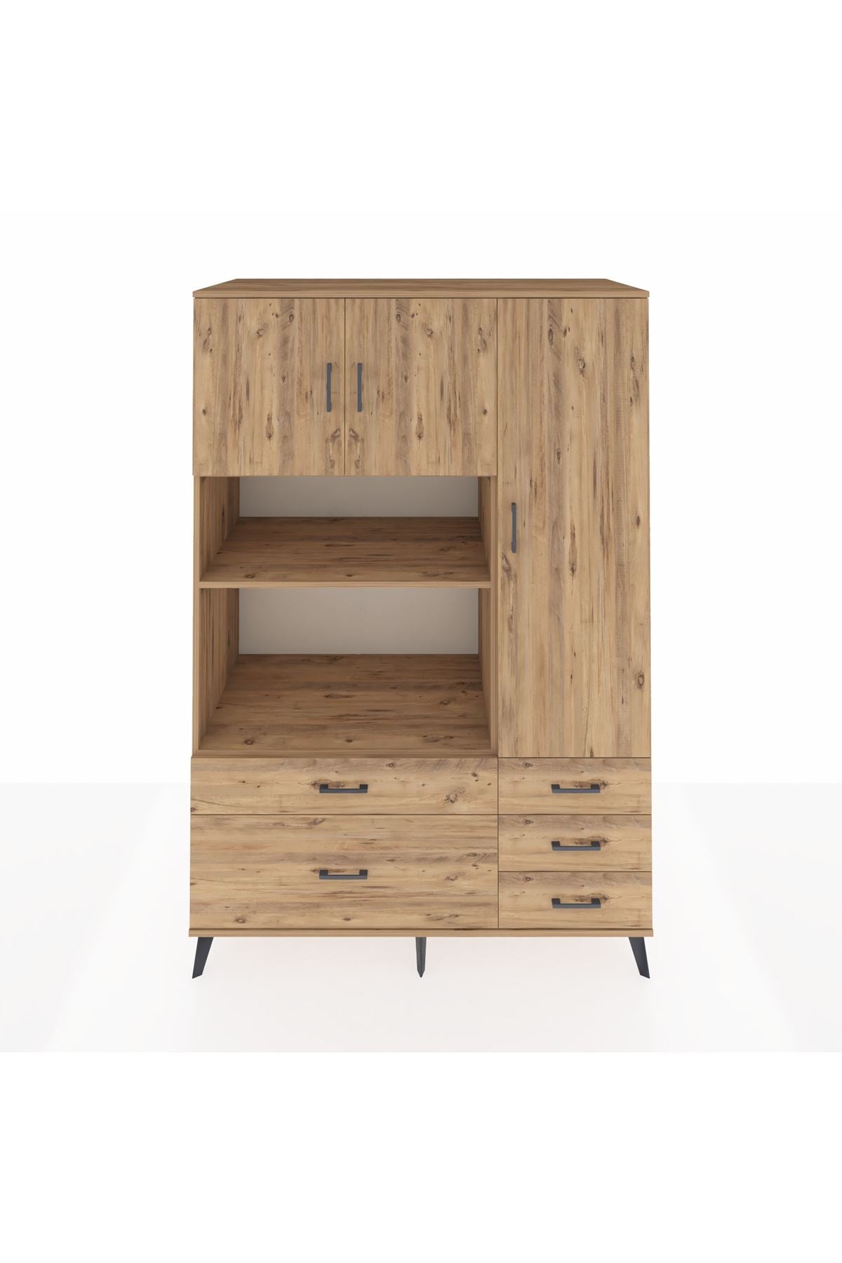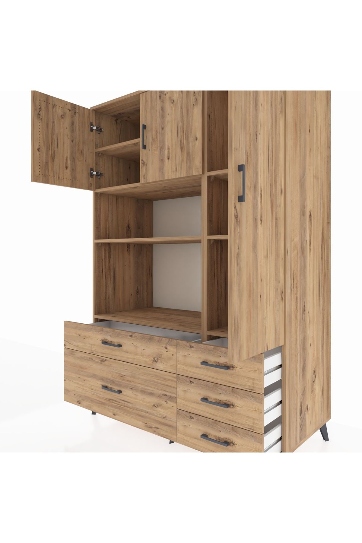 Kronos Dolap 7 Raflı 5 Çekmeceli 3 Kapaklı 132x59x195 Çam-Çam/Çam