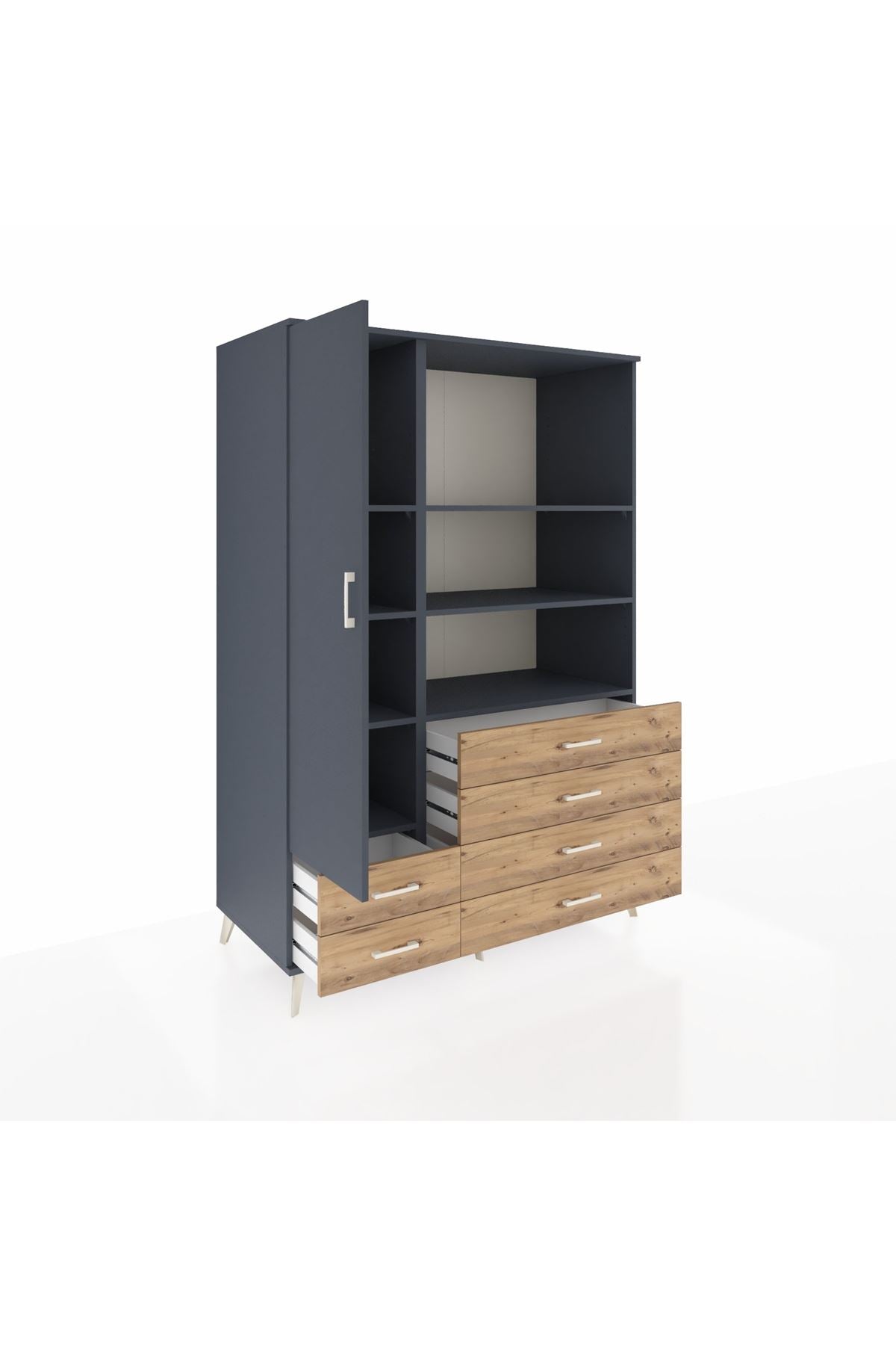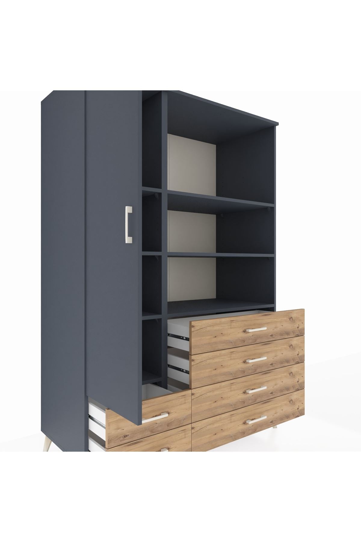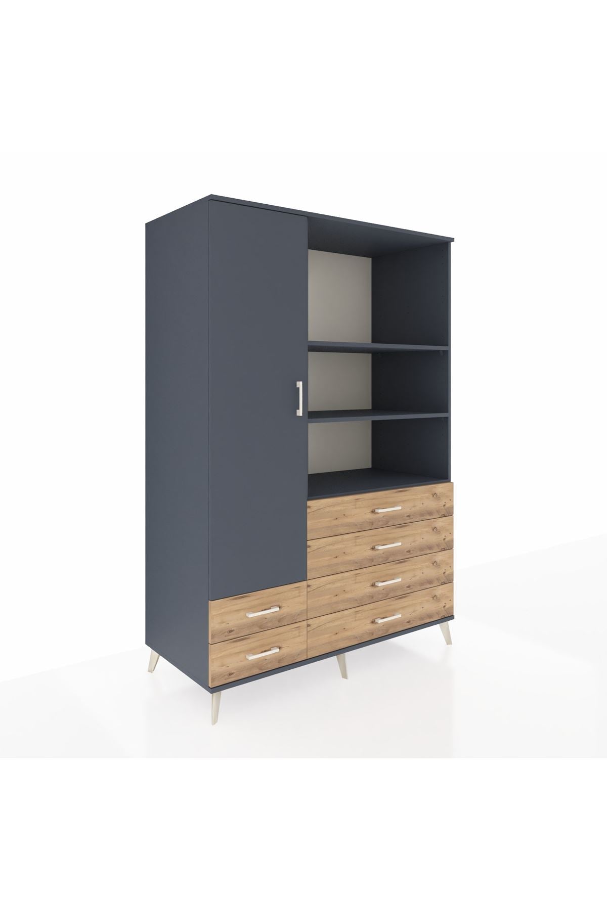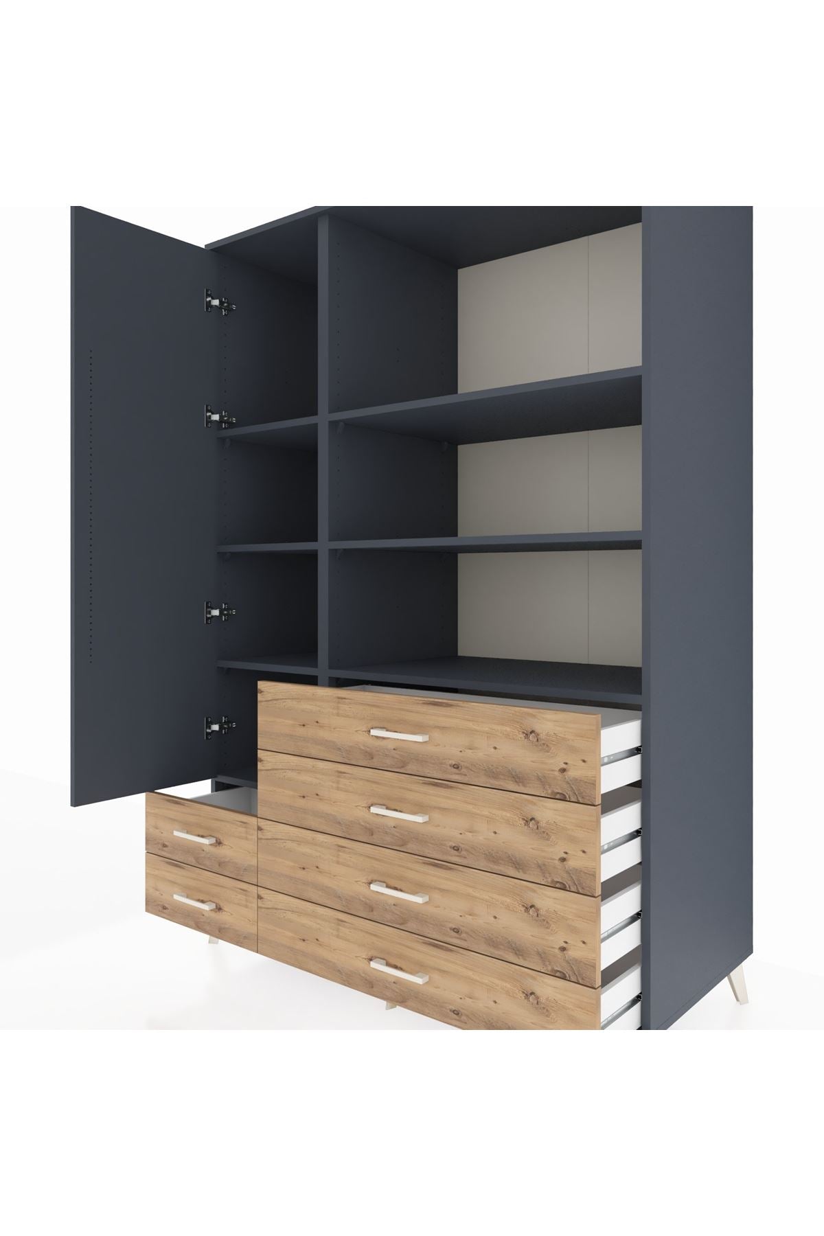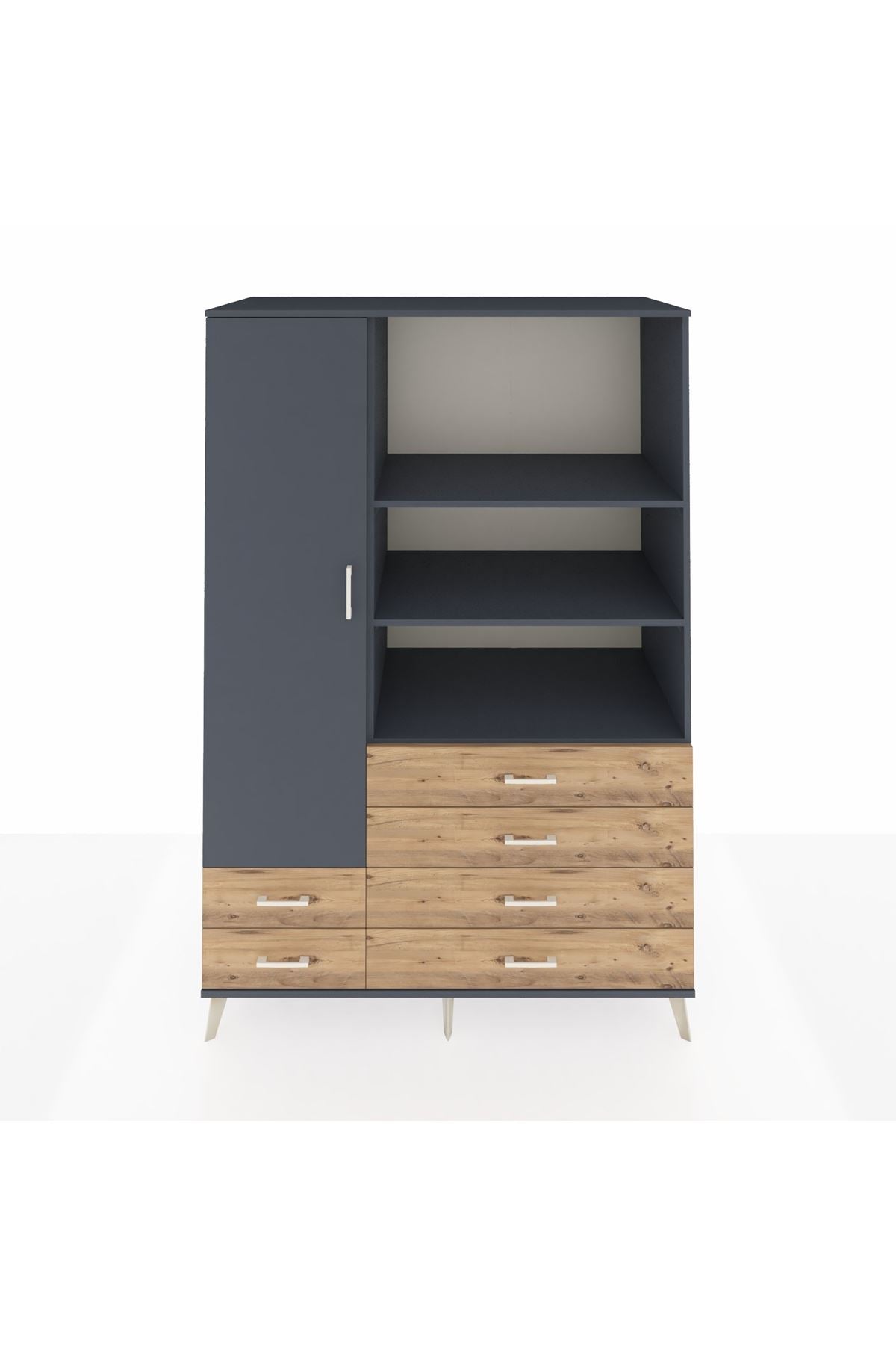 Kronos Dolap 7 Raflı 6 Çekmeceli Tek Kapaklı 132x59x195 Antrasit-Antrasit/Çam