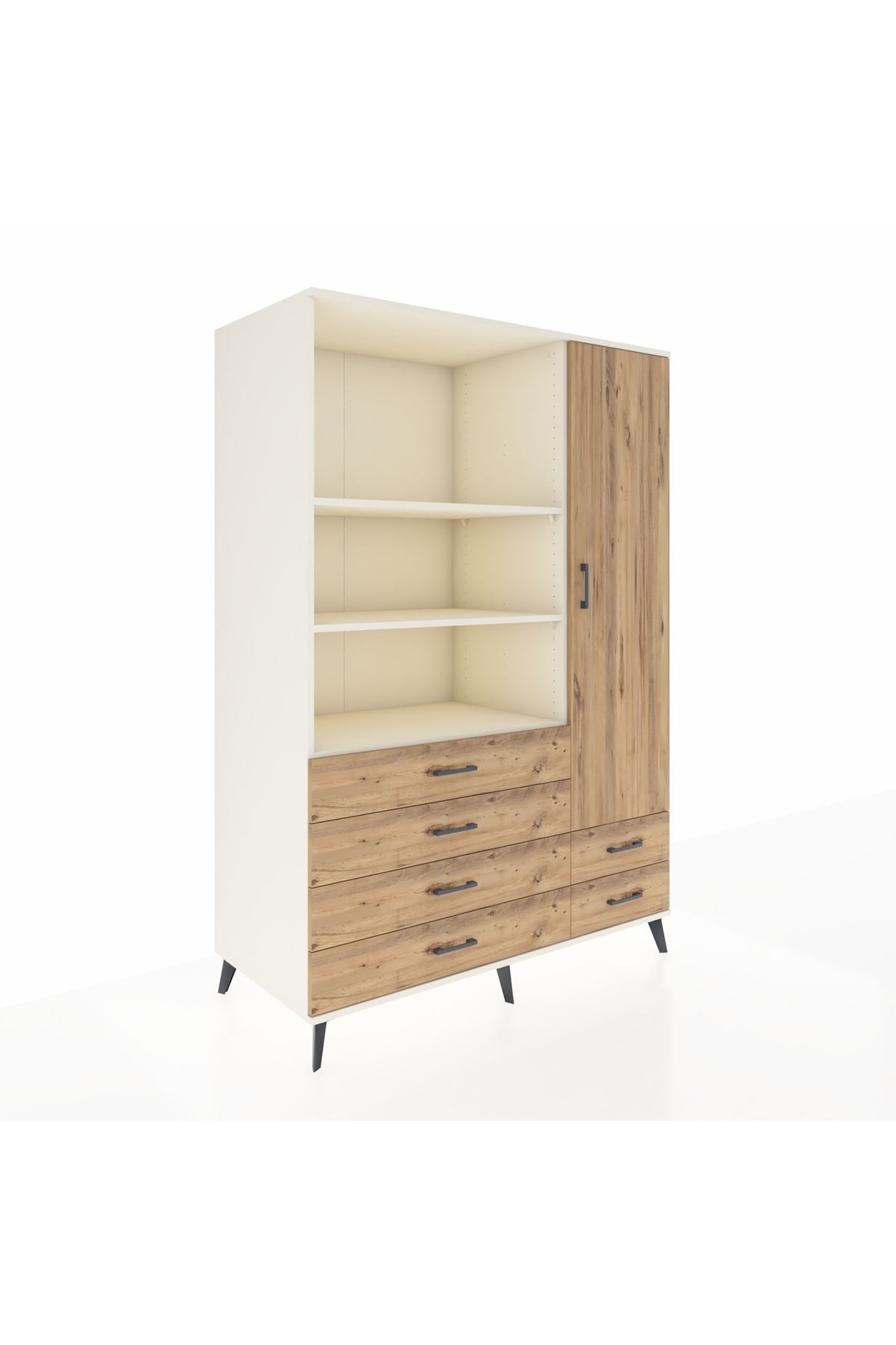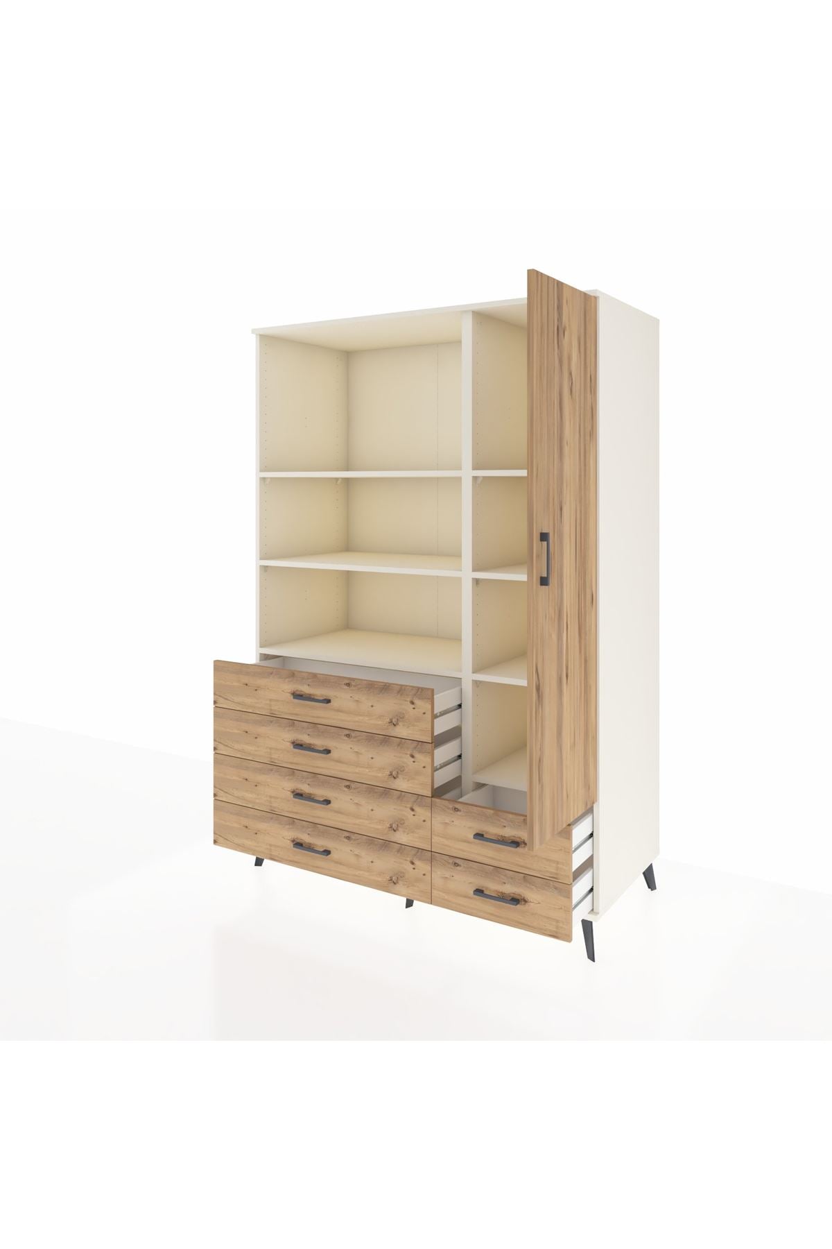Kronos Dolap 7 Raflı 6 Çekmeceli Tek Kapaklı 132x59x195 Aytaşı-Çam/Çam