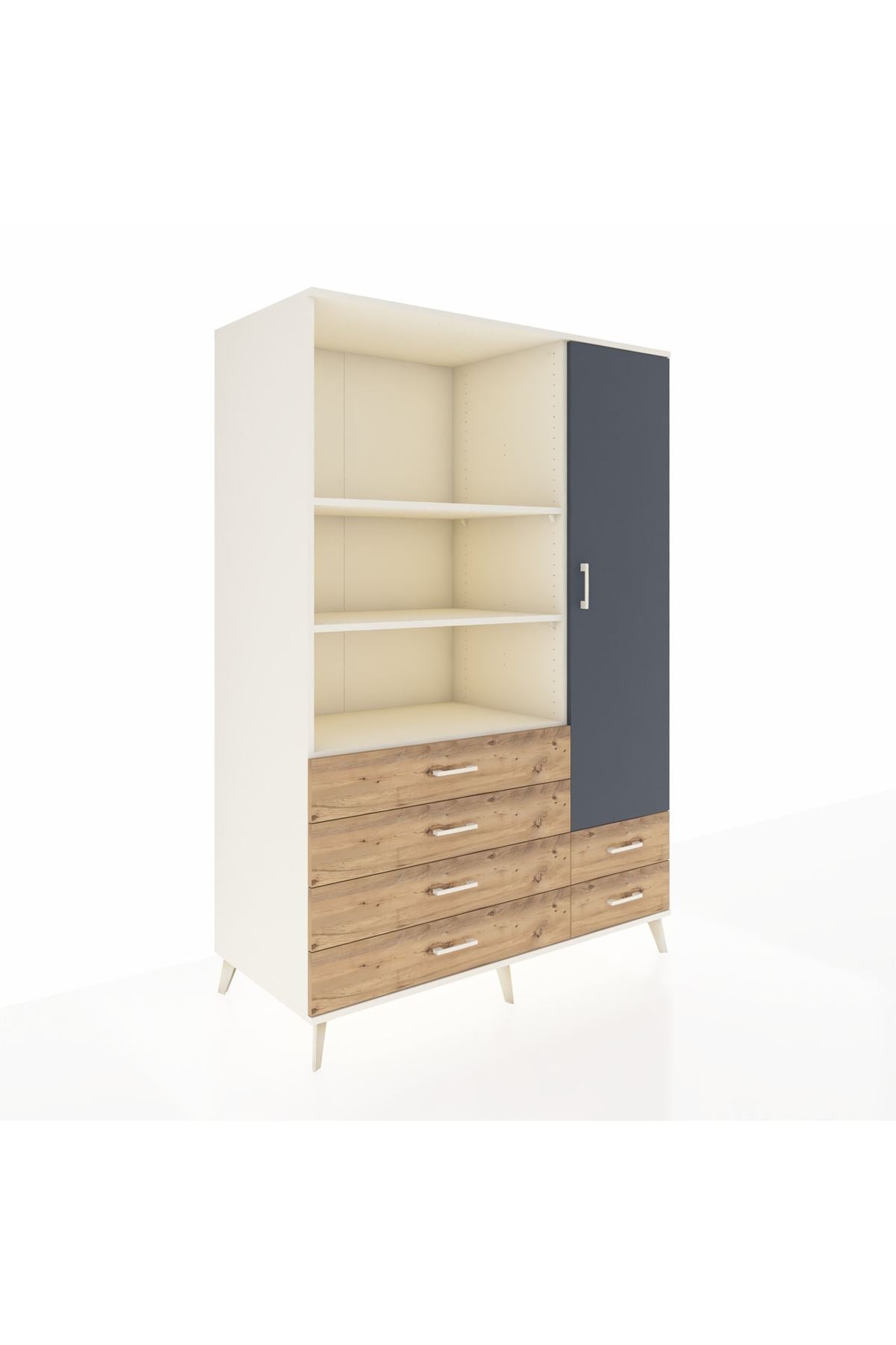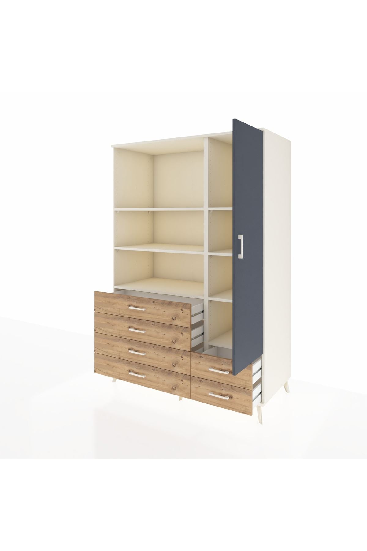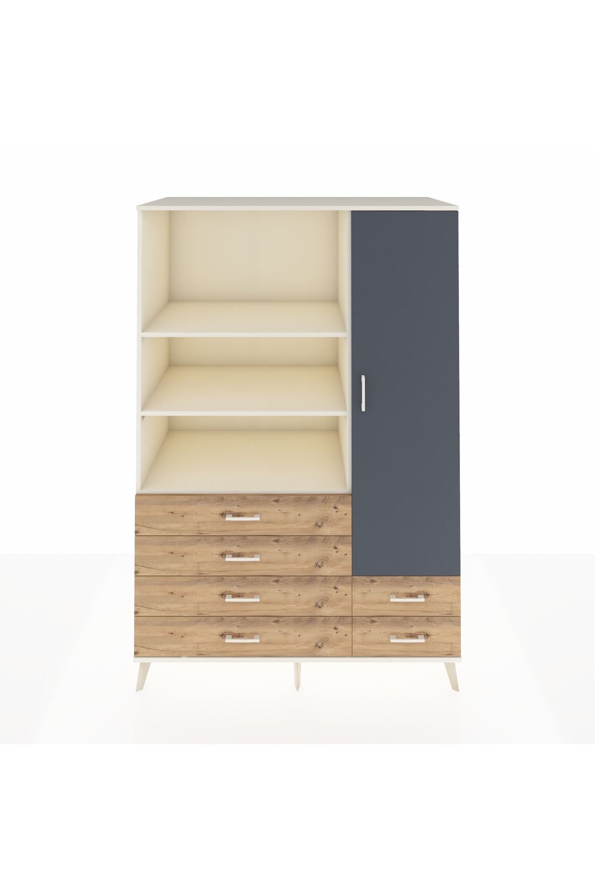 Kronos Dolap 7 Raflı 6 Çekmeceli Tek Kapaklı 132x59x195 Aytaşı-Antrasit/Çam