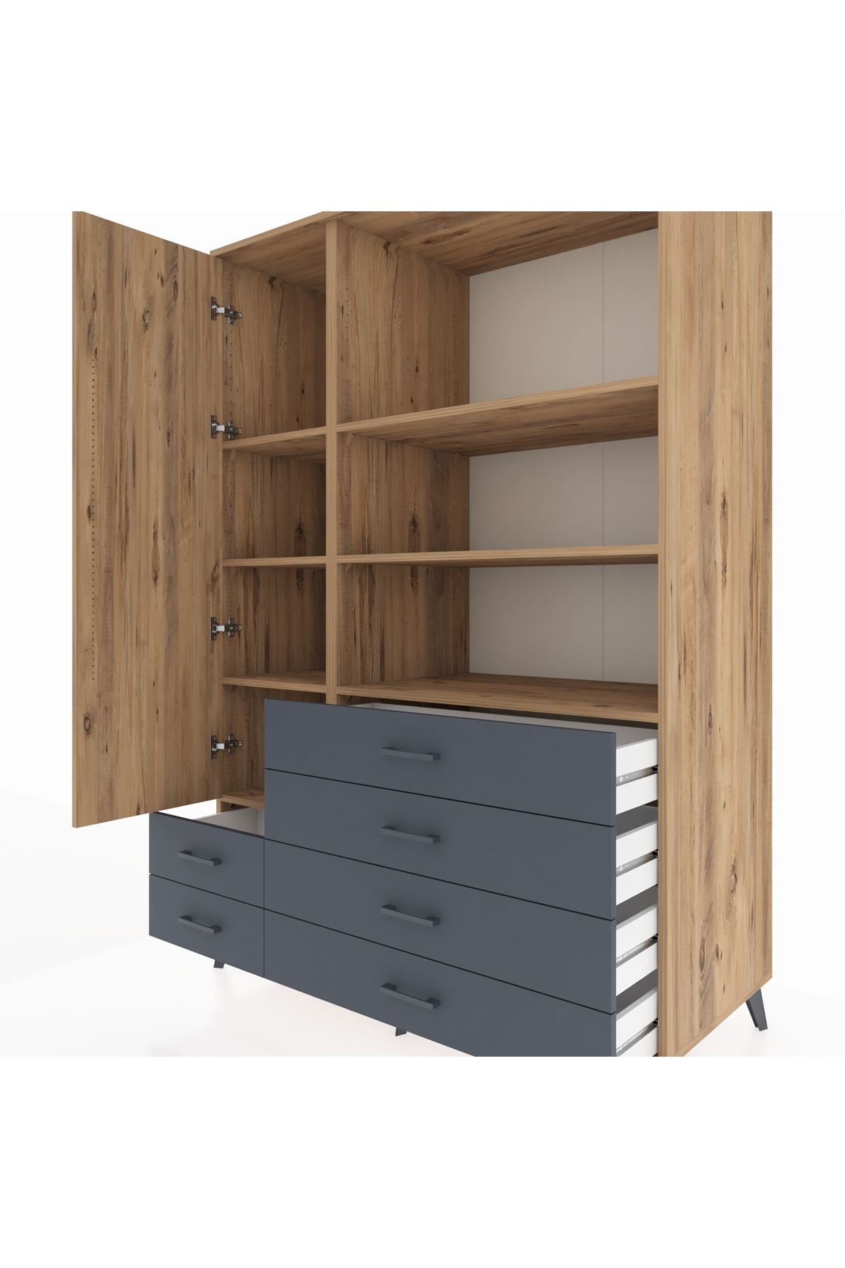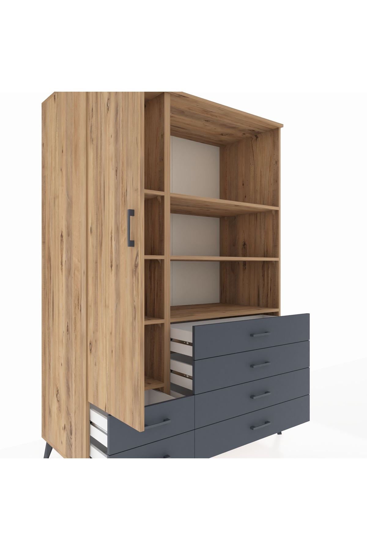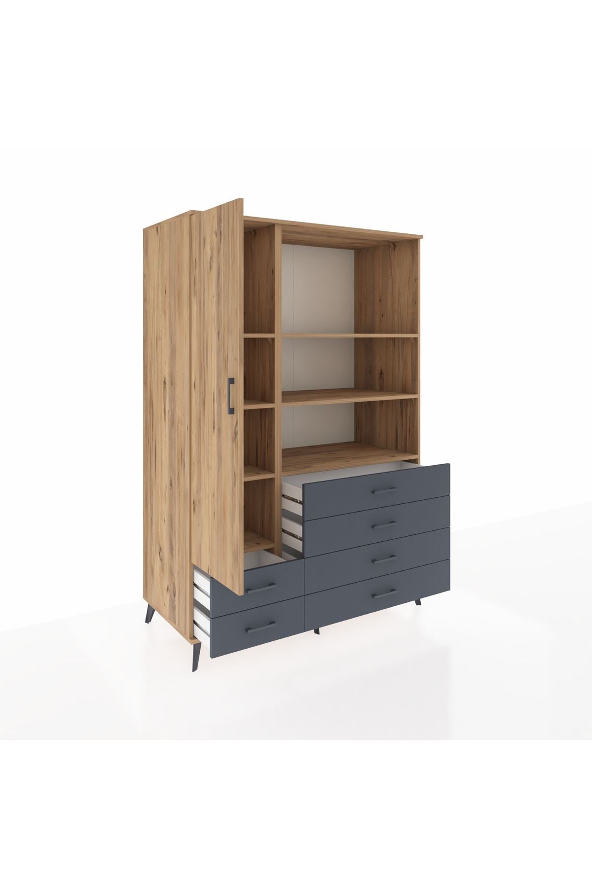 Kronos Dolap 7 Raflı 6 Çekmeceli Tek Kapaklı 132x59x195 Çam-Çam/Antrasit