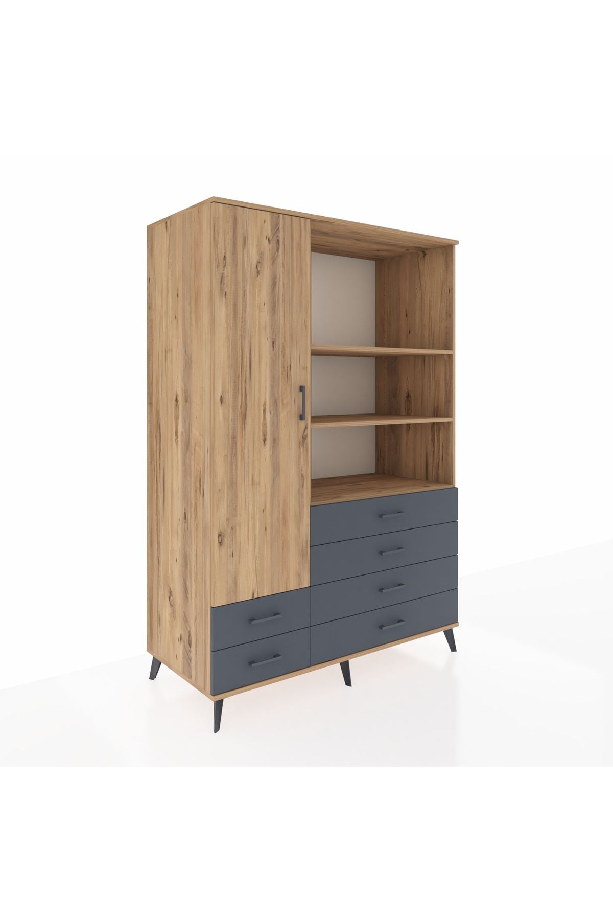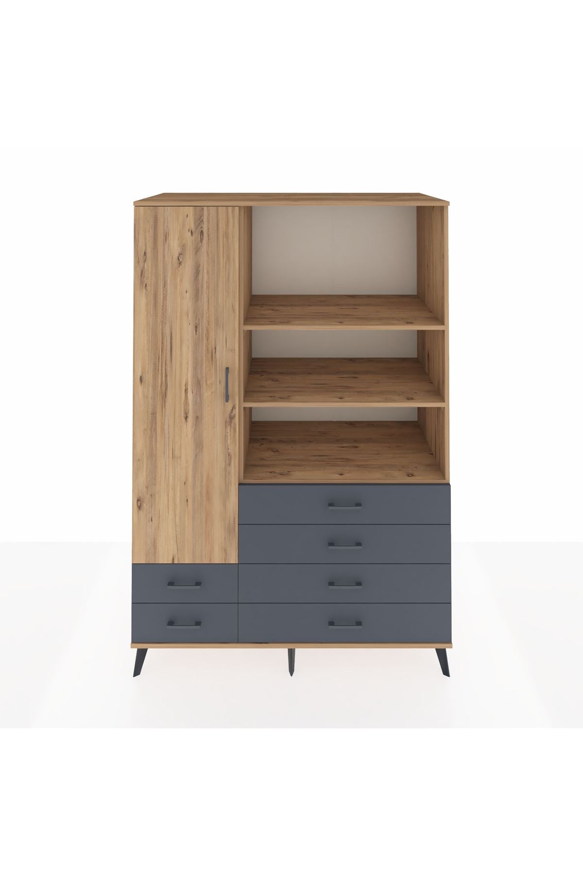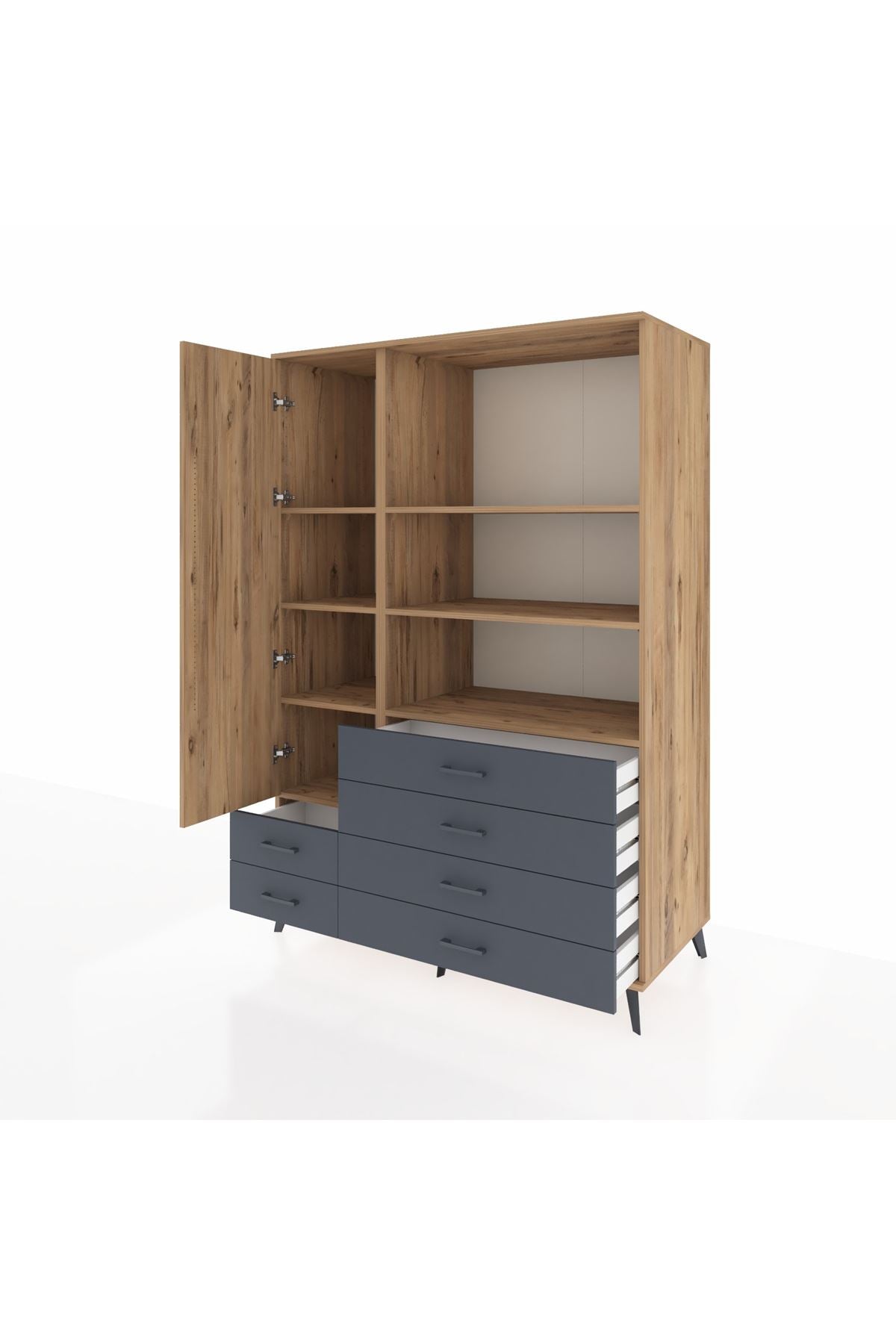 Kronos Dolap 7 Raflı 6 Çekmeceli Tek Kapaklı 132x59x195 Çam-Çam/Antrasit