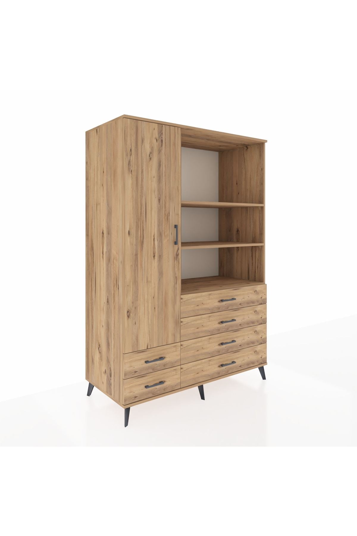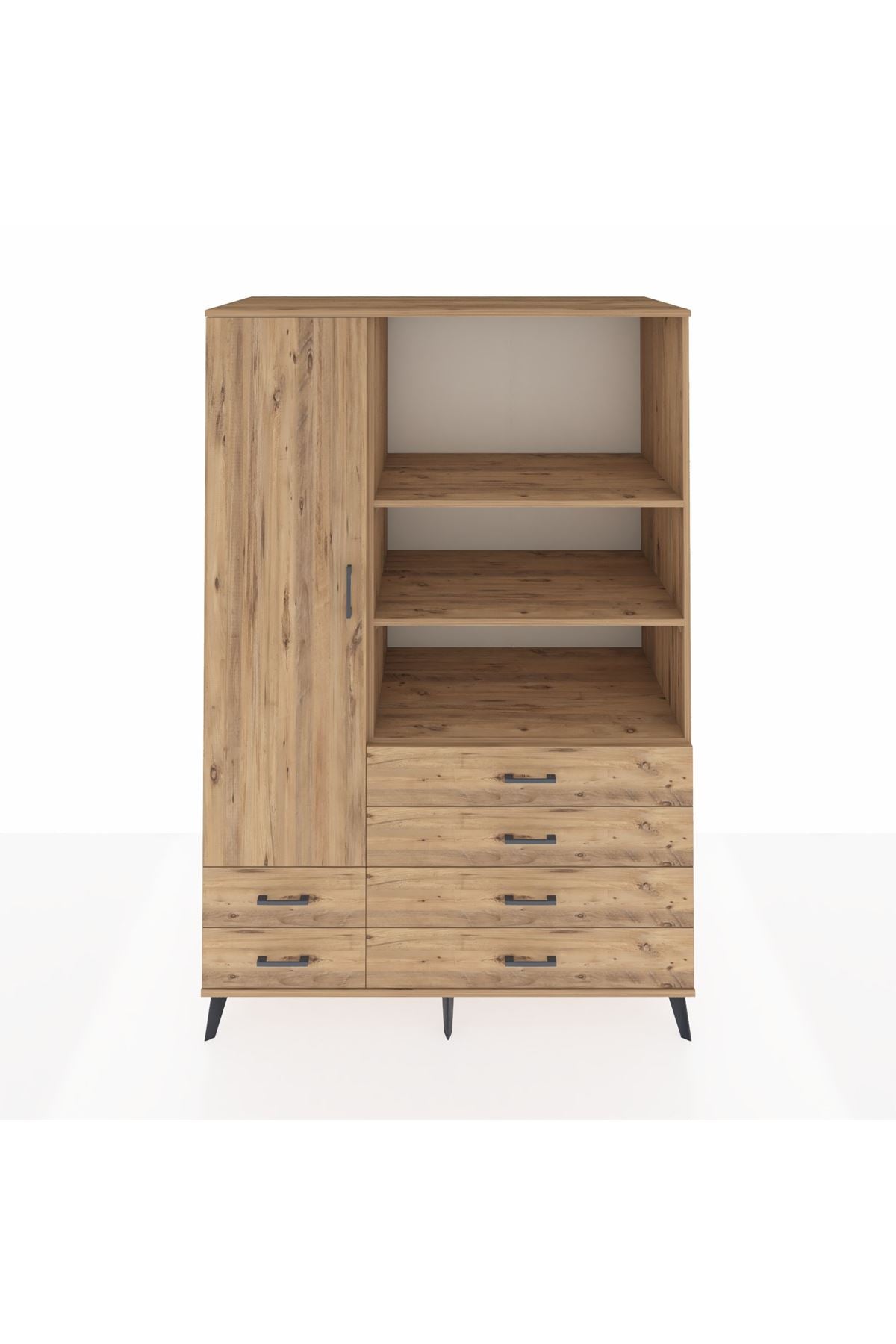 ⏳ Kronos Dolap 7 Raflı 6 Çekmeceli Tek Kapaklı 132x59x195 Çam-Çam/Çam