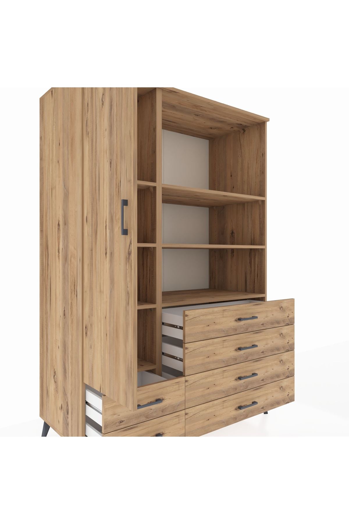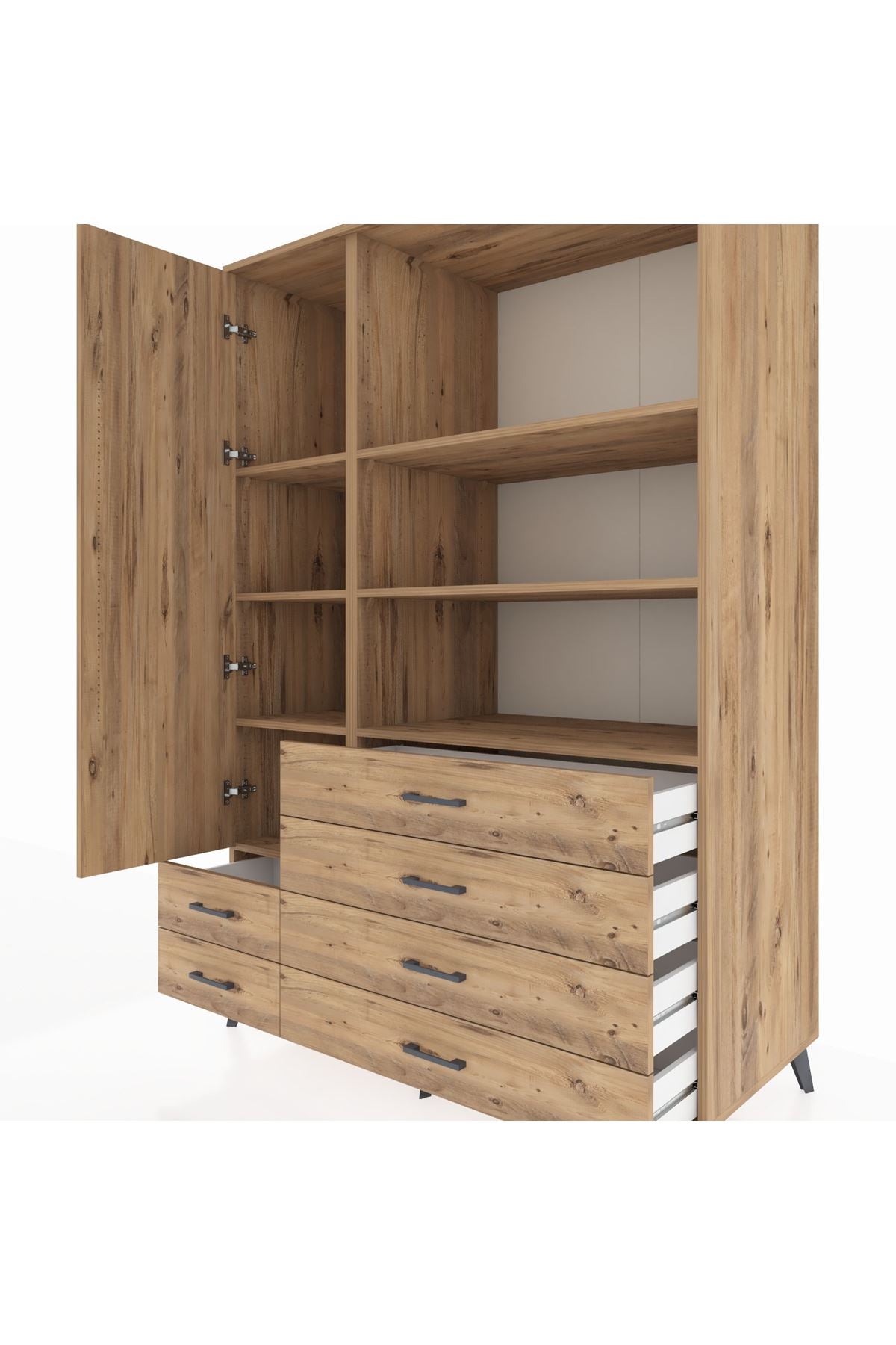 Kronos Dolap 7 Raflı 6 Çekmeceli Tek Kapaklı 132x59x195 Çam-Çam/Çam