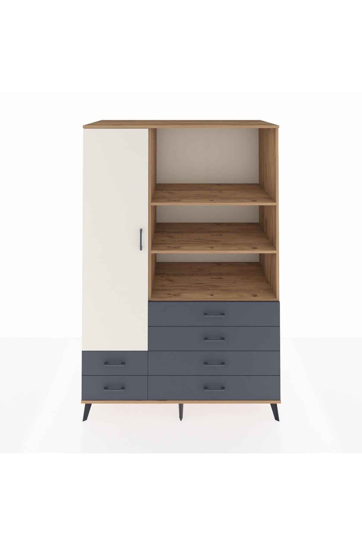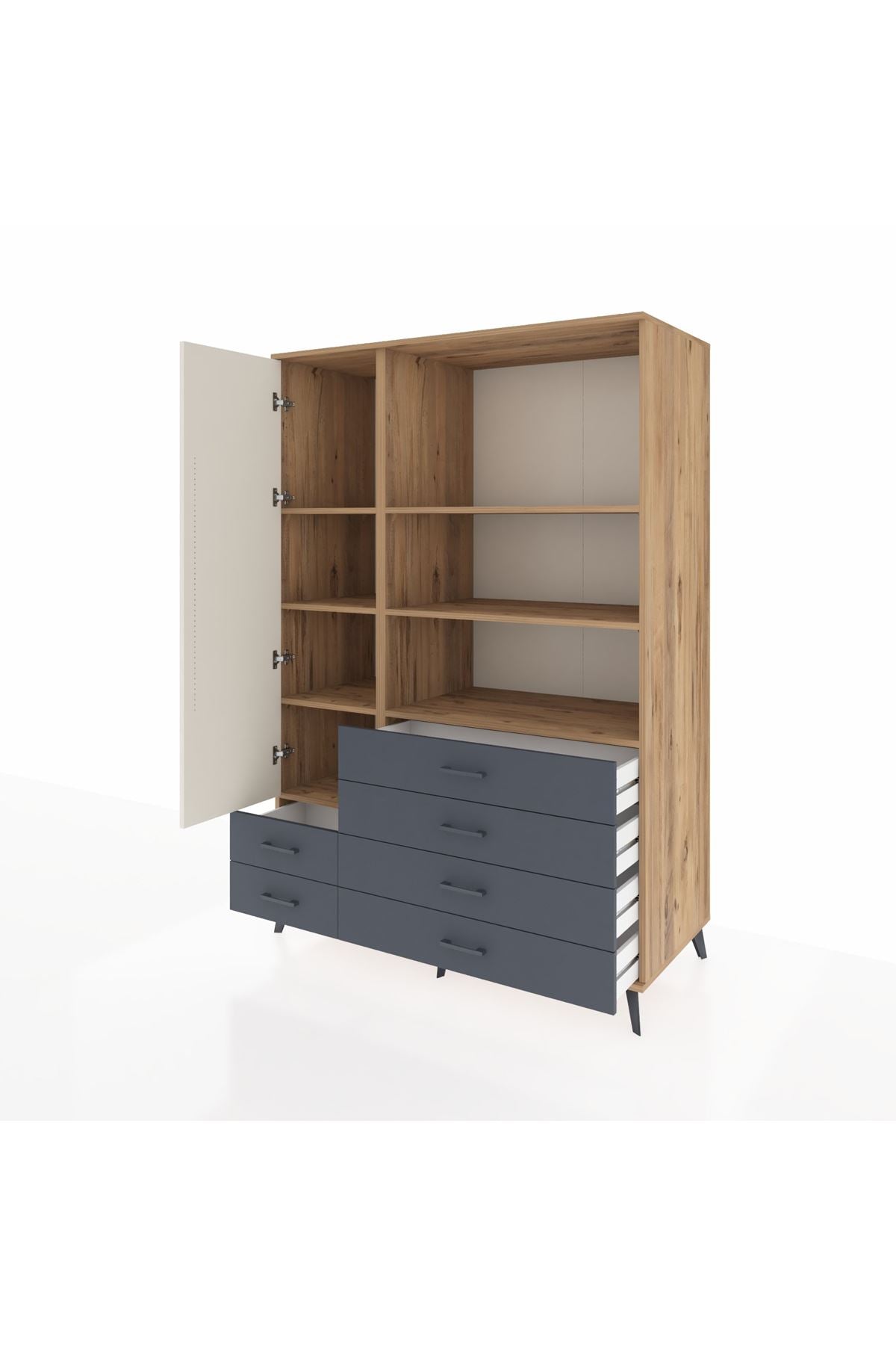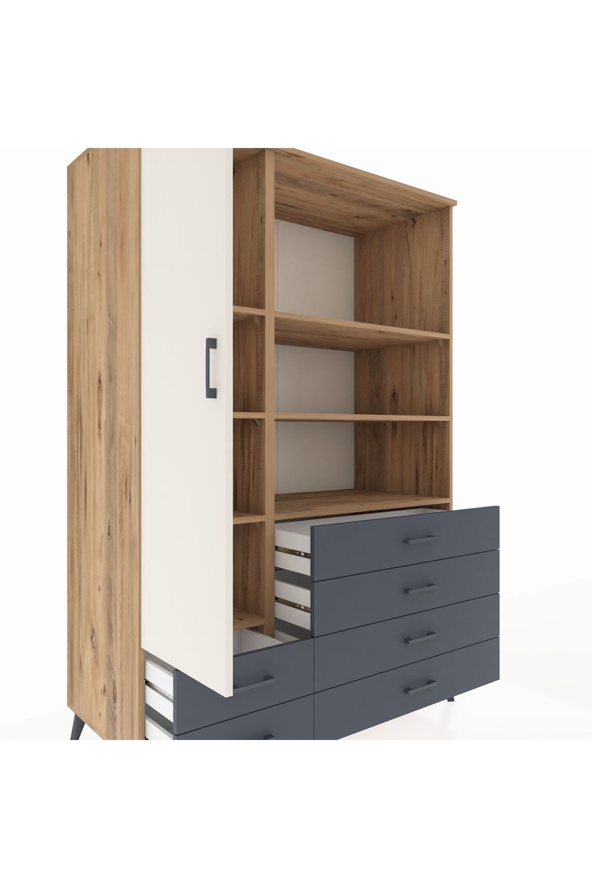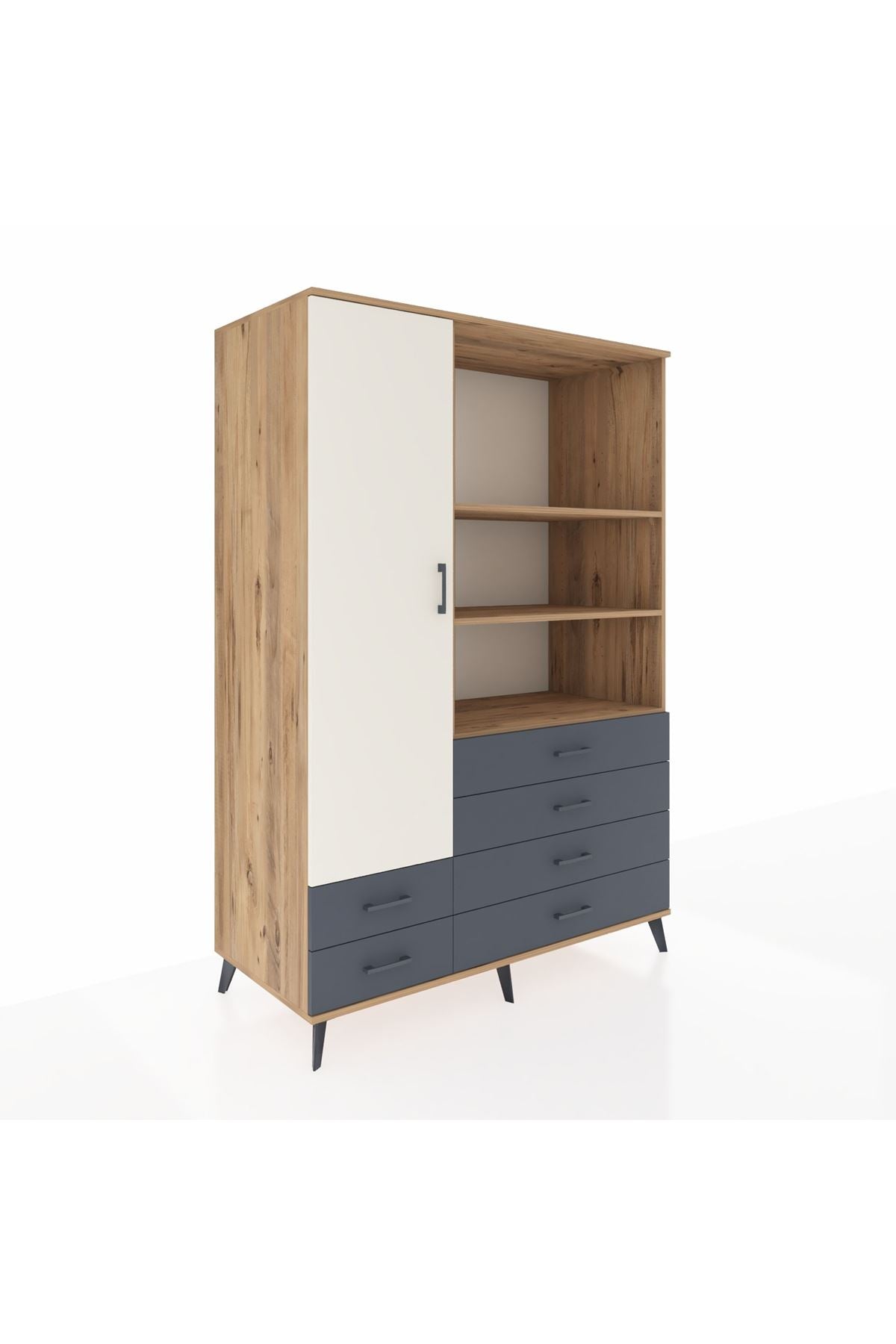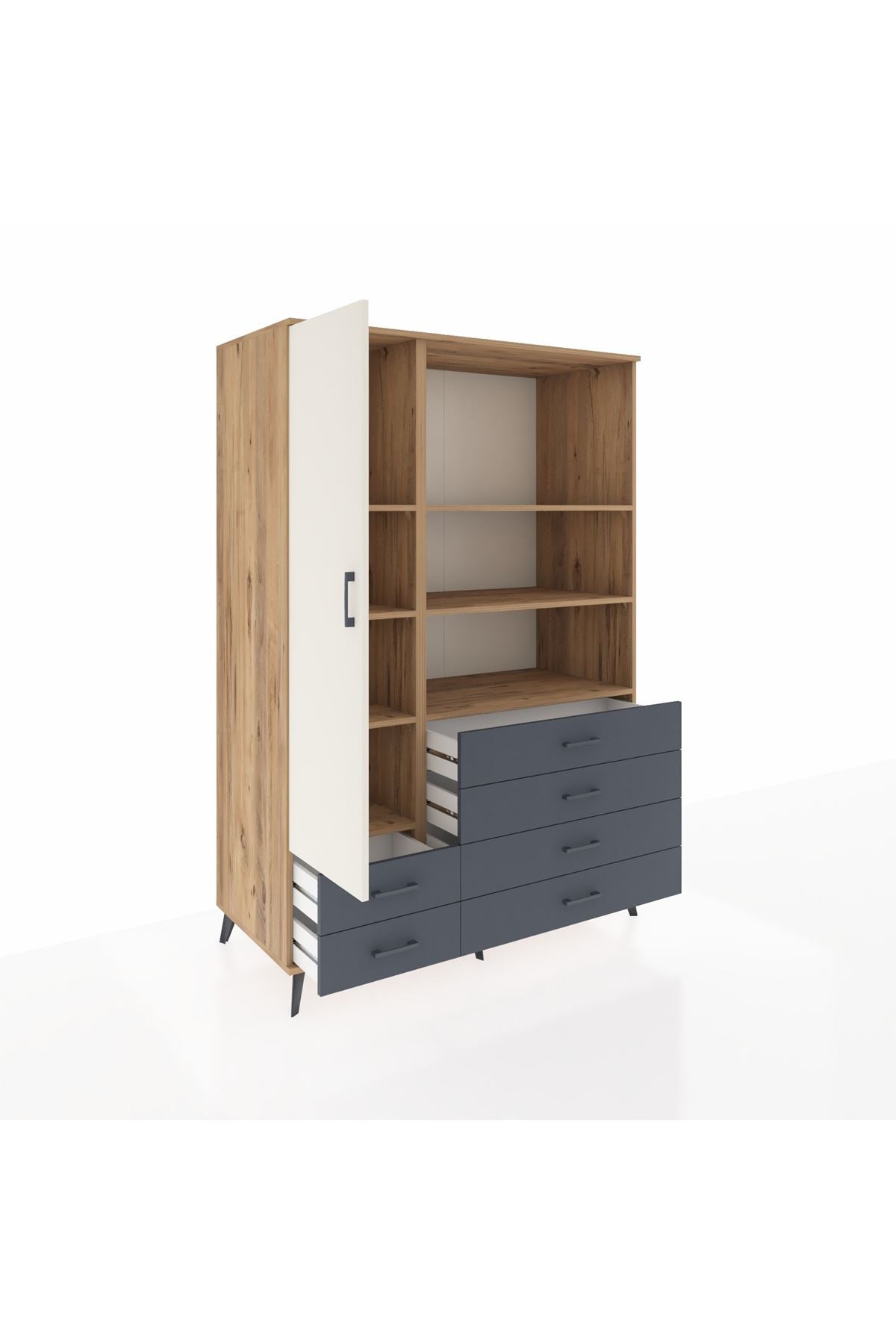 Kronos Dolap 7 Raflı 6 Çekmeceli Tek Kapaklı 132x59x195 Çam-Aytaşı/Antrasit