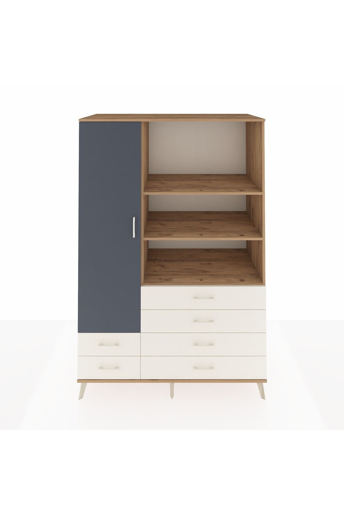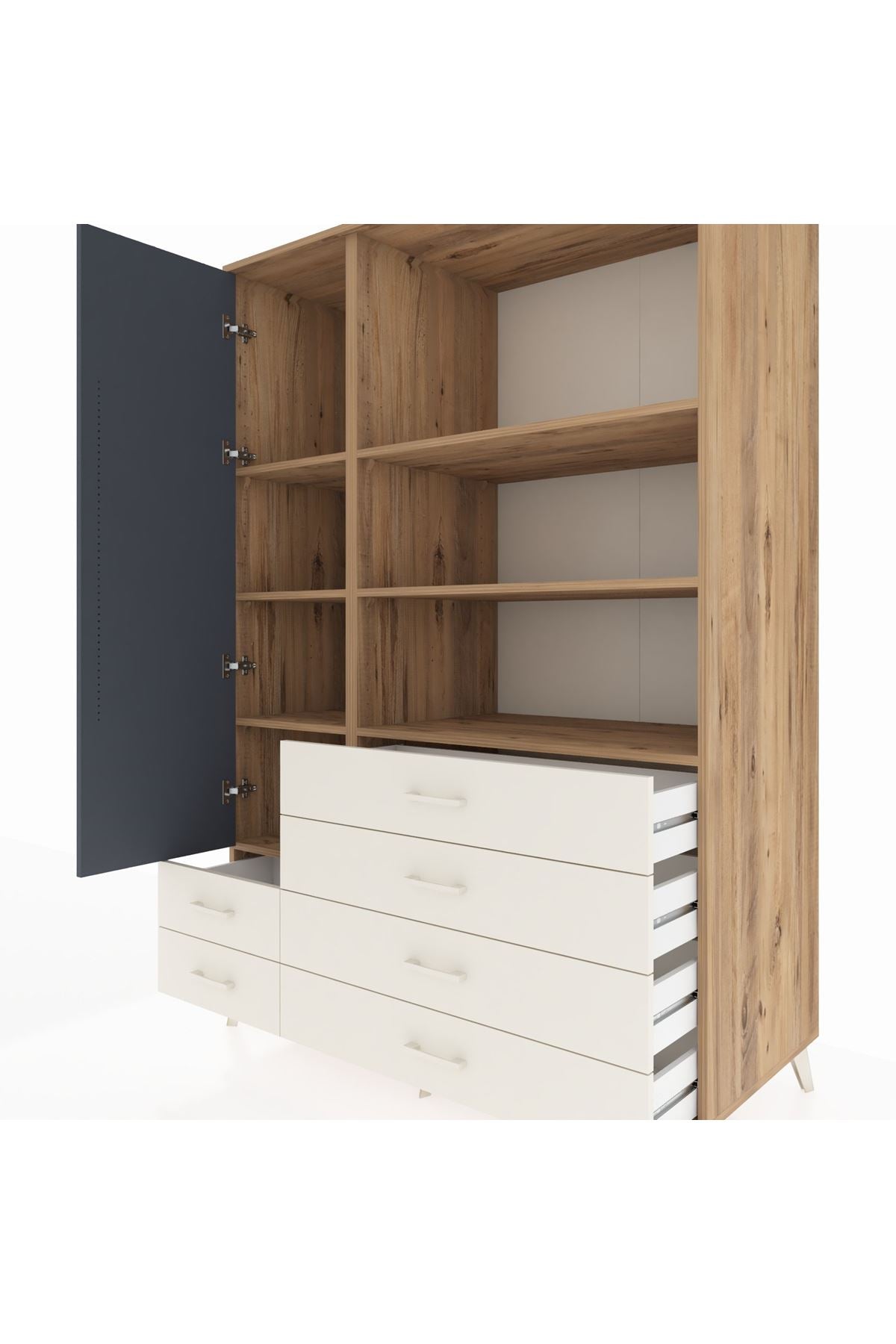 Kronos Dolap 7 Raflı 6 Çekmeceli Tek Kapaklı 132x59x195 Çam-Antrasit/Aytaşı