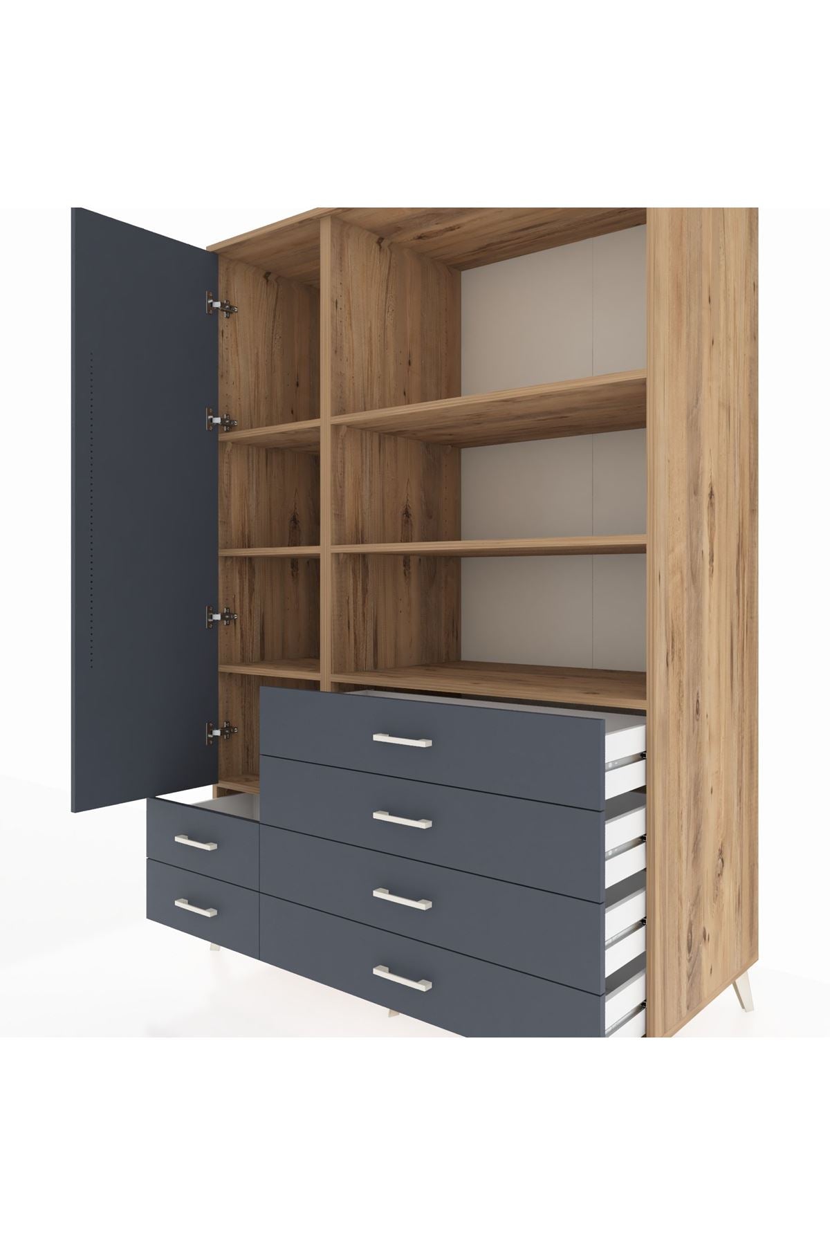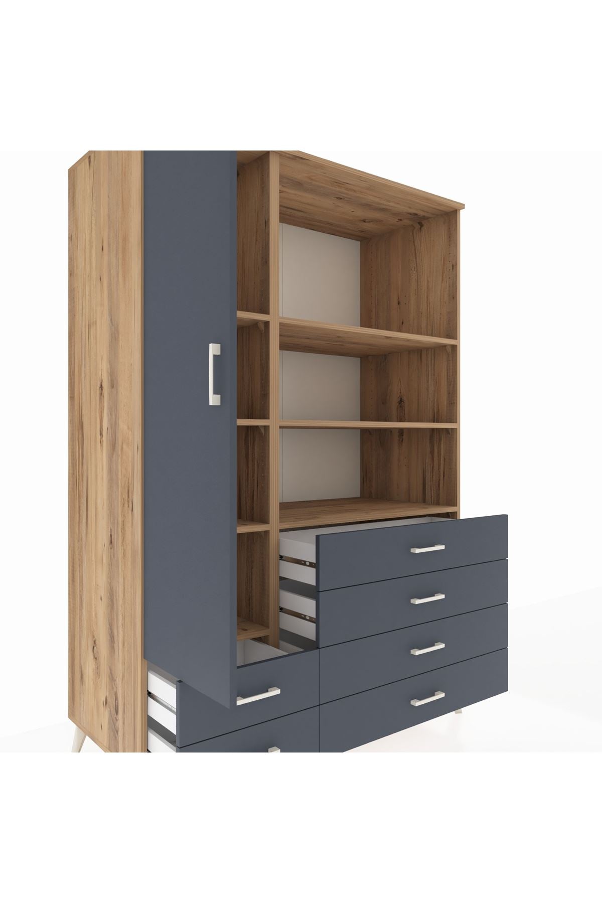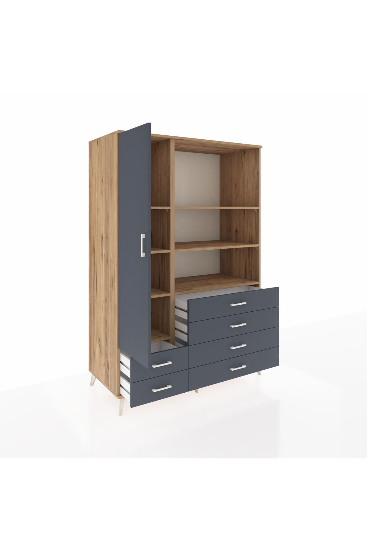 Kronos Dolap 7 Raflı 6 Çekmeceli Tek Kapaklı 132x59x195 Çam-Antrasit/Antrasit