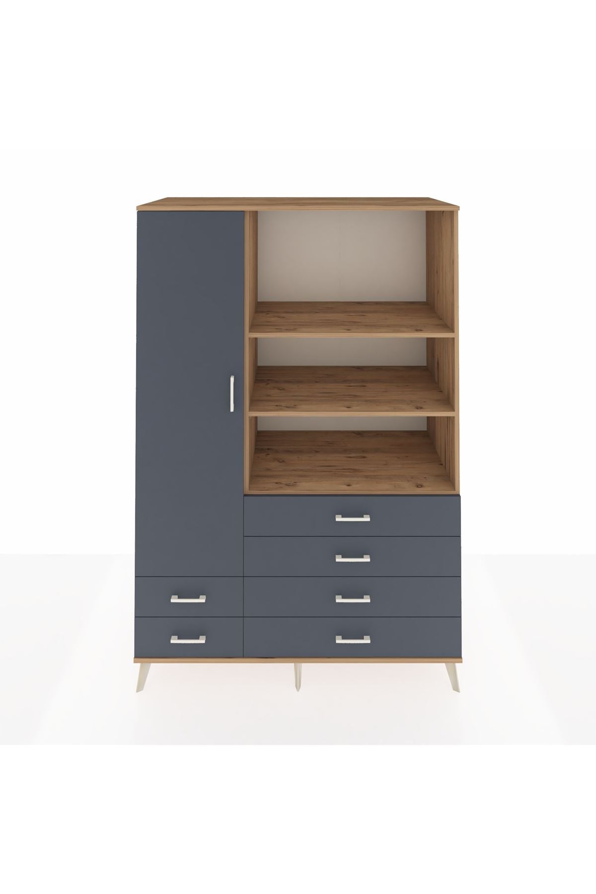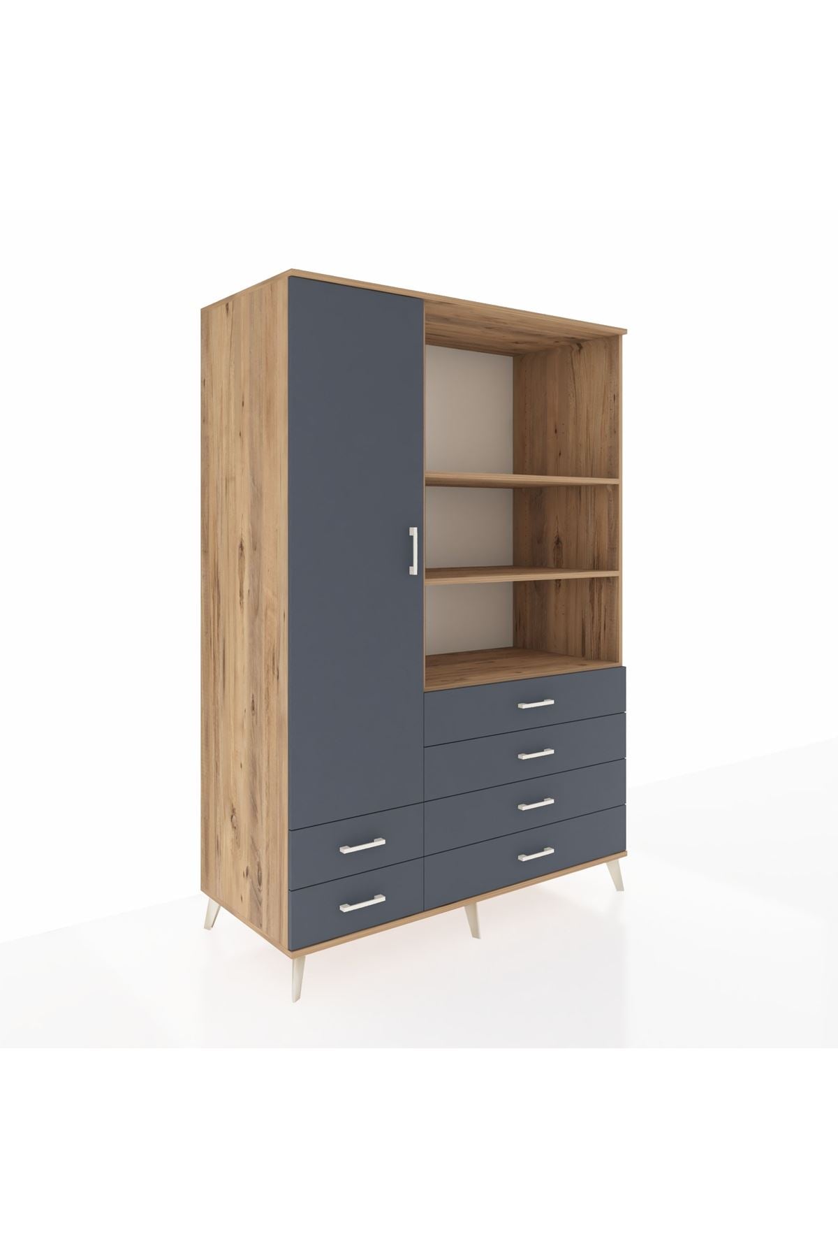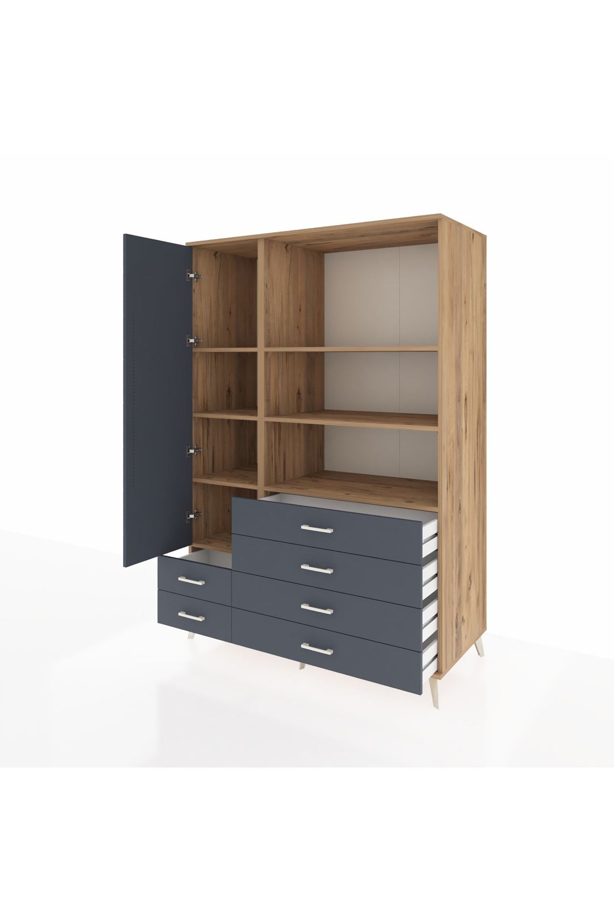Kronos Dolap 7 Raflı 6 Çekmeceli Tek Kapaklı 132x59x195 Çam-Antrasit/Antrasit