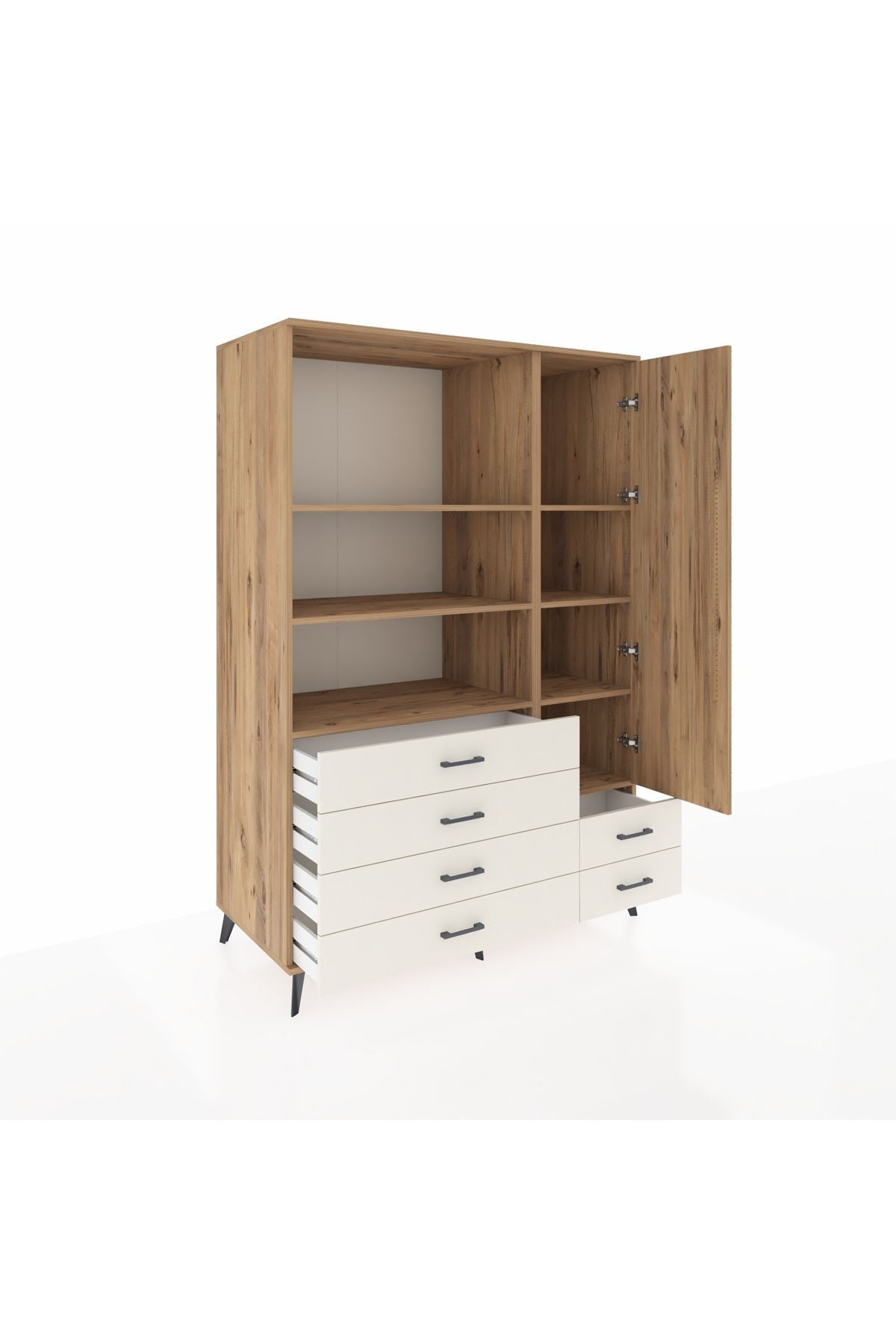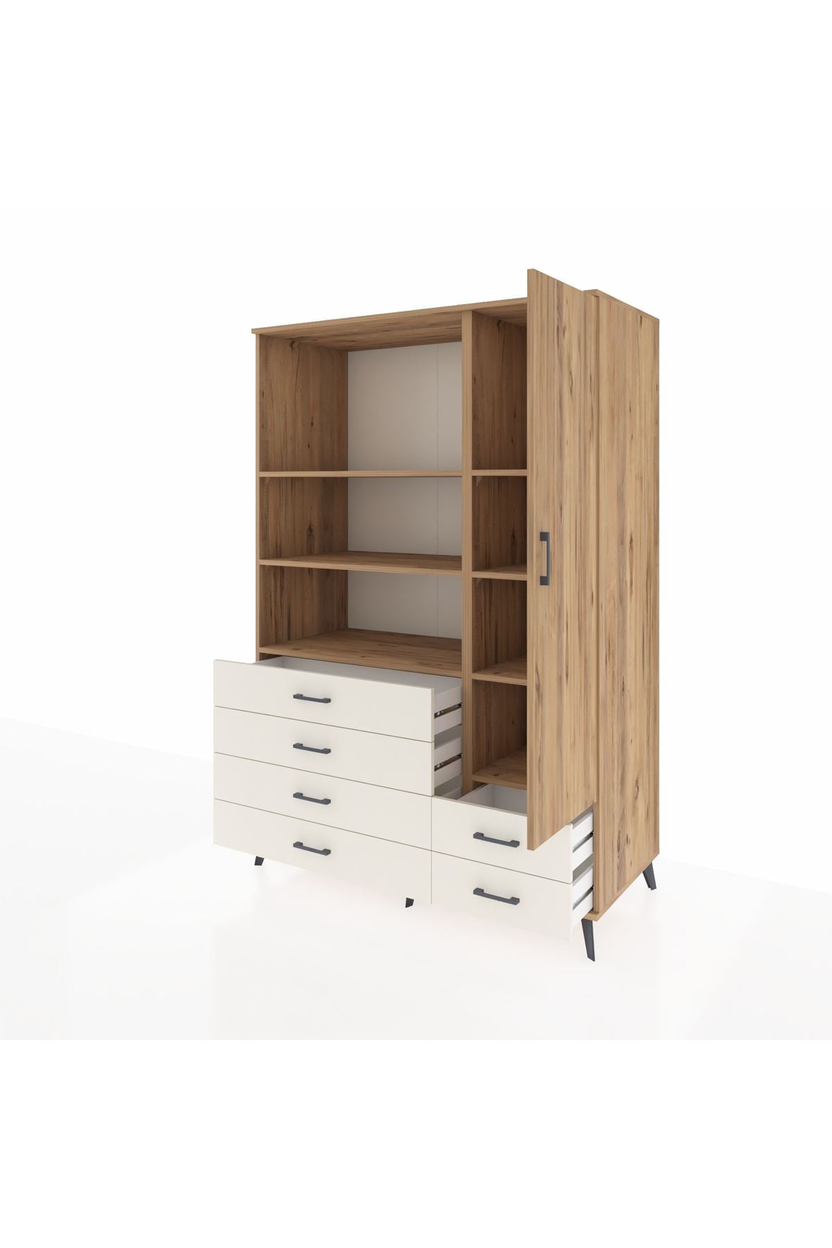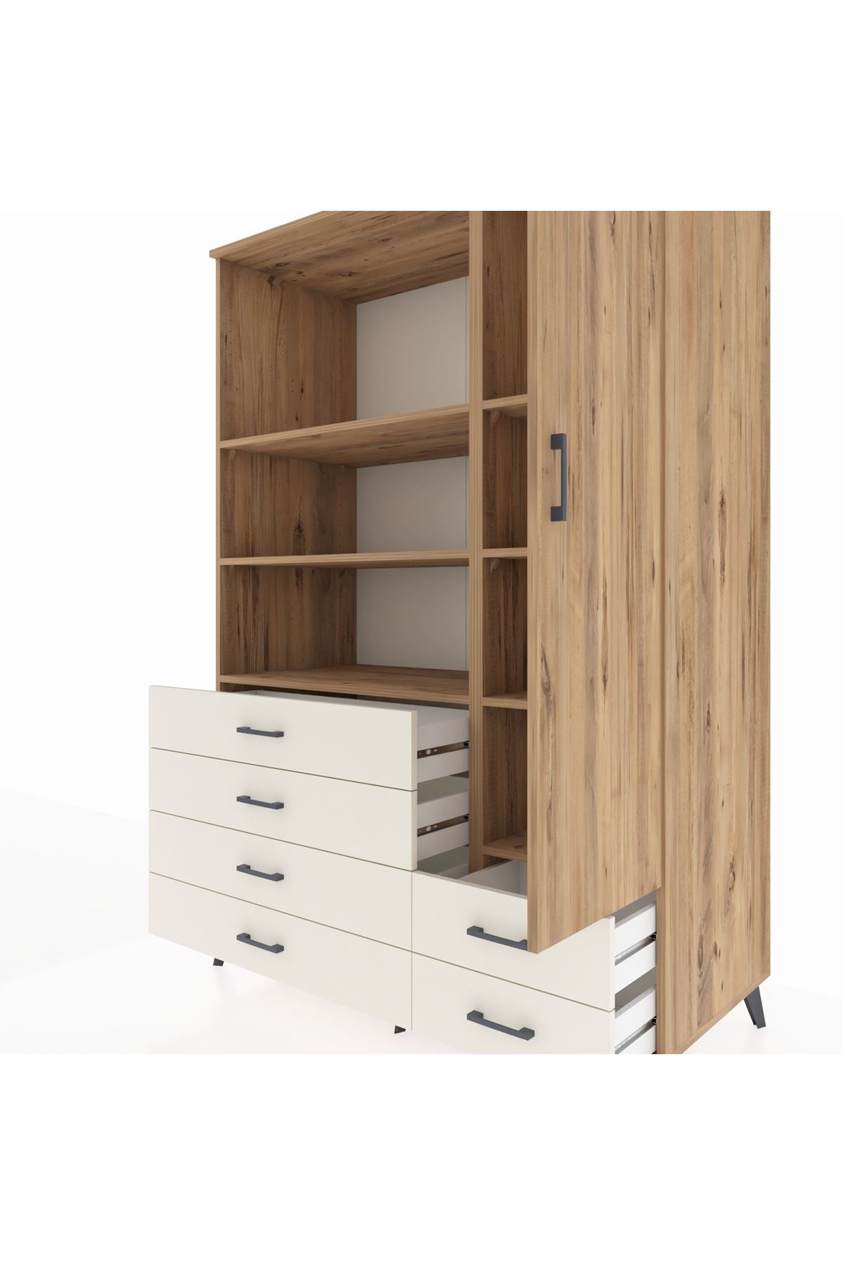Kronos Dolap 7 Raflı 6 Çekmeceli Tek Kapaklı 132x59x195 Çam-Çam/Aytaşı