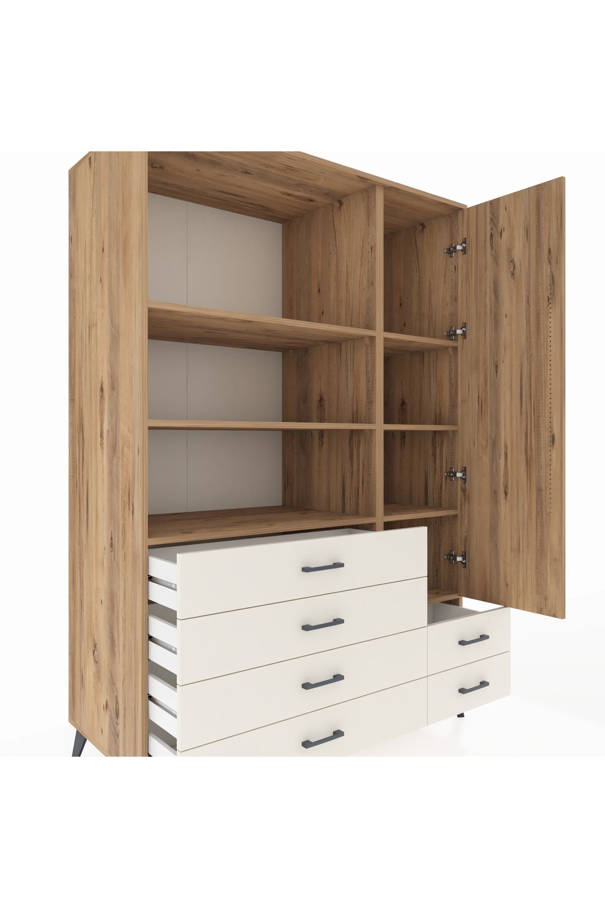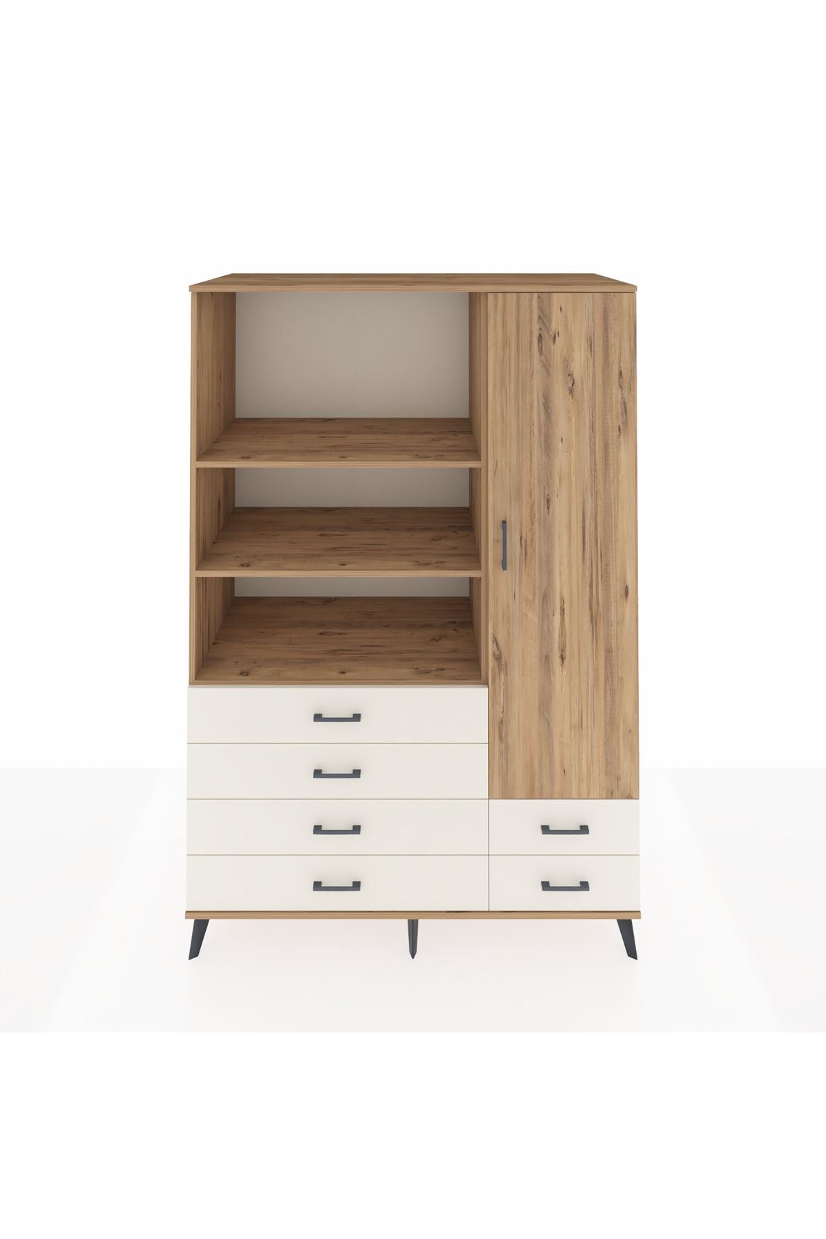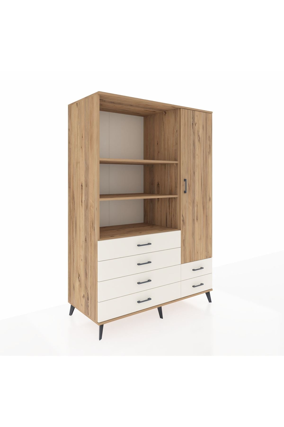 Kronos Dolap 7 Raflı 6 Çekmeceli Tek Kapaklı 132x59x195 Çam-Çam/Aytaşı
