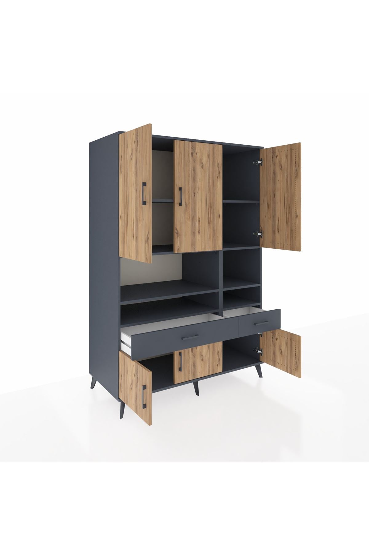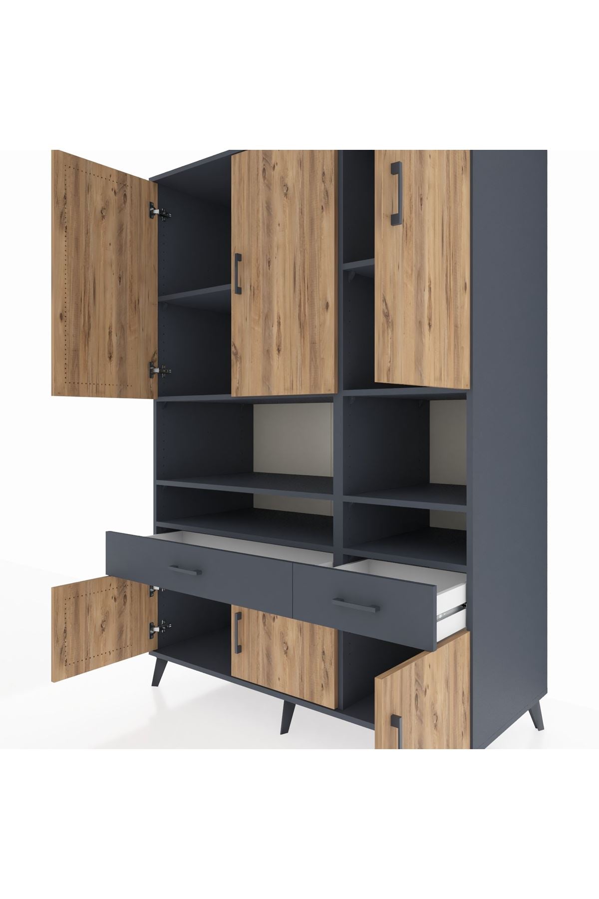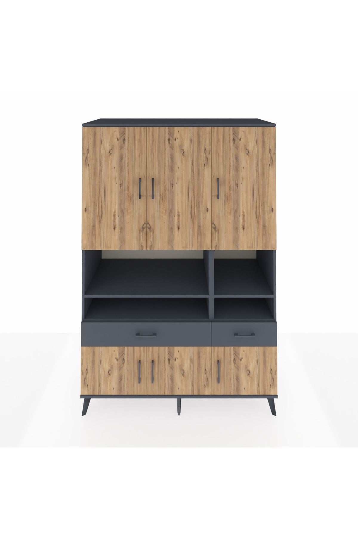 Kronos Dolap 8 Raflı 2 Çekmeceli 6 Kapaklı 132x59x195 Antrasit-Çam/Antrasit