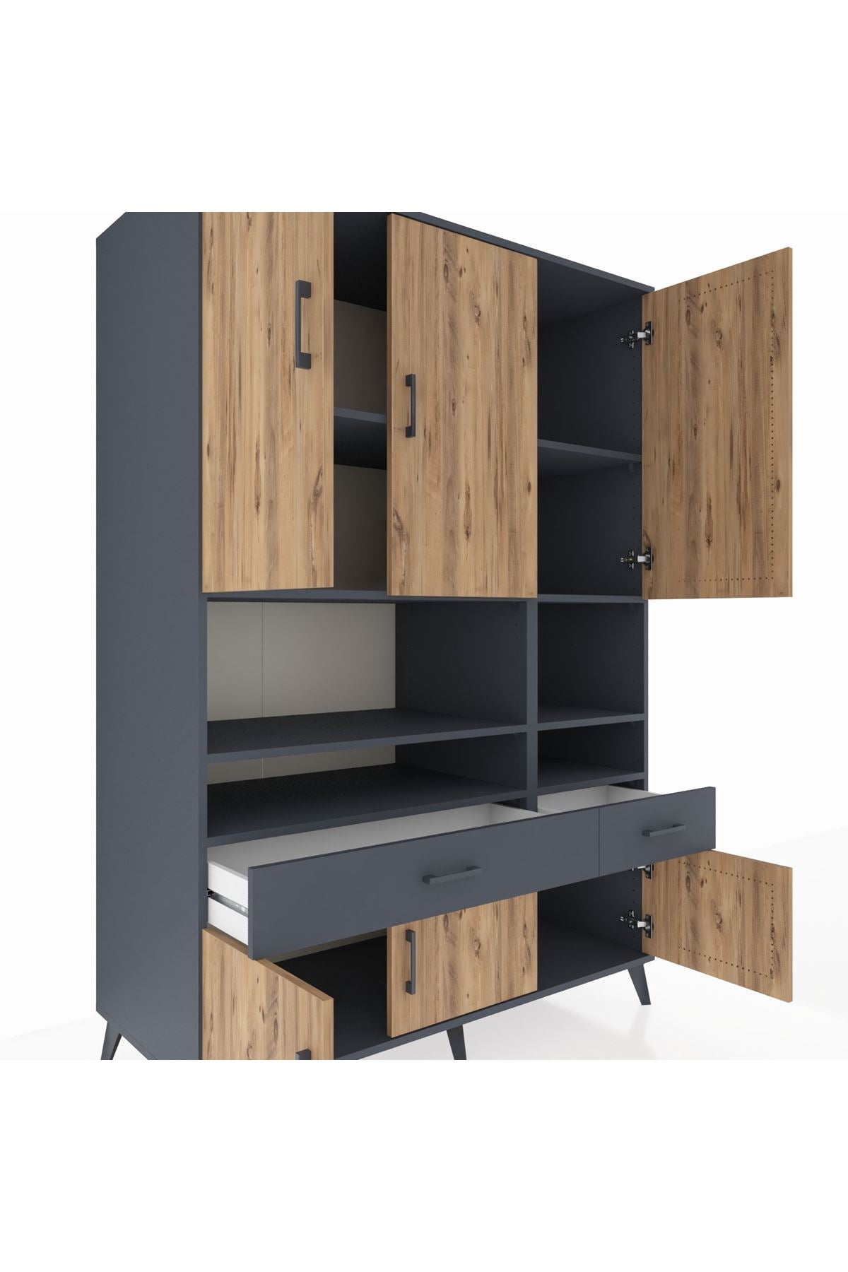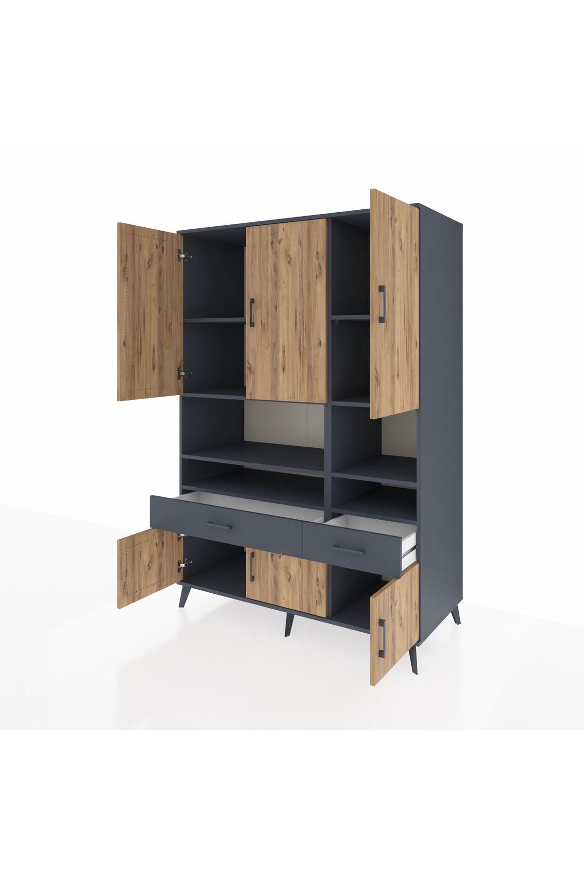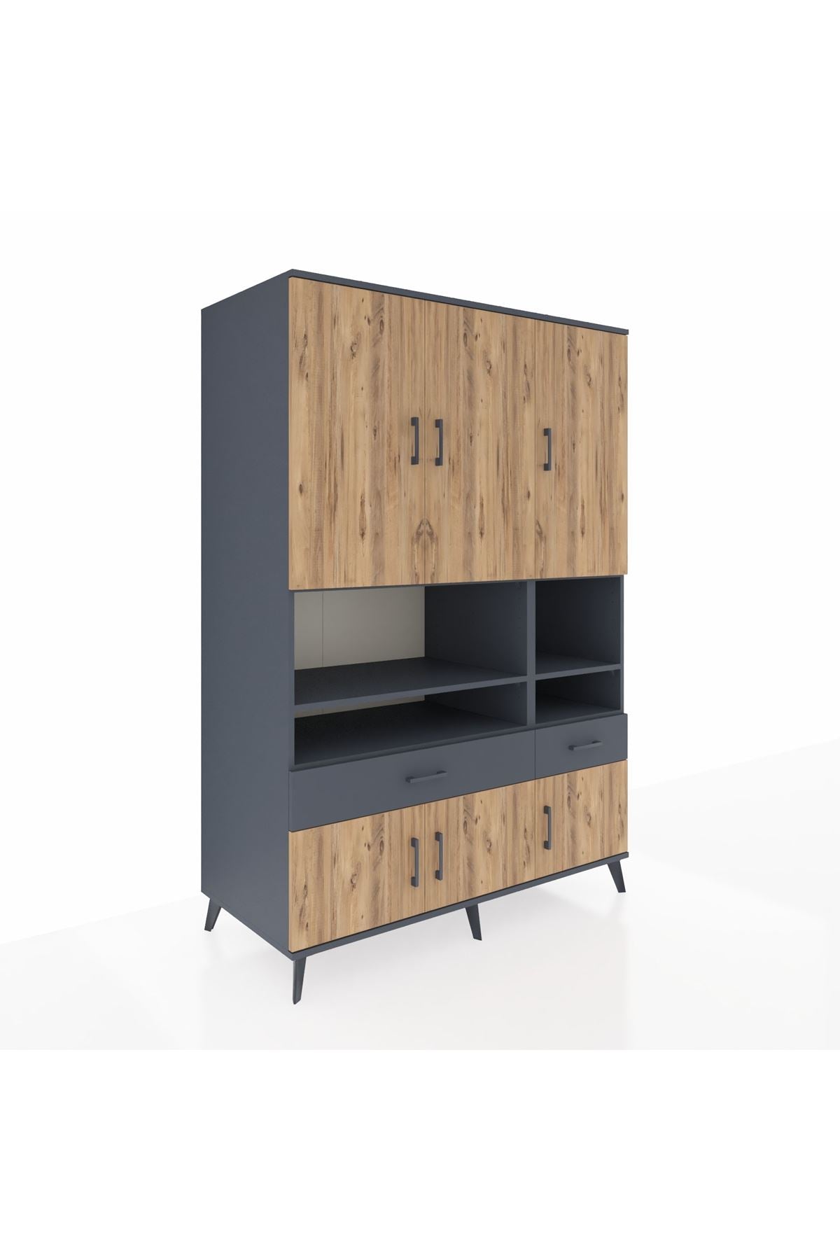 Kronos Dolap 8 Raflı 2 Çekmeceli 6 Kapaklı 132x59x195 Antrasit-Çam/Antrasit