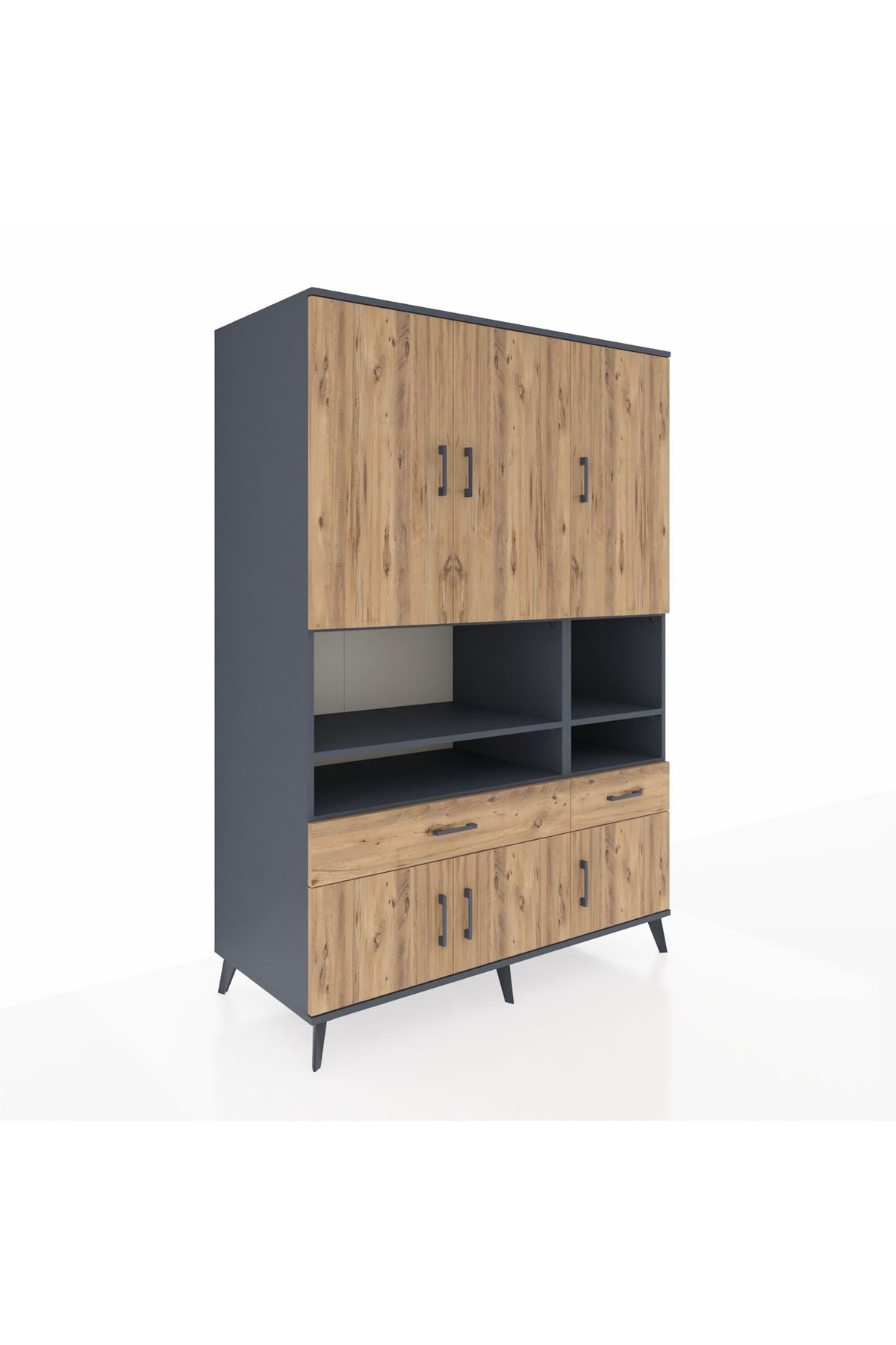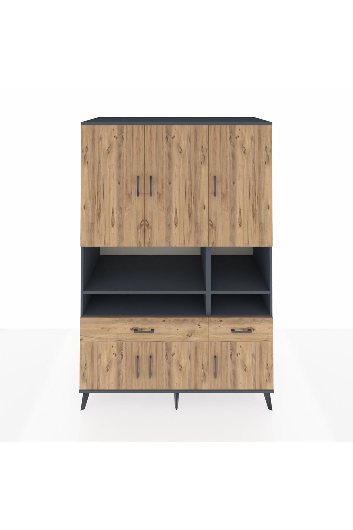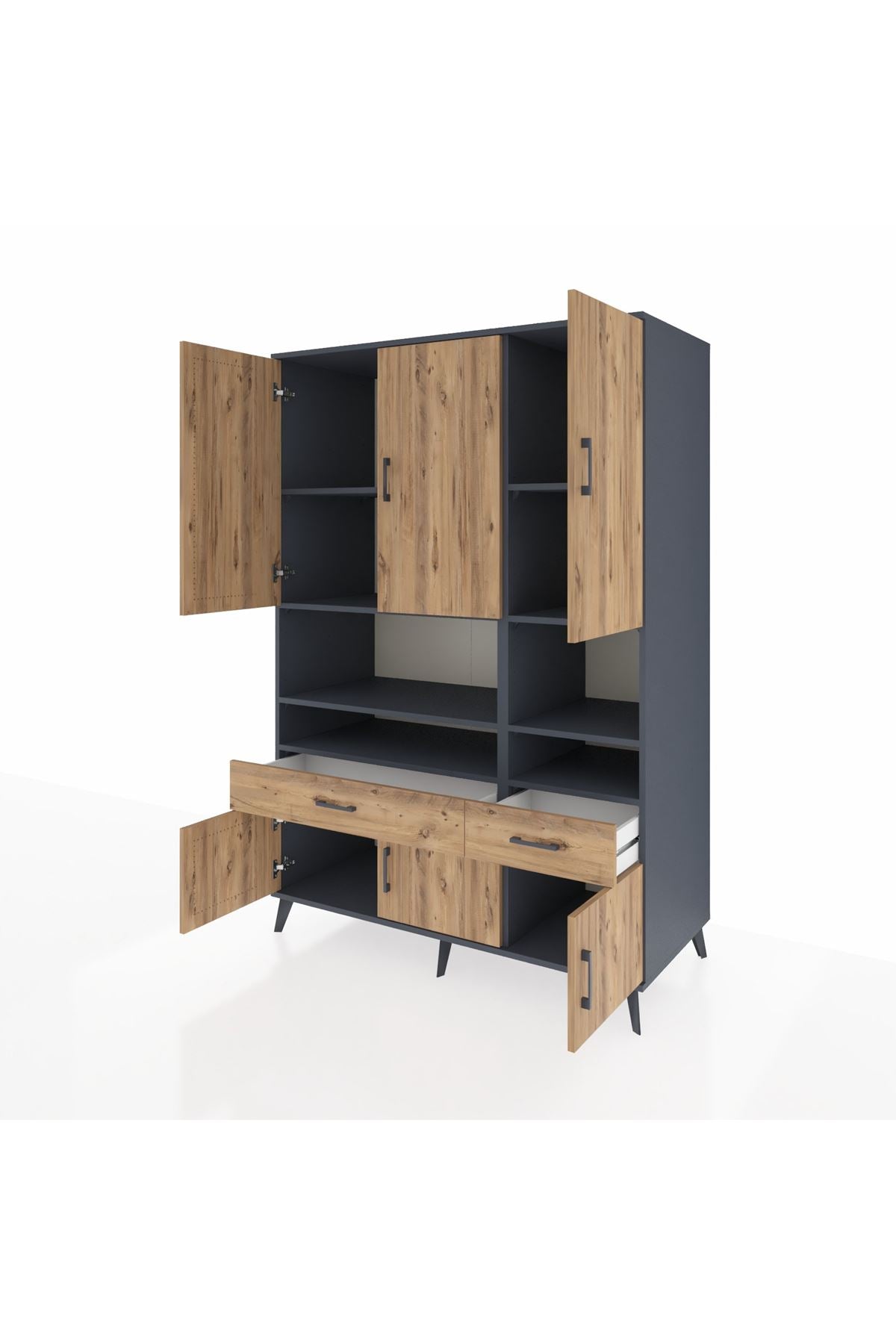 Kronos Dolap 8 Raflı 2 Çekmeceli 6 Kapaklı 132x59x195 Antrasit-Çam/Çam
