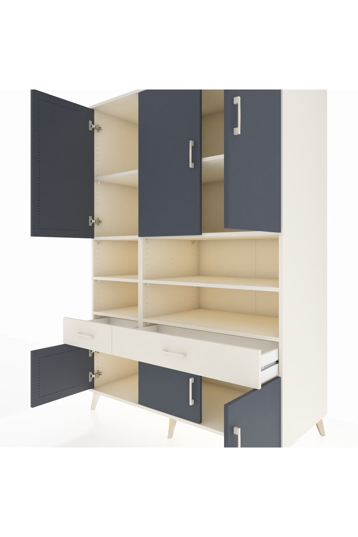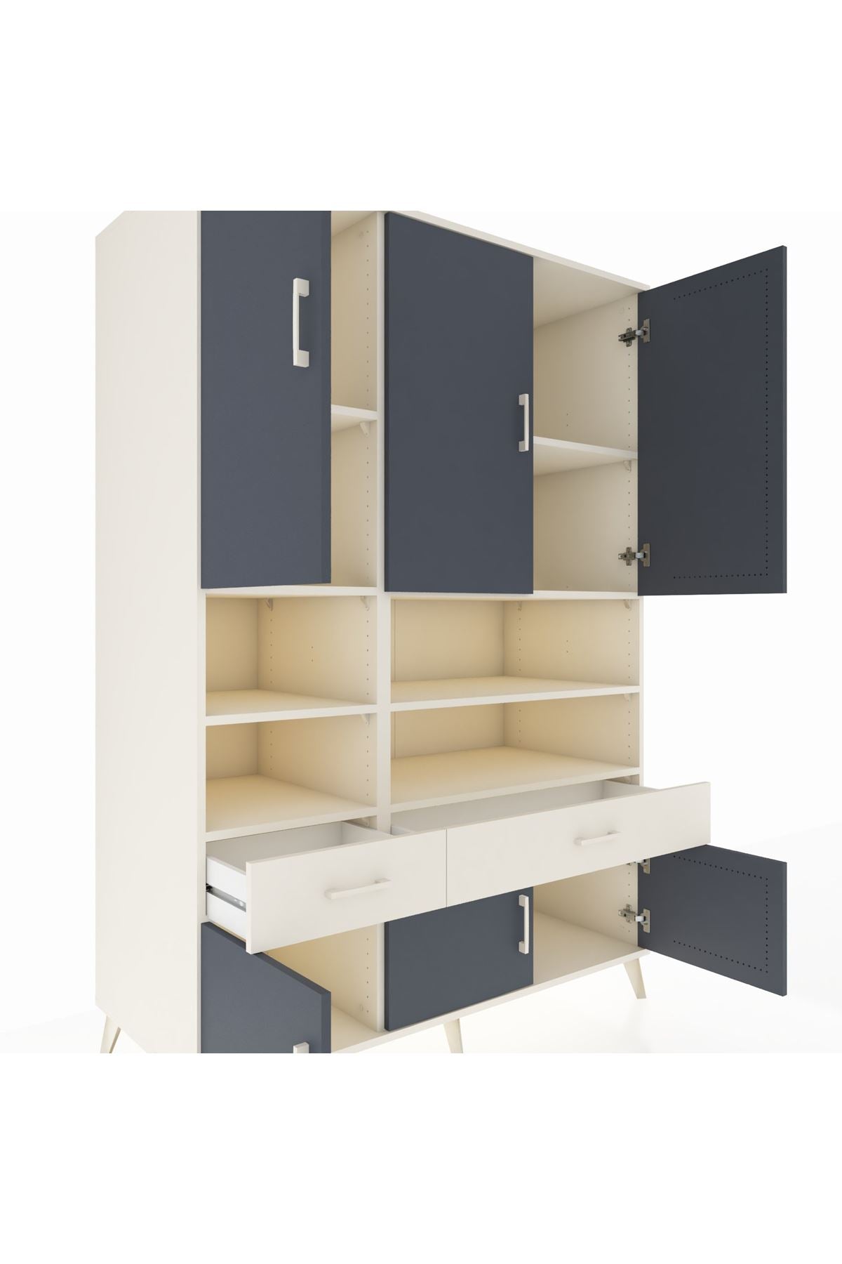 • 🗄️ 8 raflı, 2 çekmeceli, 6 kapaklı geniş iç hacim