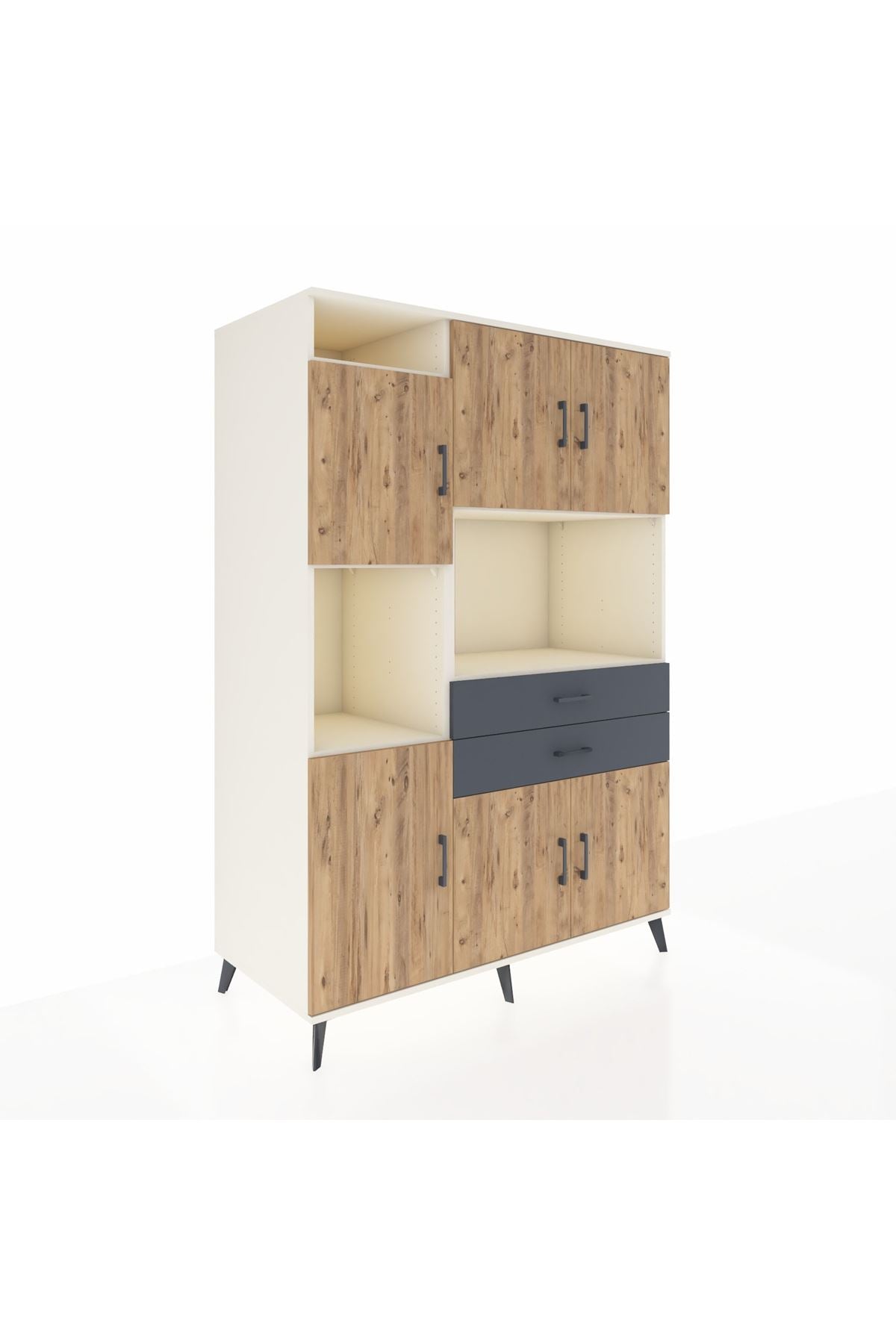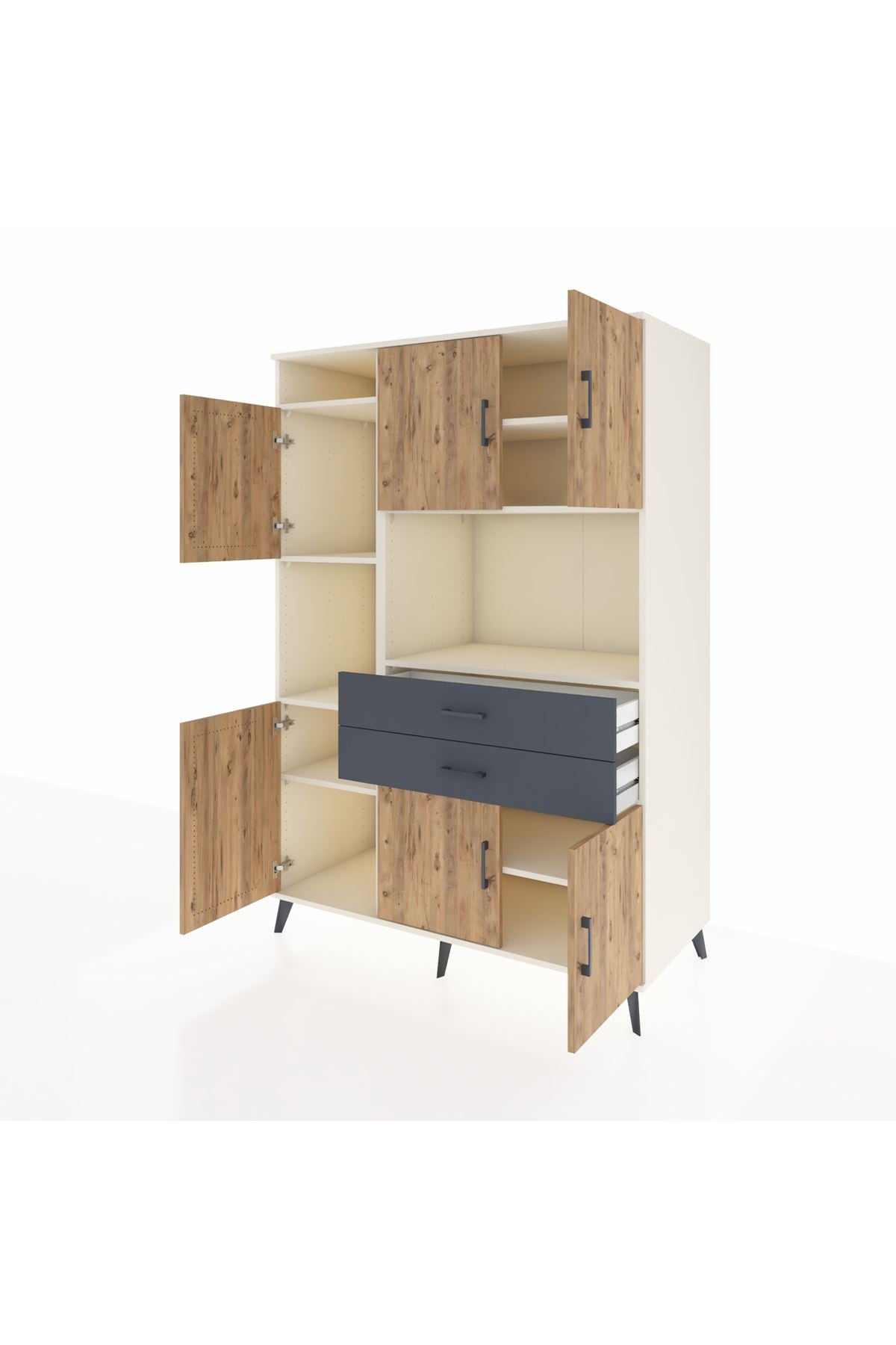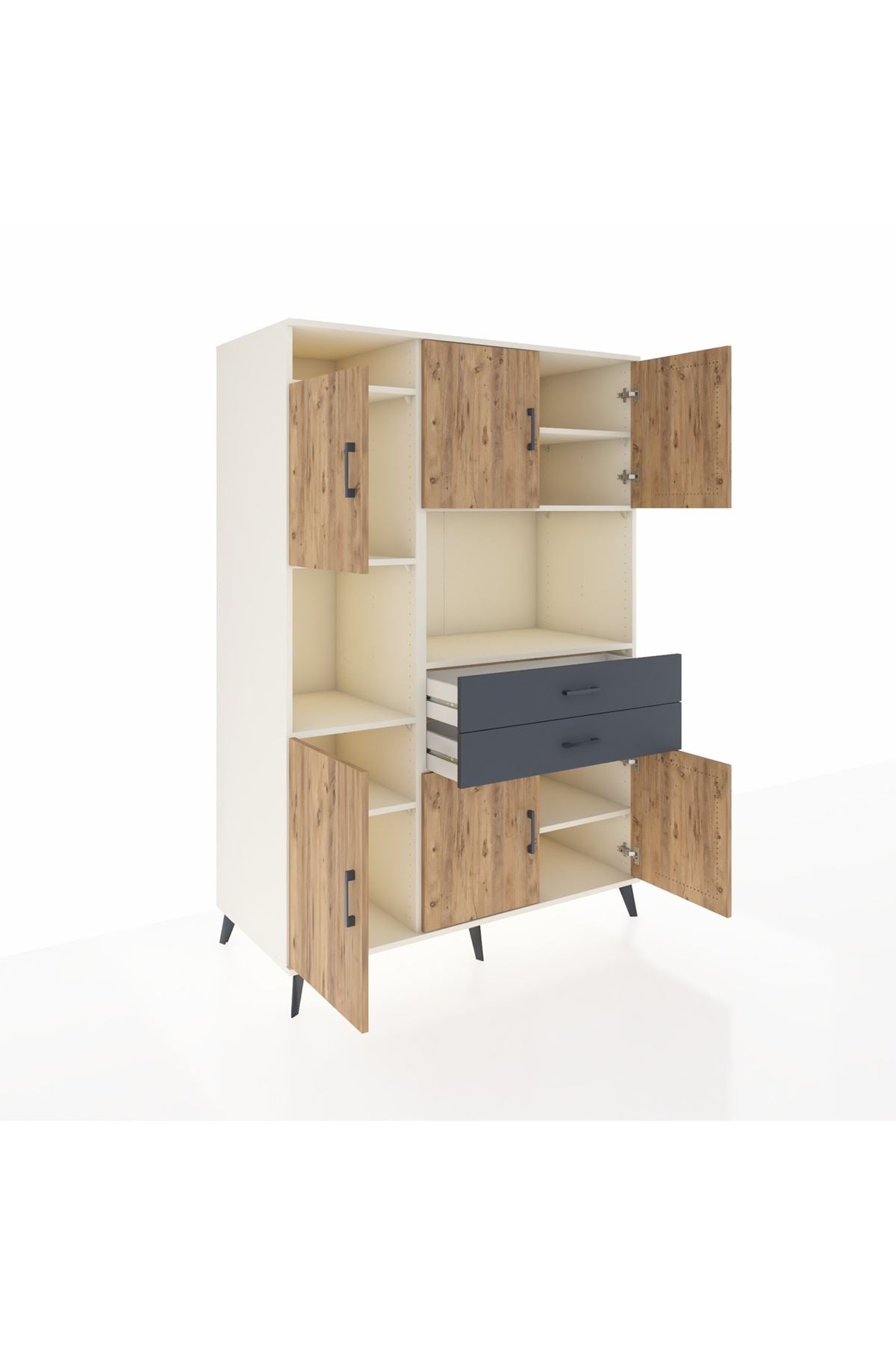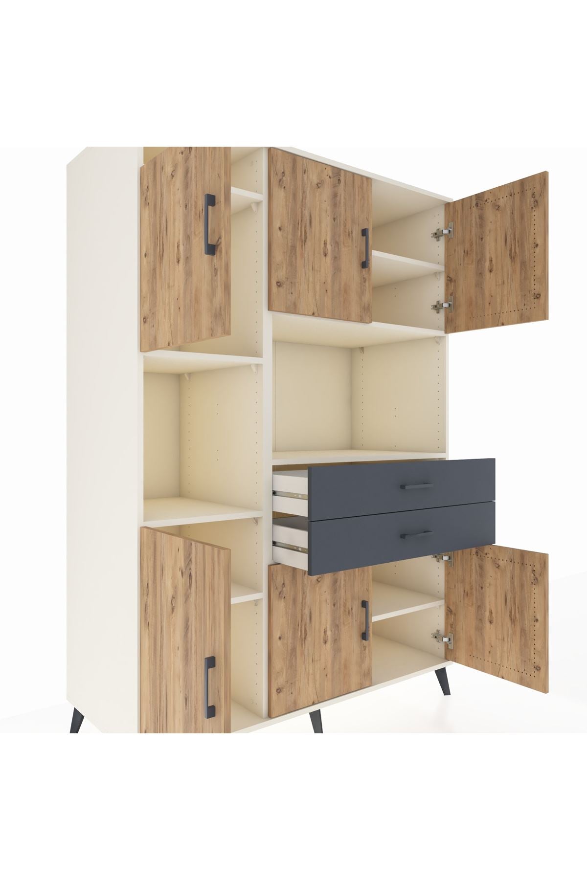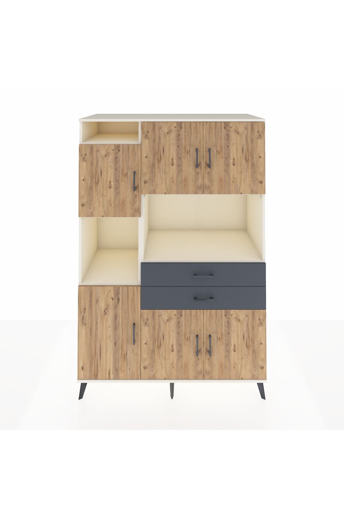 Kronos Dolap 8 Raflı 2 Çekmeceli 6 Kapaklı 132x59x195 Aytaşı-Çam/Antrasit