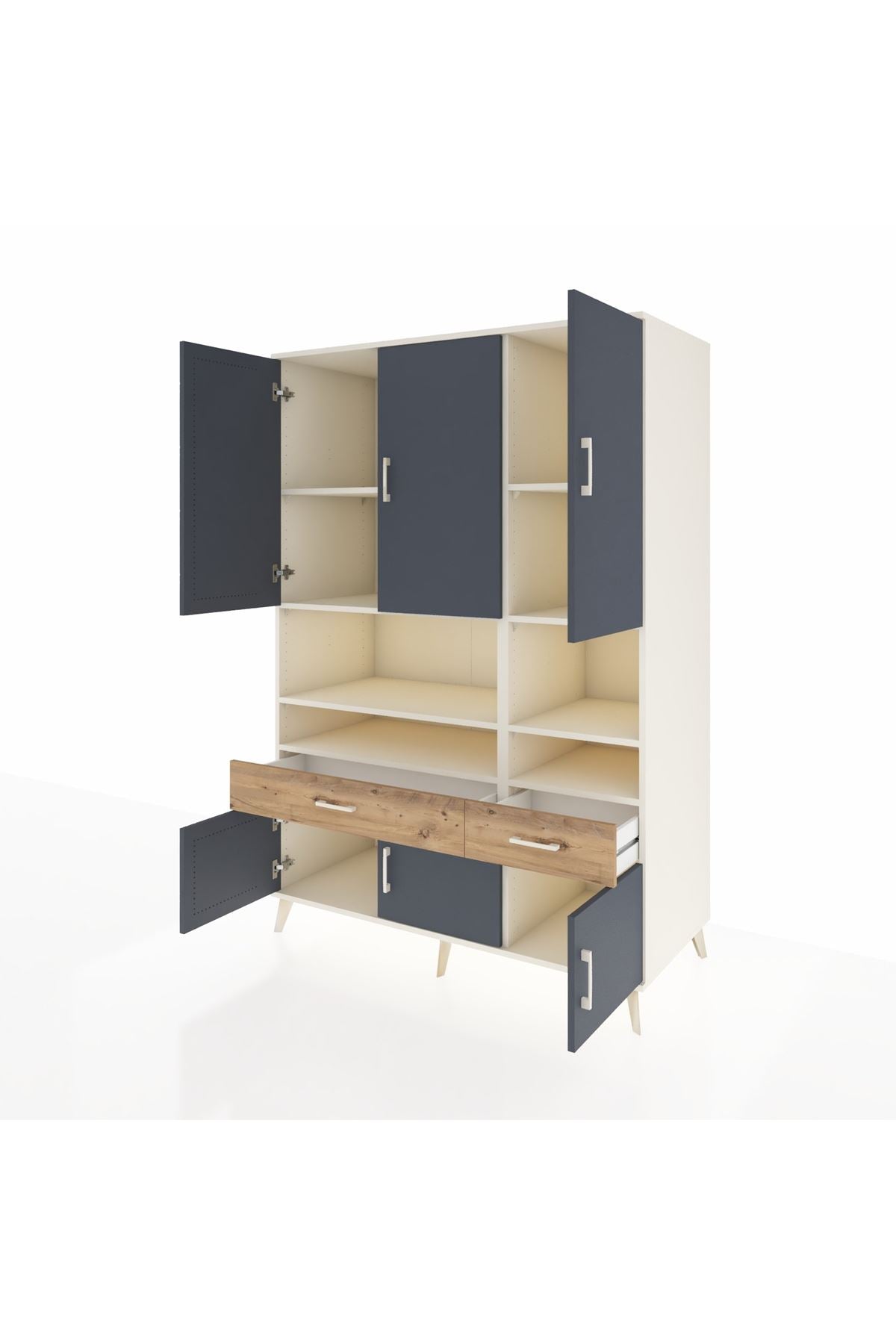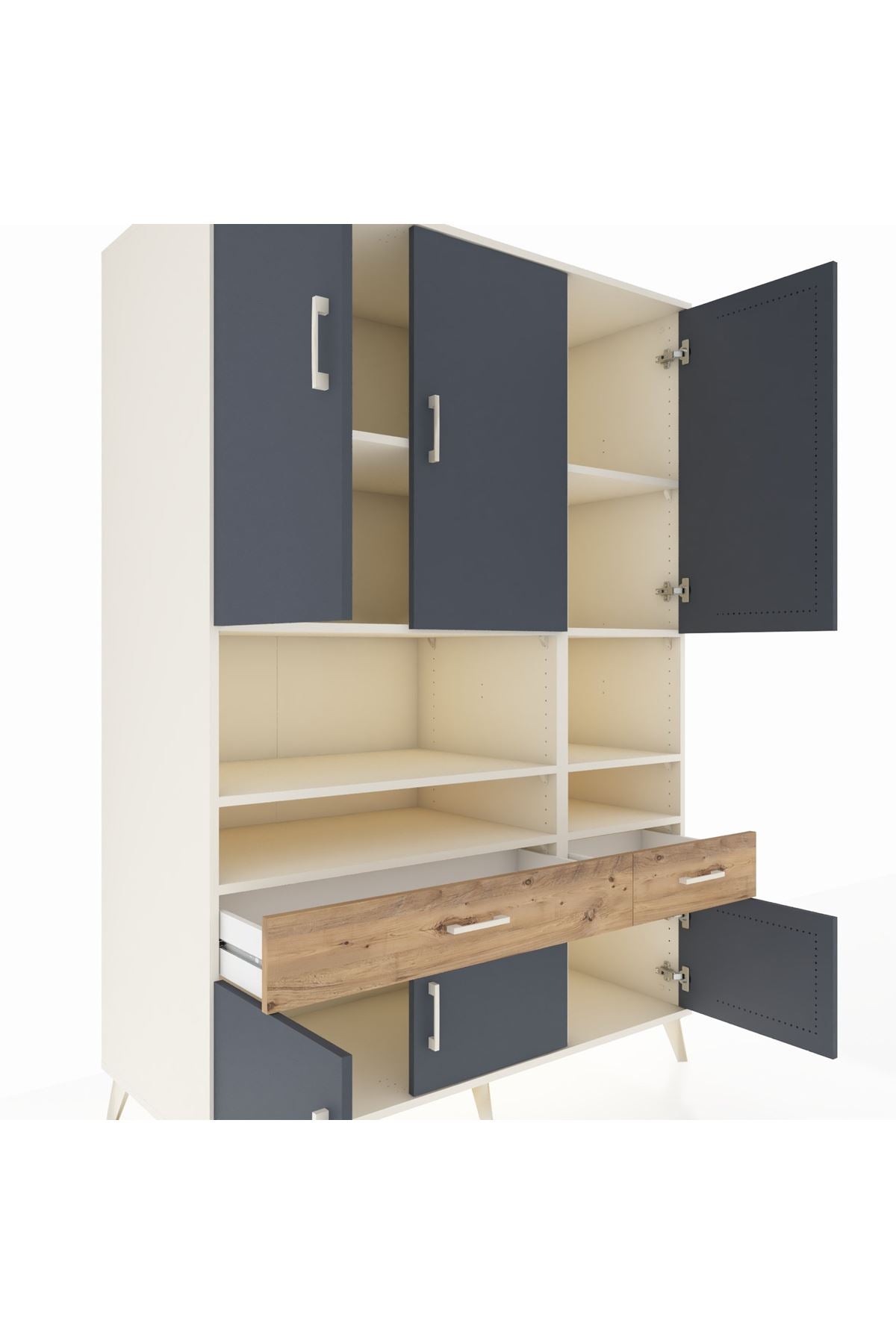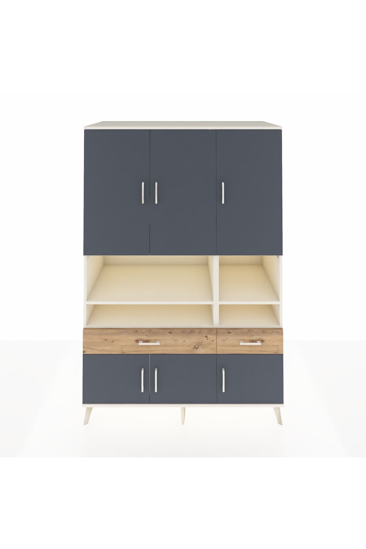 Kronos Dolap 8 Raflı 2 Çekmeceli 6 Kapaklı 132x59x195 Aytaşı-Antrasit/Çam
