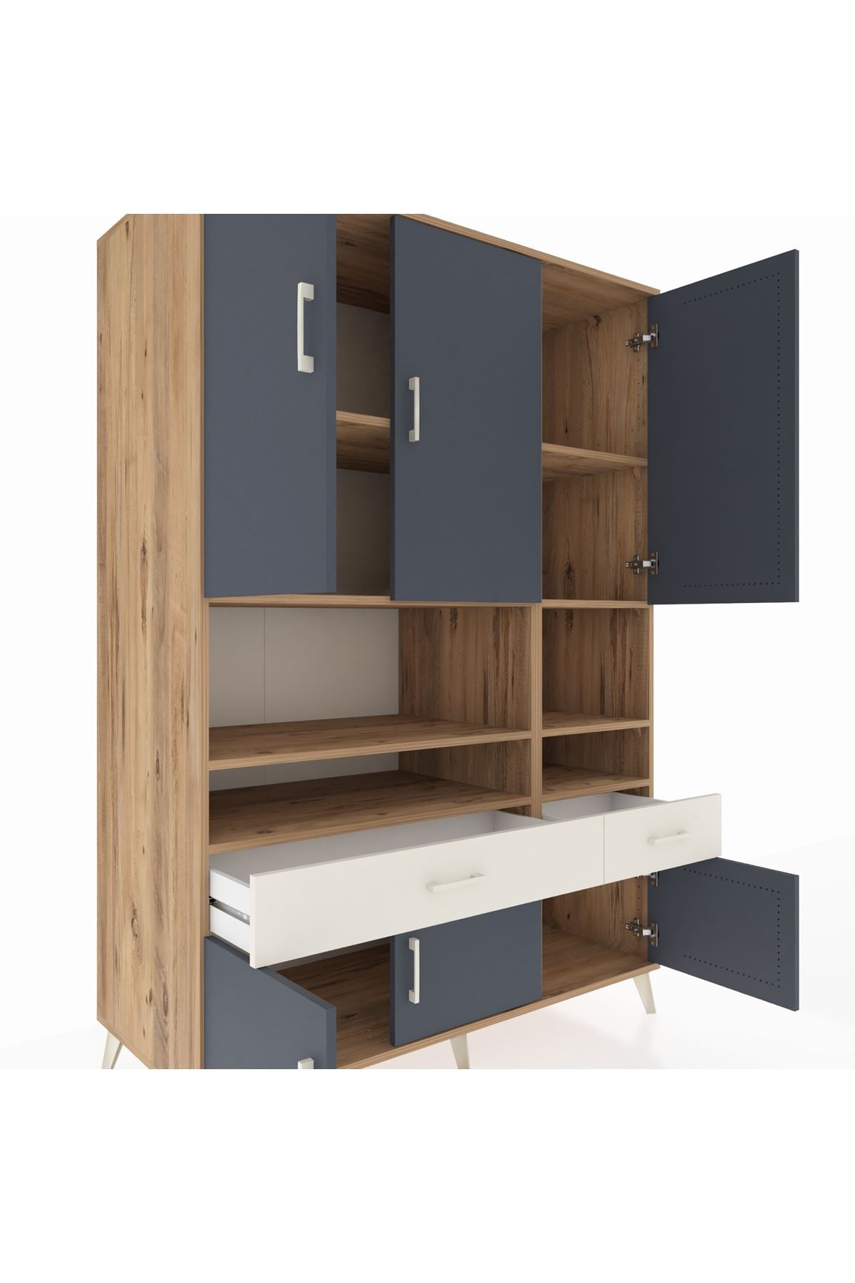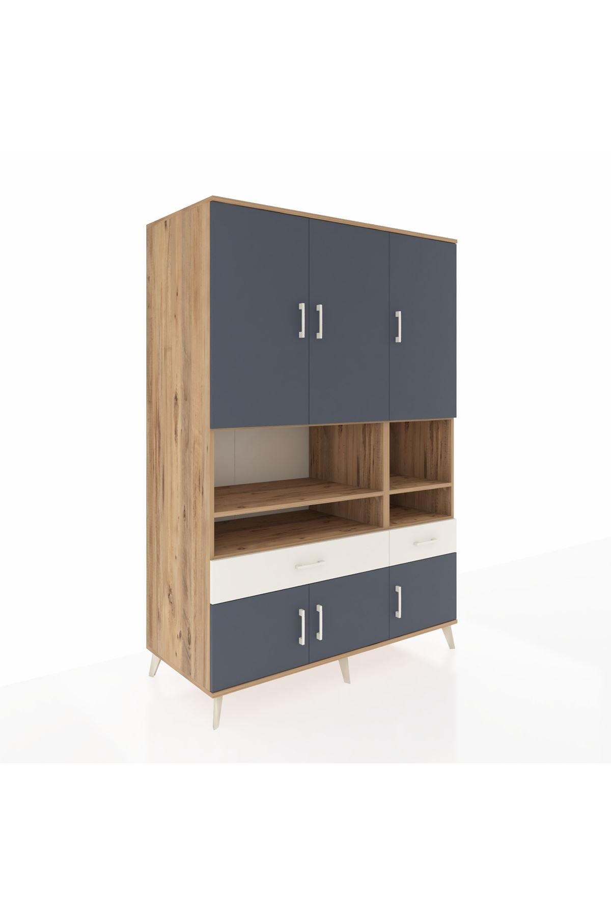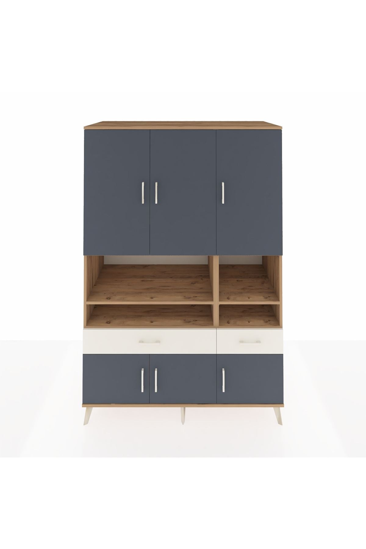 Kronos Dolap 8 Raflı 2 Çekmeceli 6 Kapaklı 132x59x195 Çam-Antrasit/Aytaşı