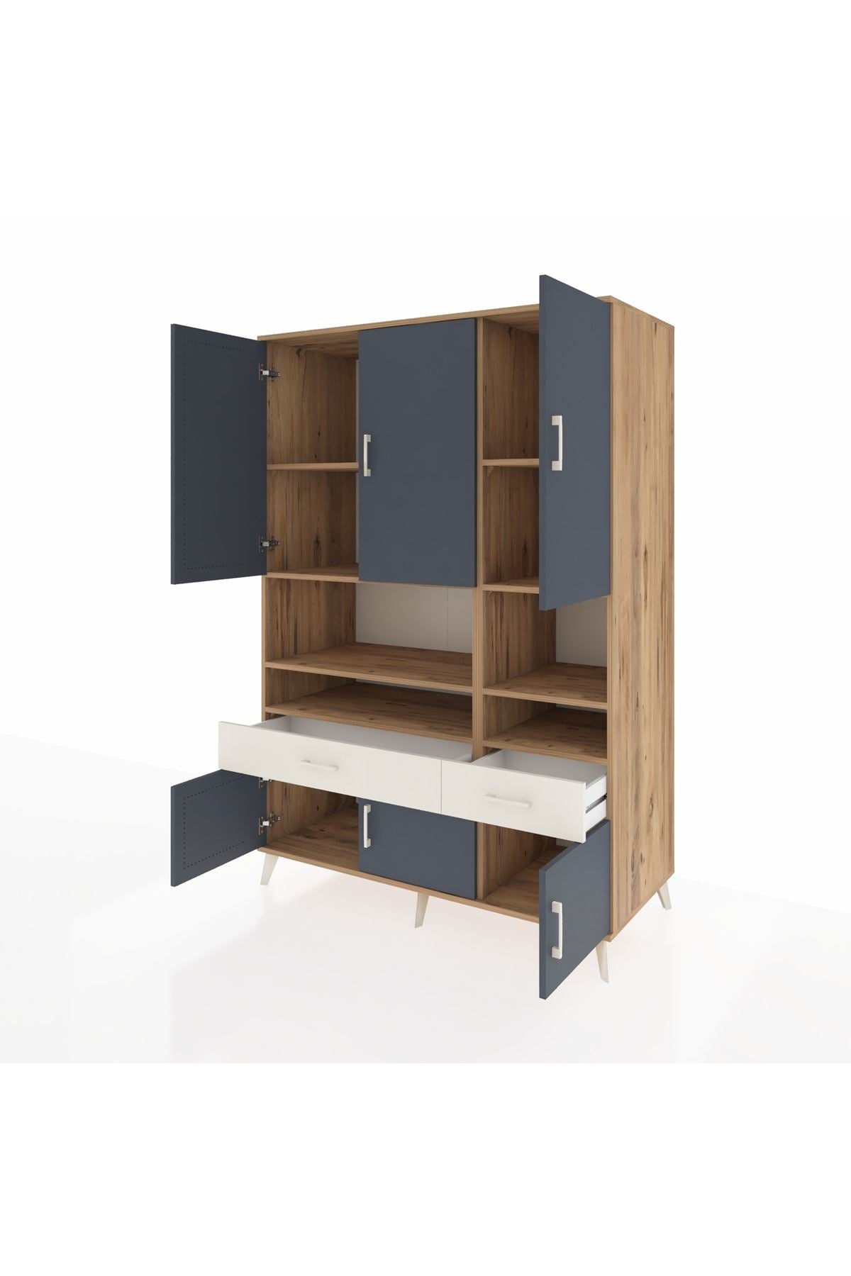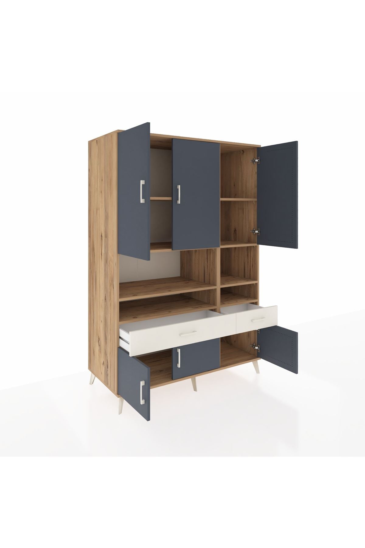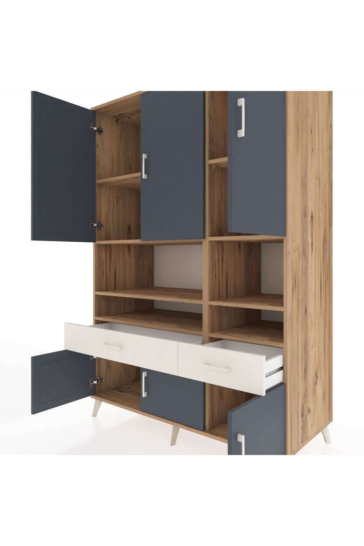Kronos Dolap 8 Raflı 2 Çekmeceli 6 Kapaklı 132x59x195 Çam-Antrasit/Aytaşı
