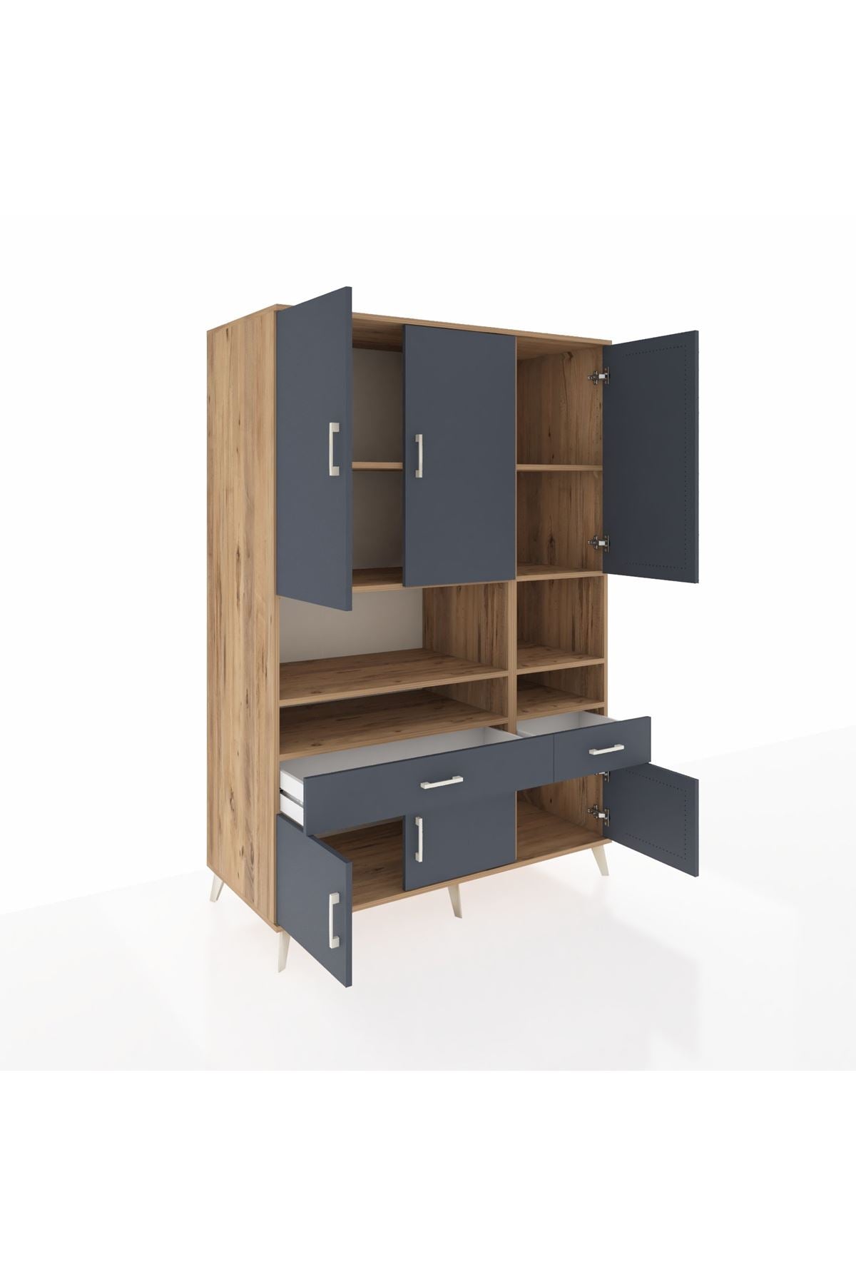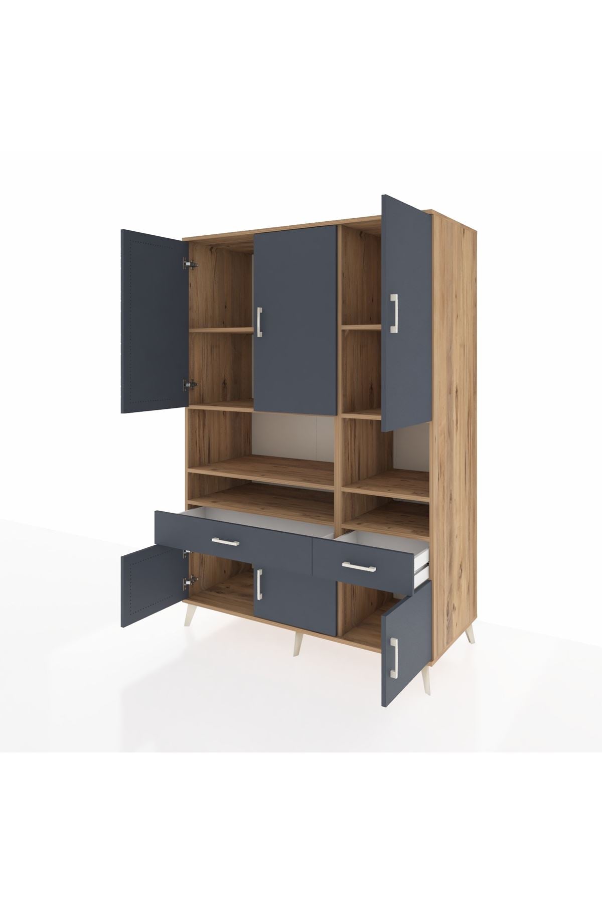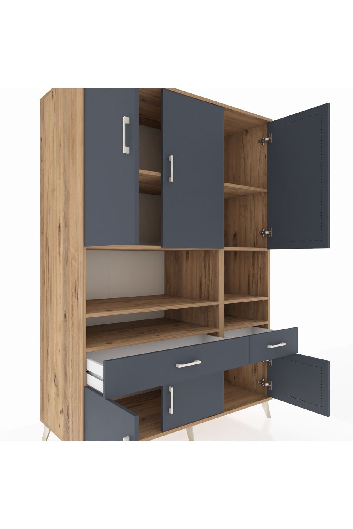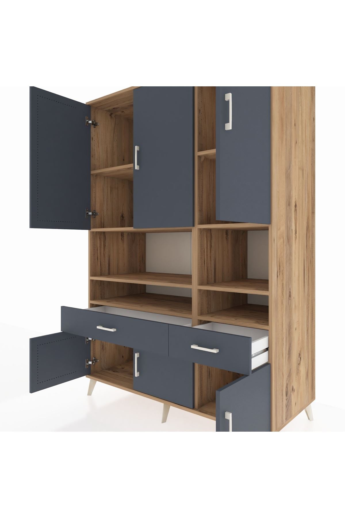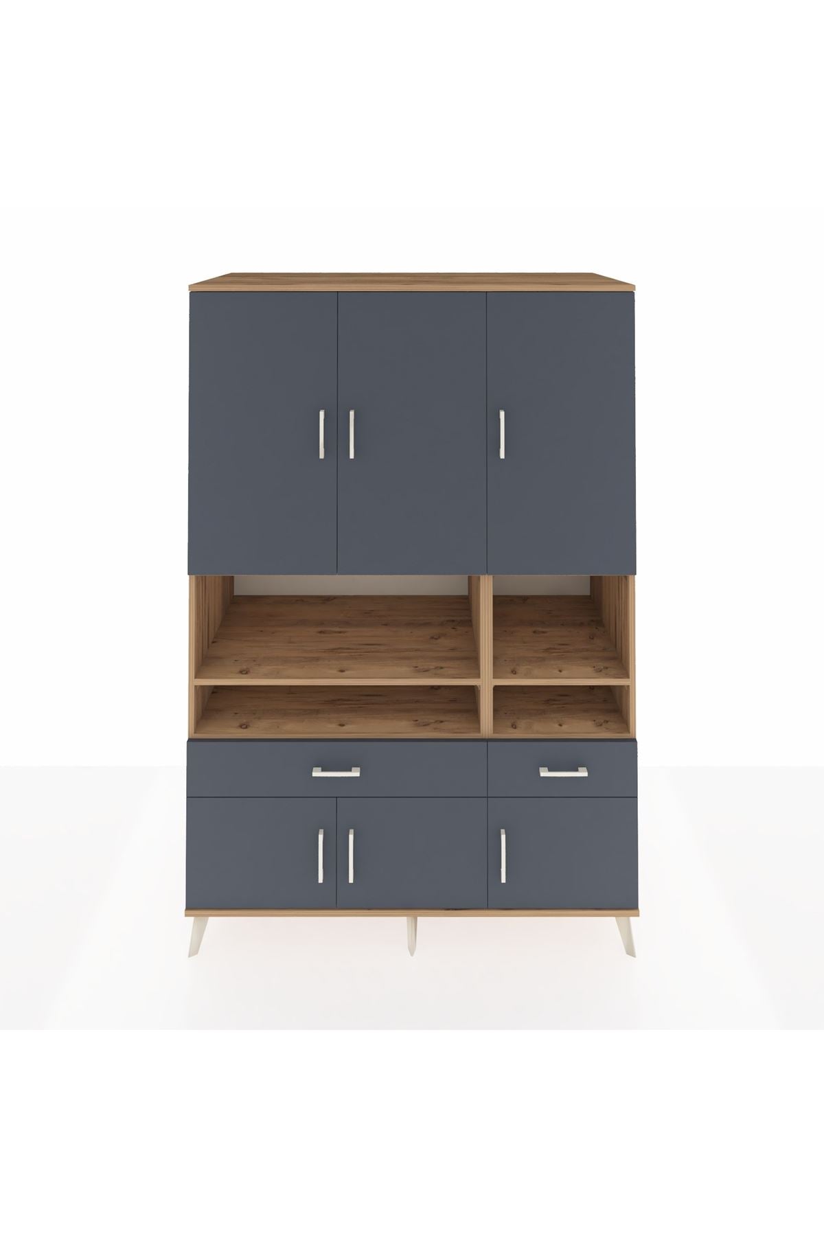 Kronos Dolap 8 Raflı 2 Çekmeceli 6 Kapaklı 132x59x195 Çam-Antrasit/Antrasit