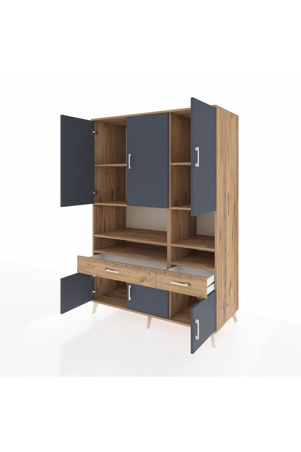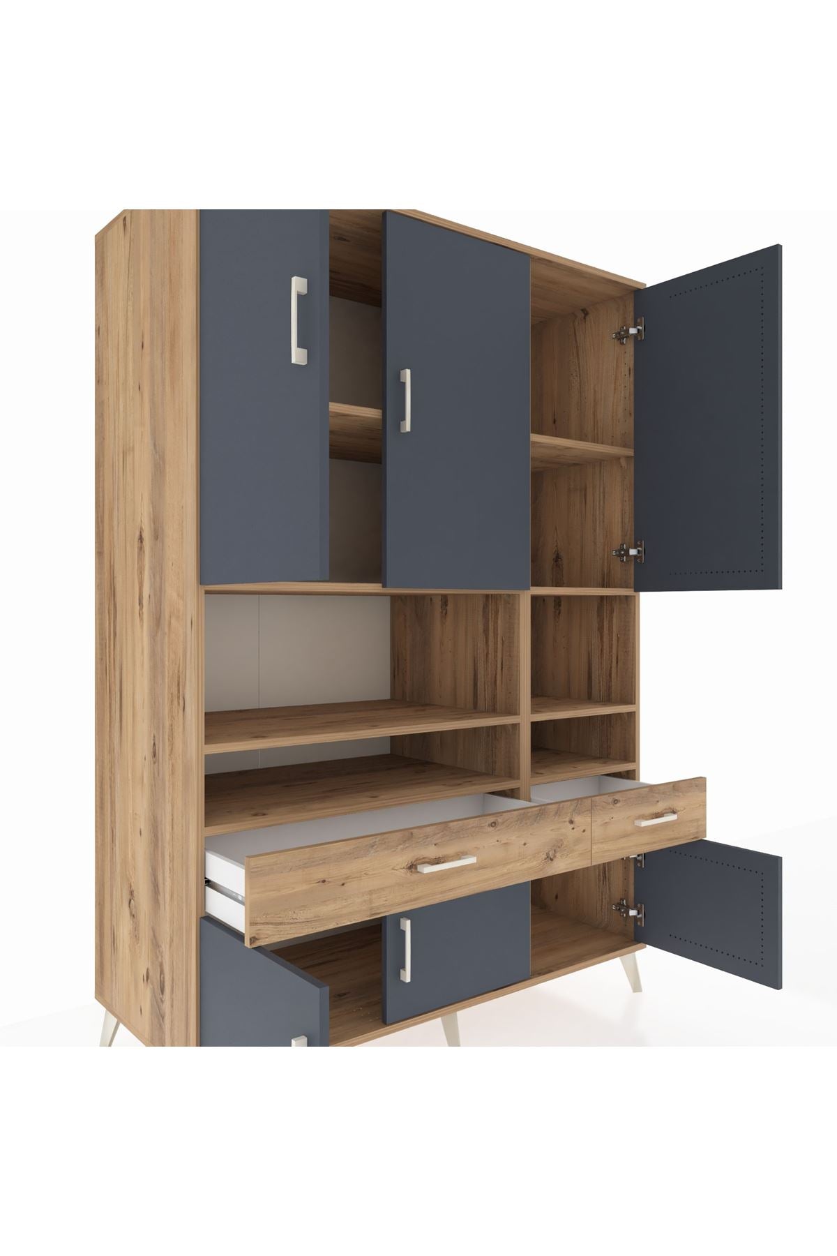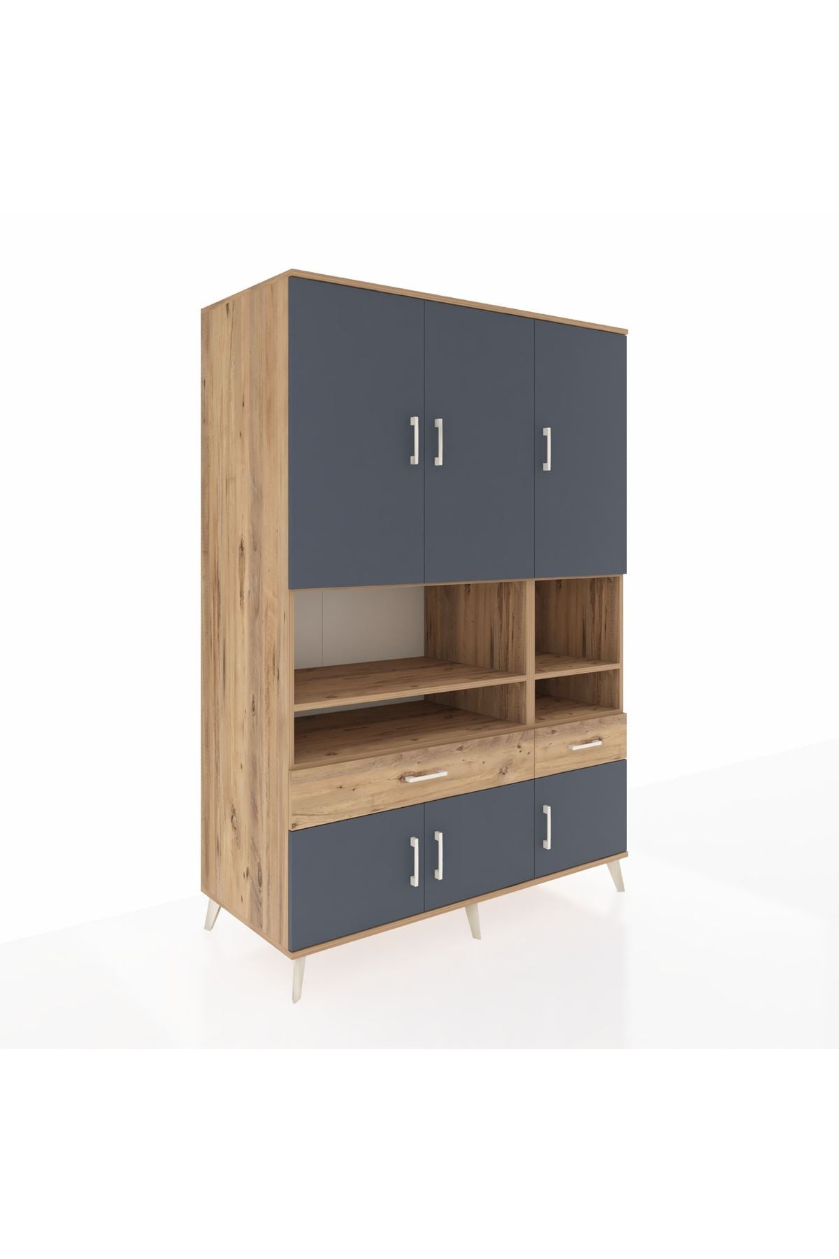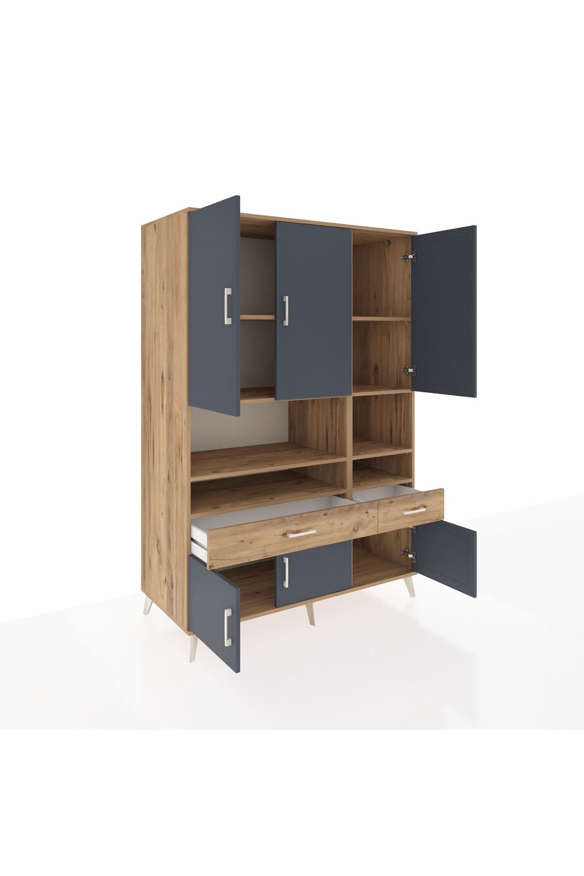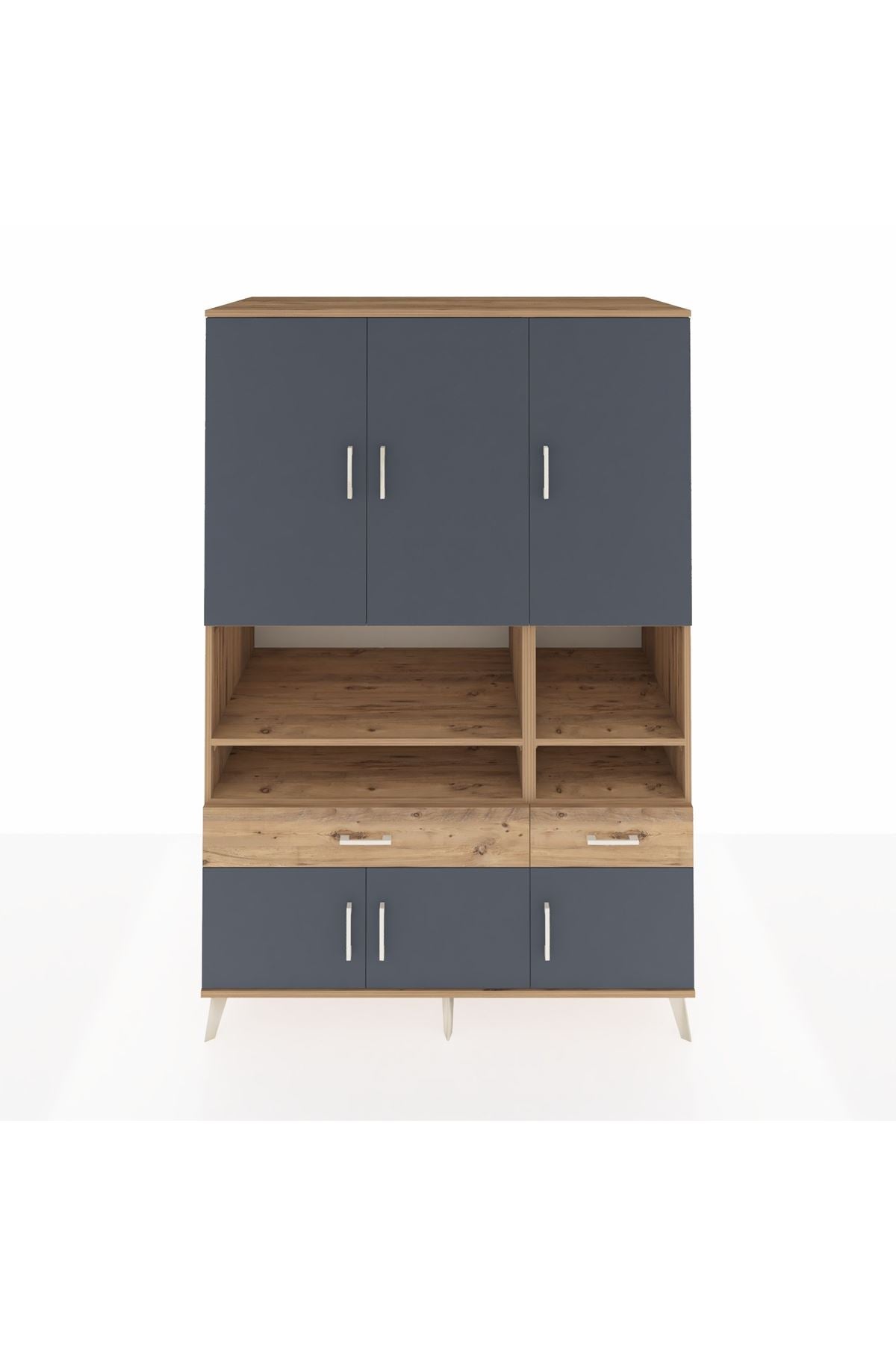 Kronos Dolap 8 Raflı 2 Çekmeceli 6 Kapaklı 132x59x195 Çam-Antrasit/Çam
