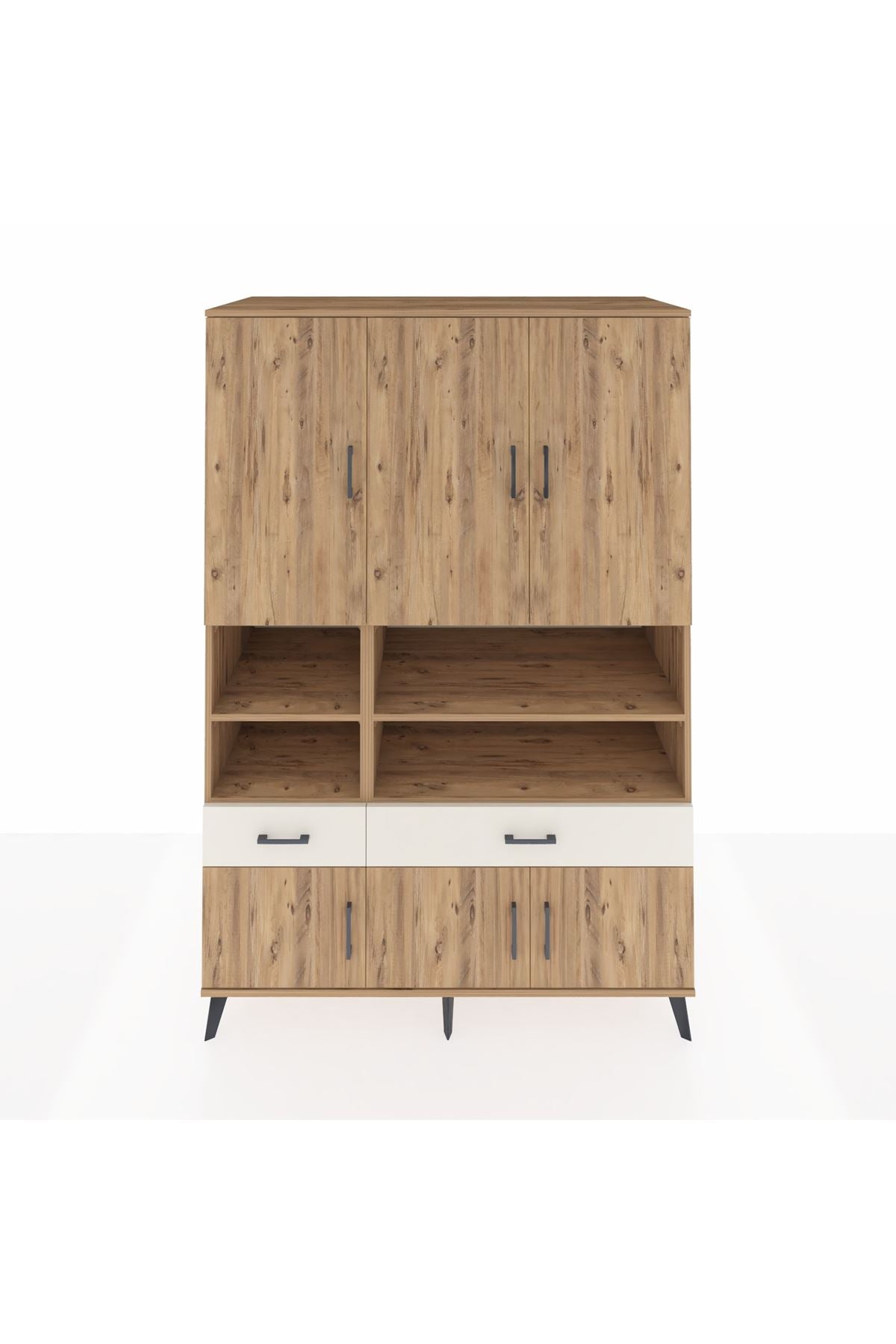 Kronos Dolap 8 Raflı 2 Çekmeceli 6 Kapaklı 132x59x195 Çam-Çam/Aytaşı