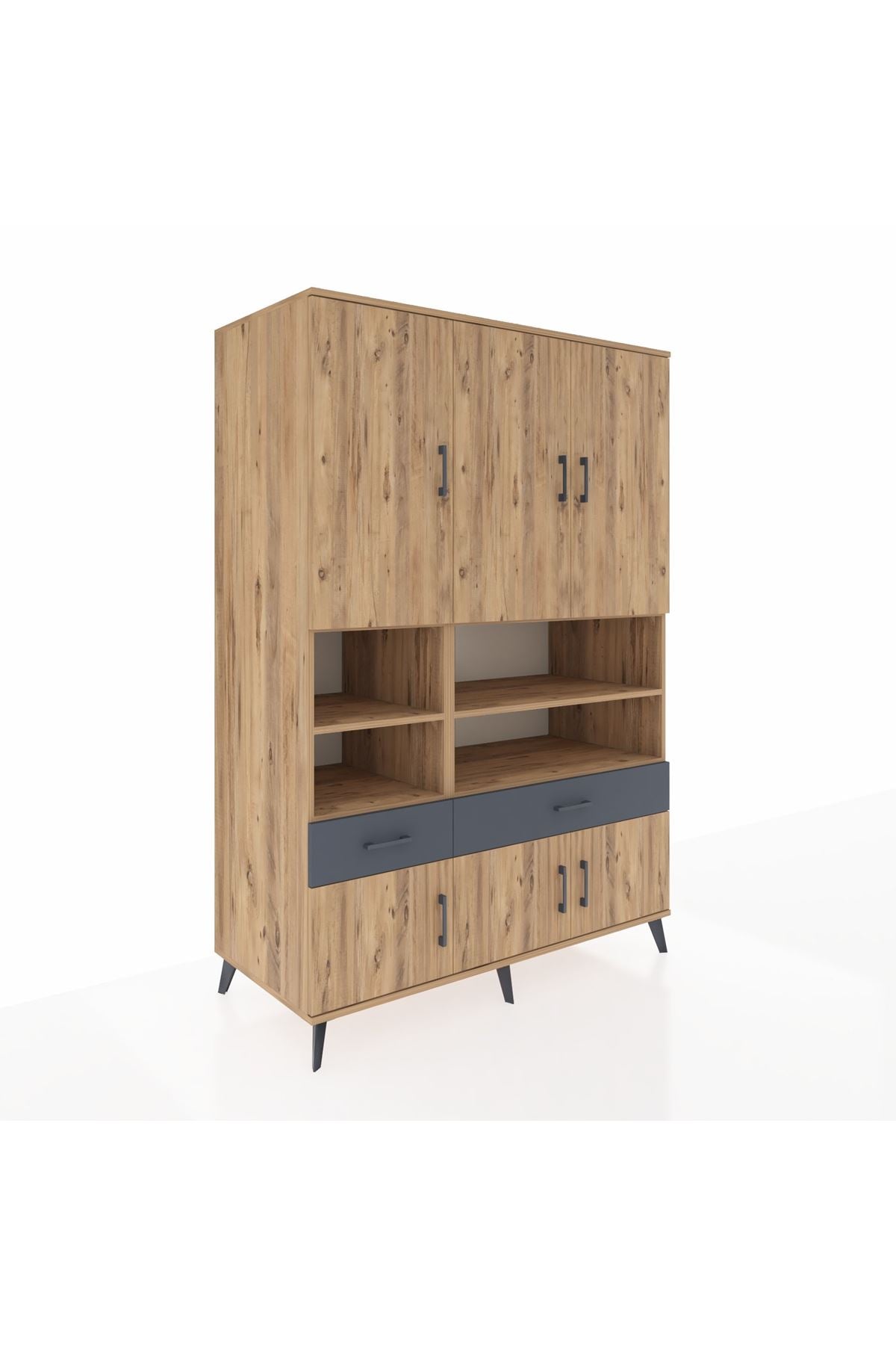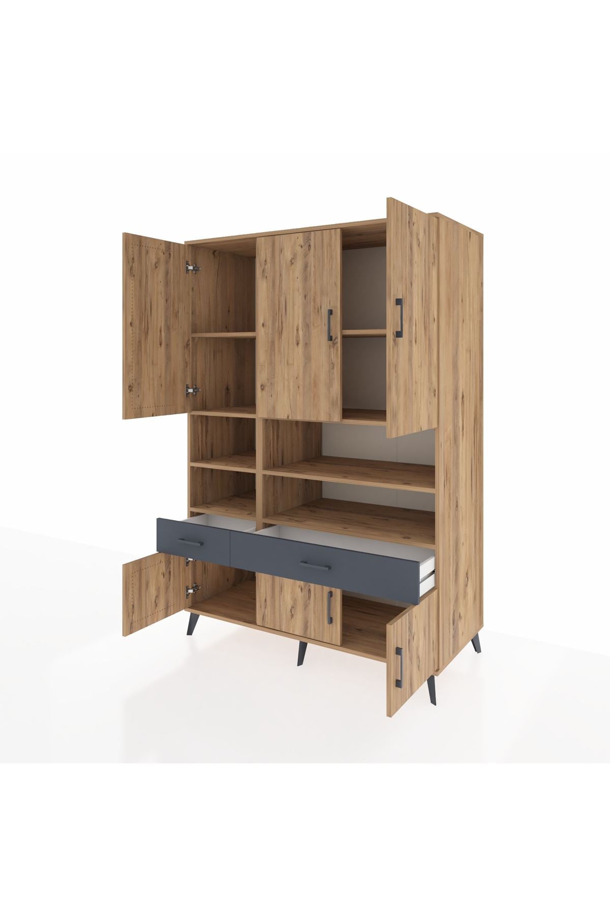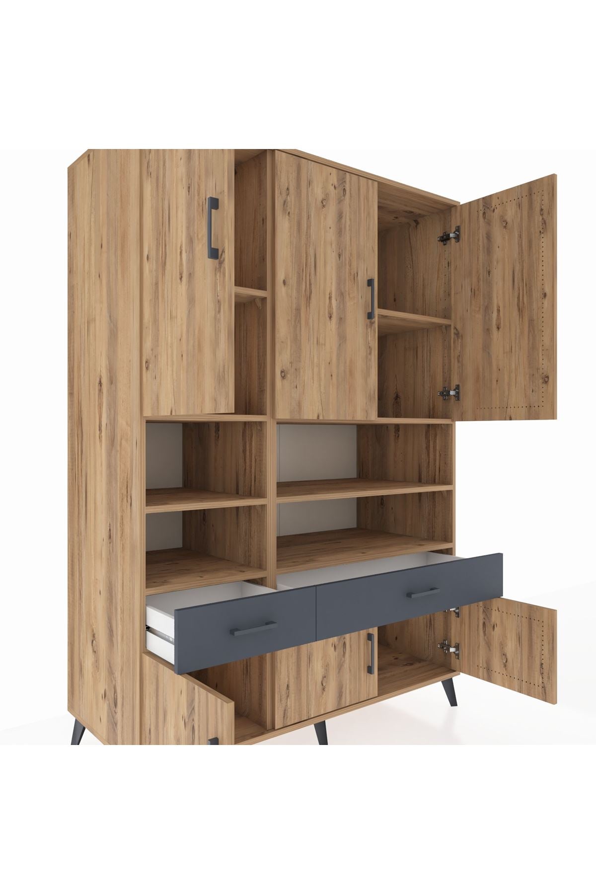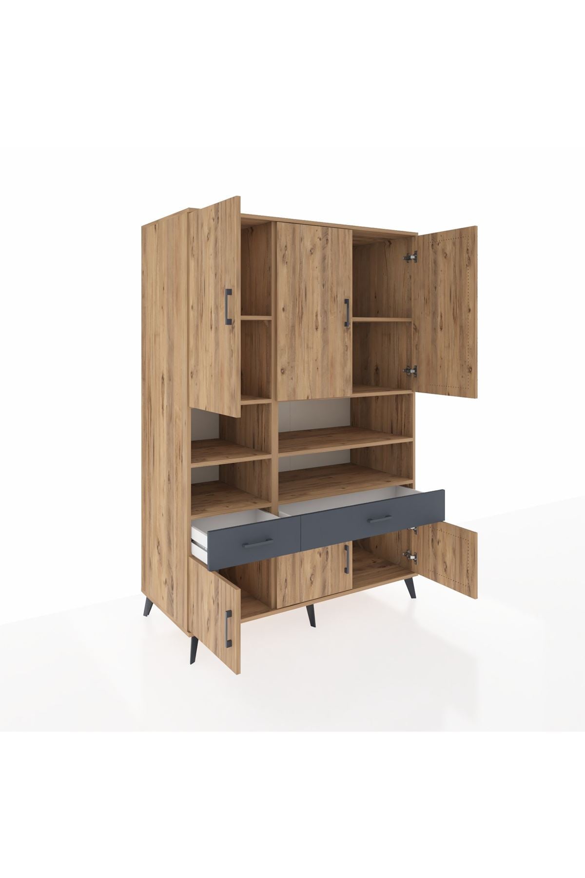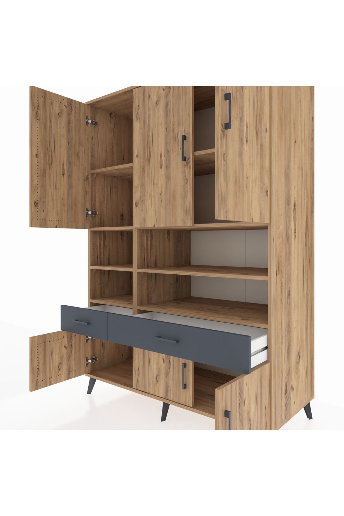 Kronos Dolap 8 Raflı 2 Çekmeceli 6 Kapaklı 132x59x195 Çam-Çam/Antrasit
