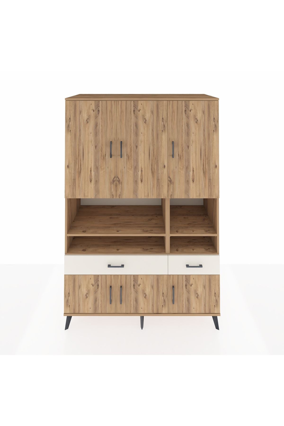 Kronos Dolap 8 Raflı 2 Çekmeceli 6 Kapaklı 132x59x195 Çam-Çam/Aytaşı