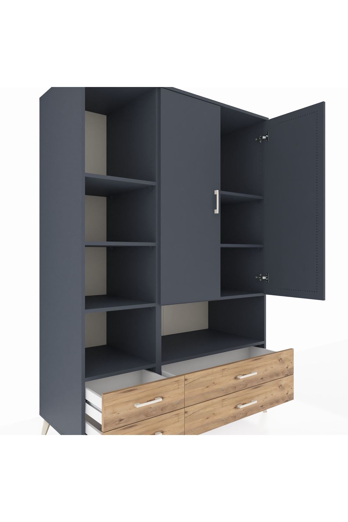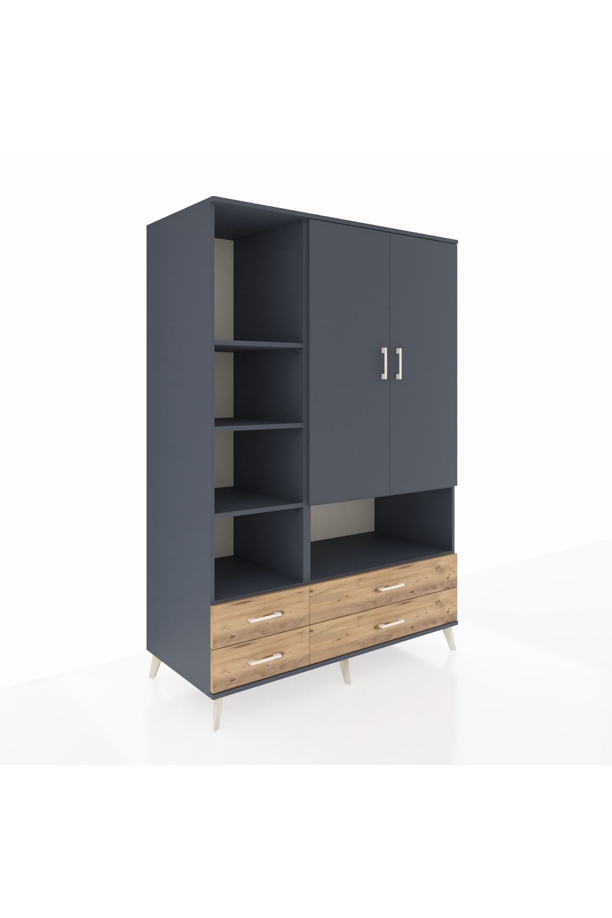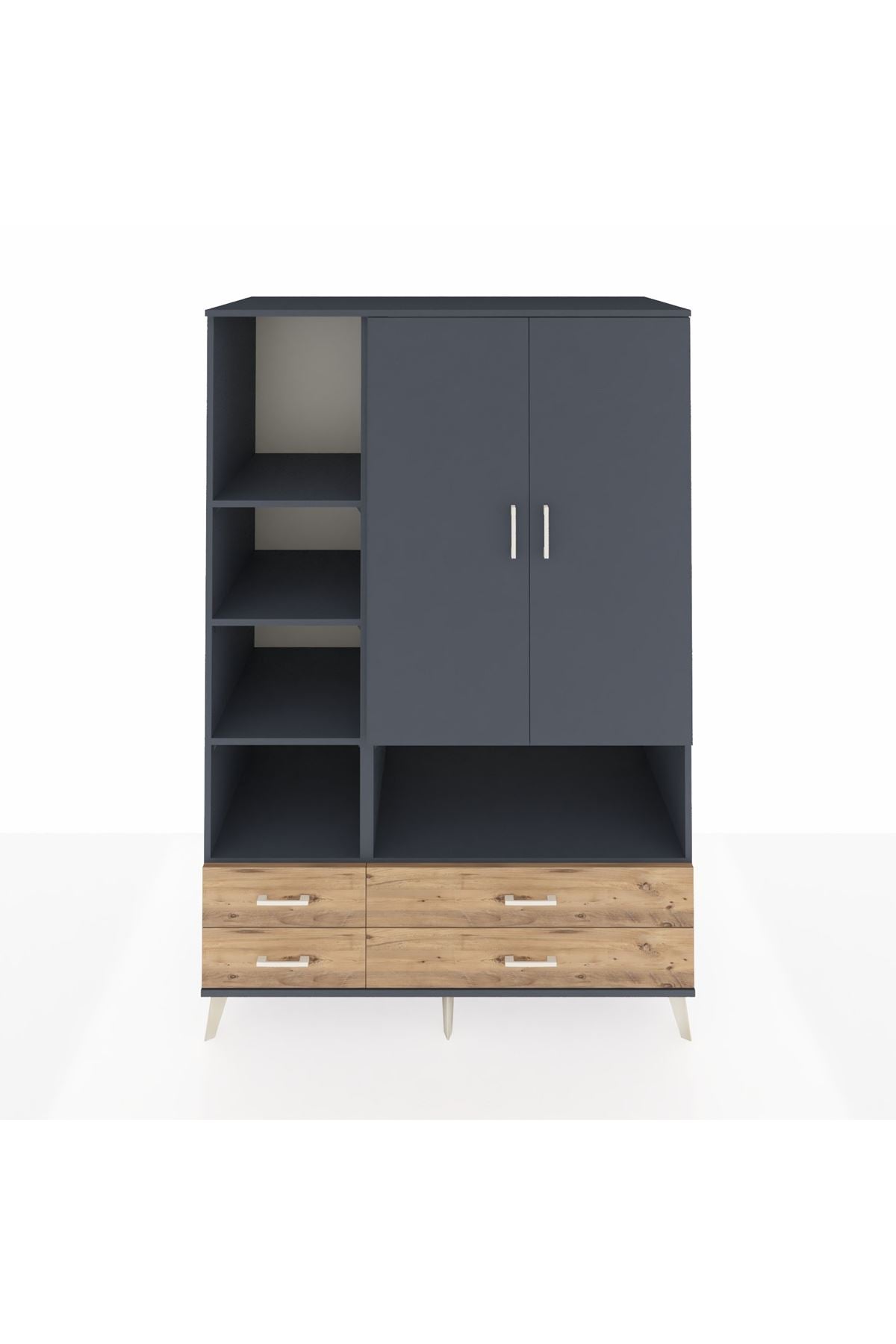 Kronos Dolap 8 Raflı 4 Çekmeceli 2 Kapaklı 132x59x195 Antrasit-Antrasit/Çam