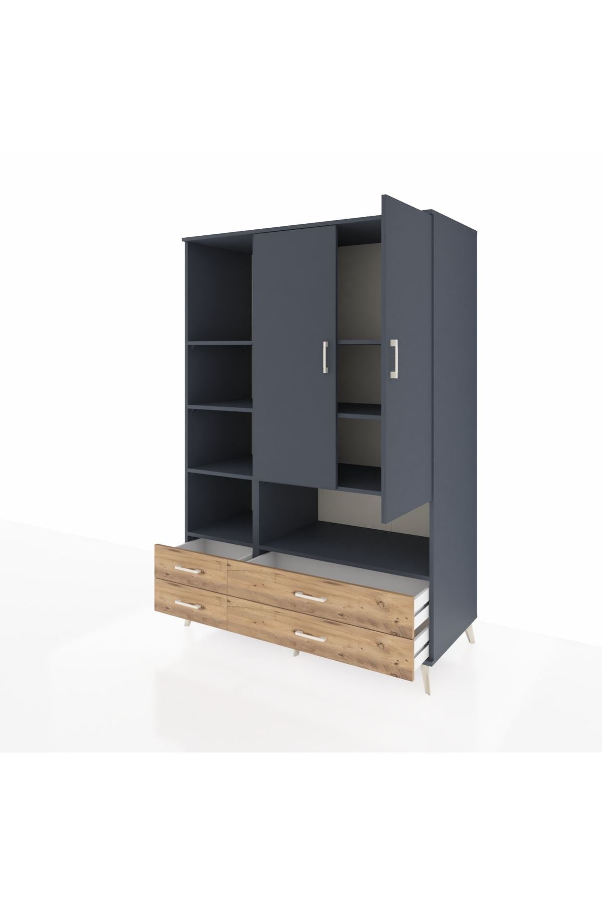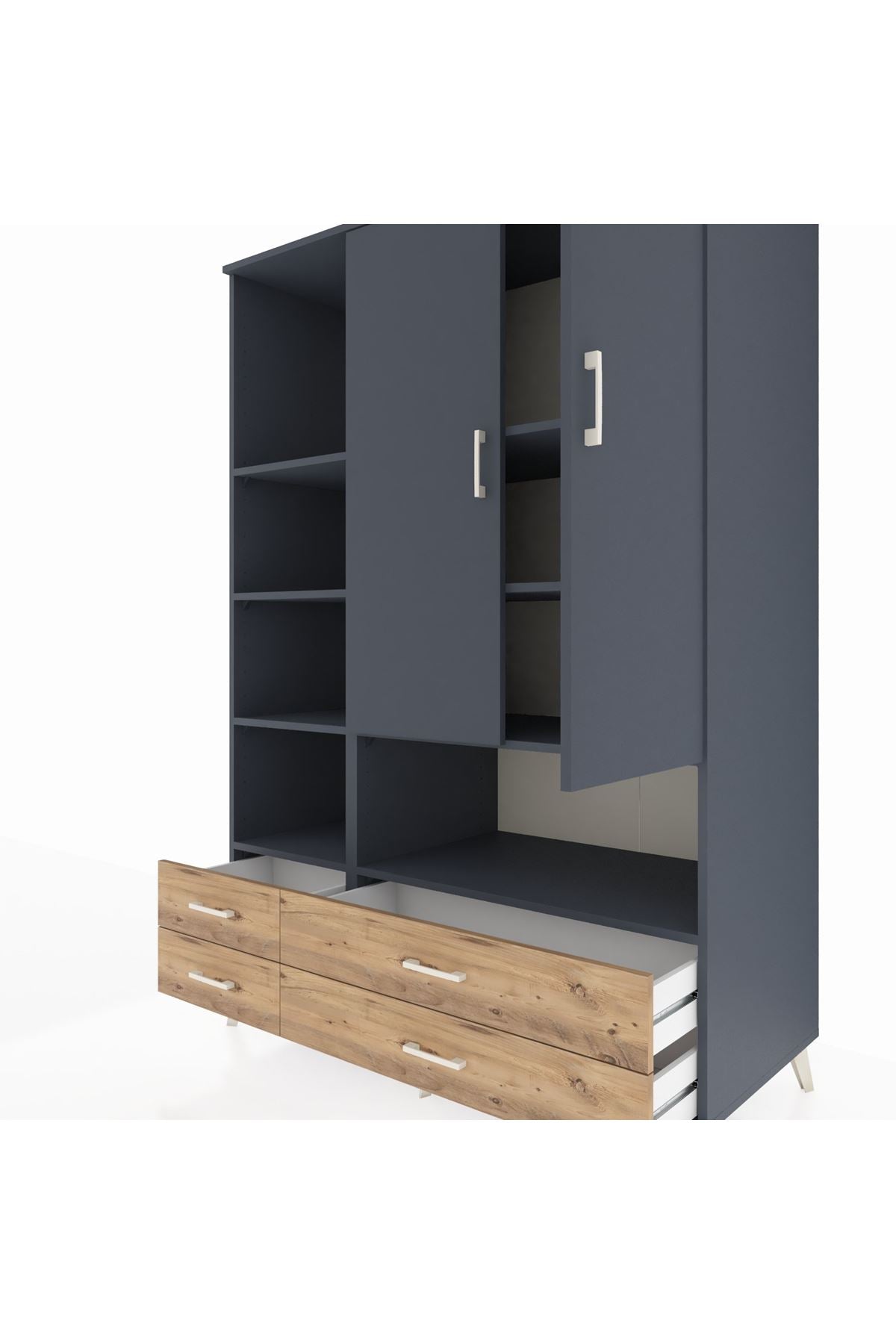 🌞 Kronos Dolap 8 Raflı 4 Çekmeceli 2 Kapaklı 132x59x195 Antrasit-Antrasit/Çam