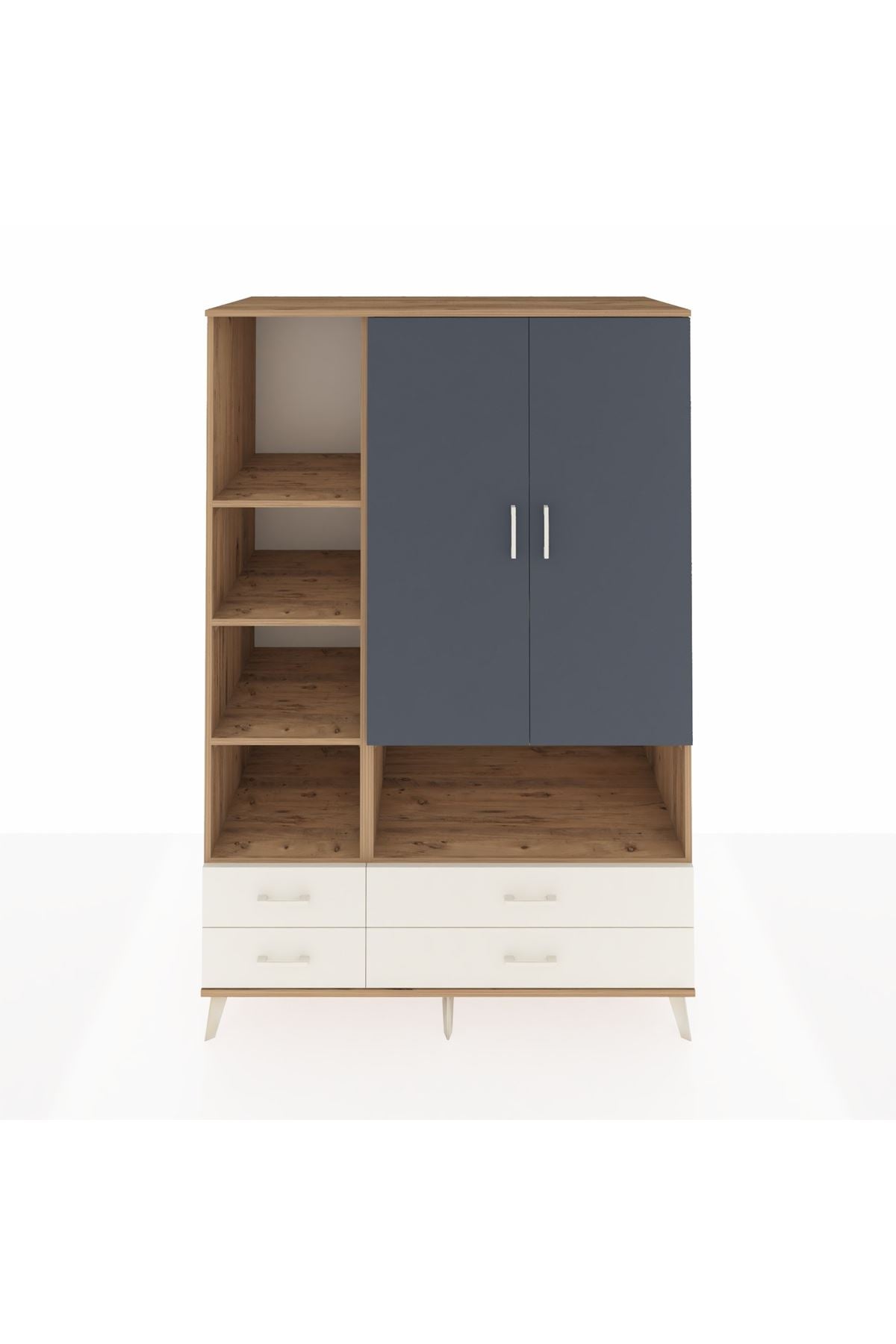 Kronos Dolap 8 Raflı 4 Çekmeceli 2 Kapaklı 132x59x195 Çam-Antrasit/Aytaşı