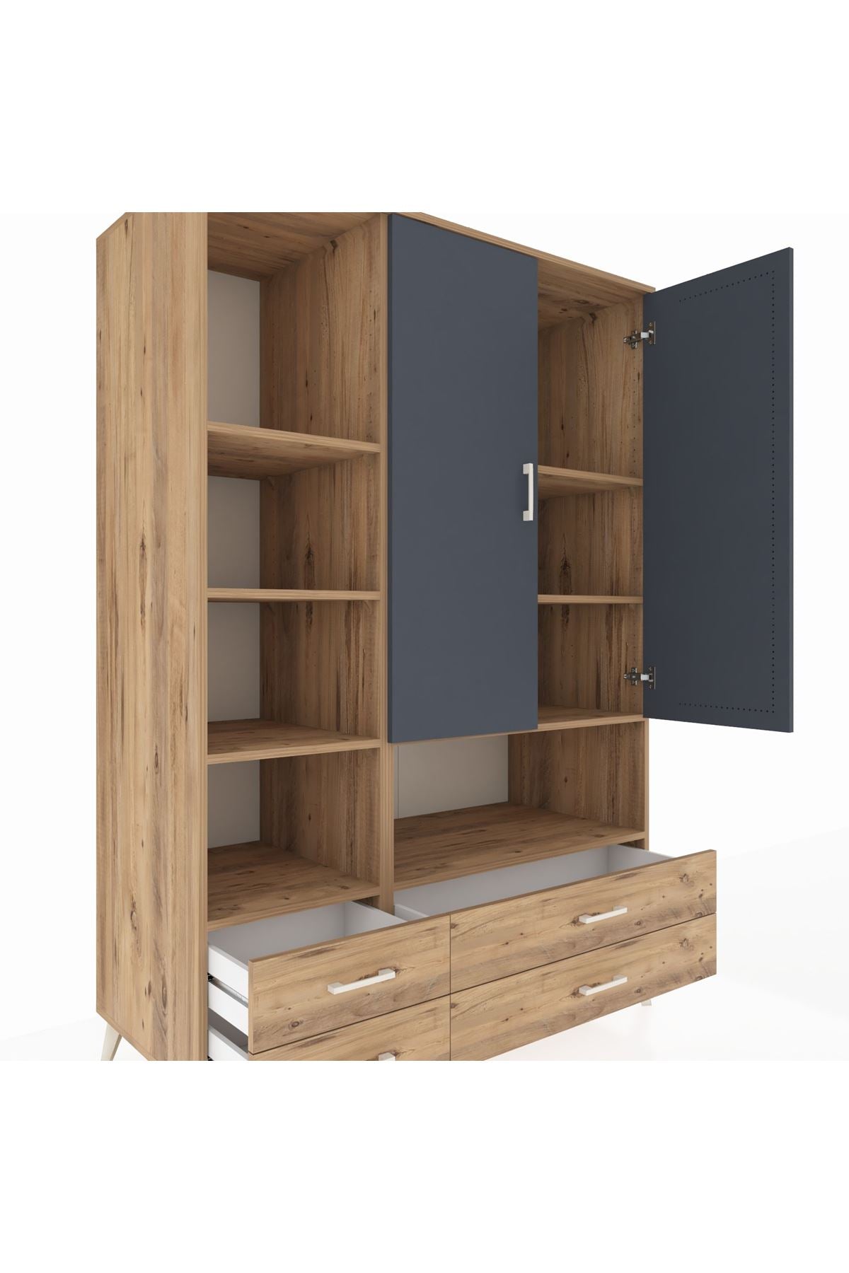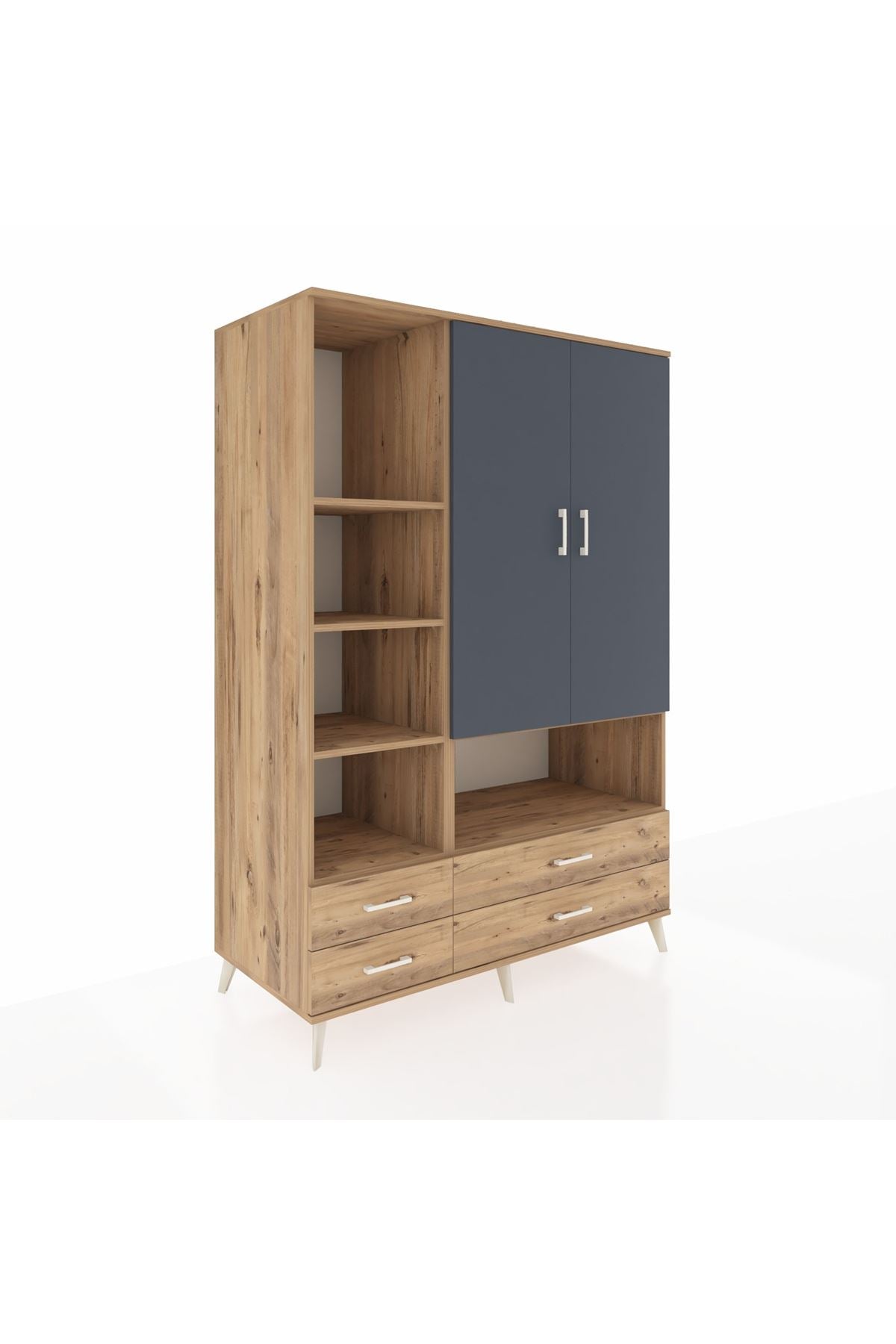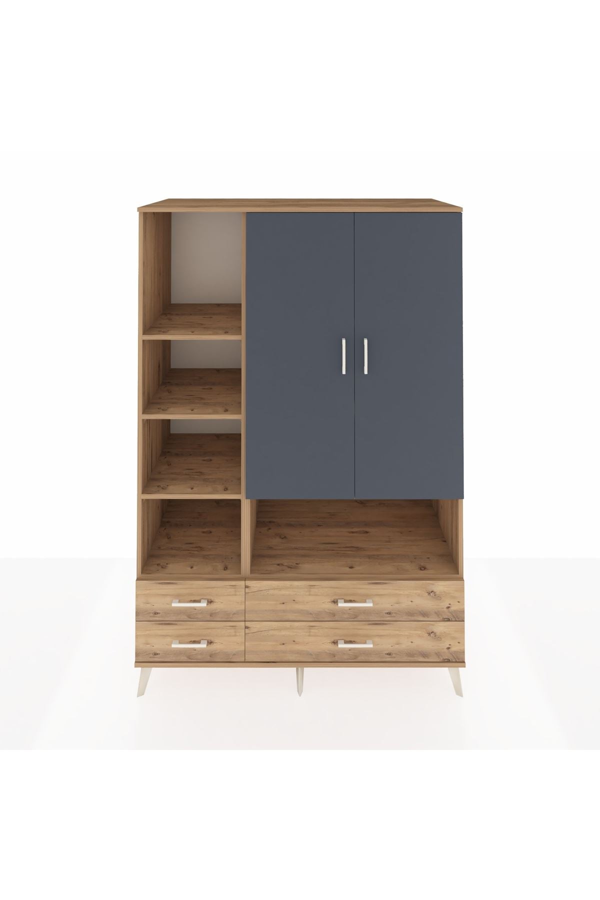 Kronos Dolap 8 Raflı 4 Çekmeceli 2 Kapaklı 132x59x195 Çam-Antrasit/Çam
