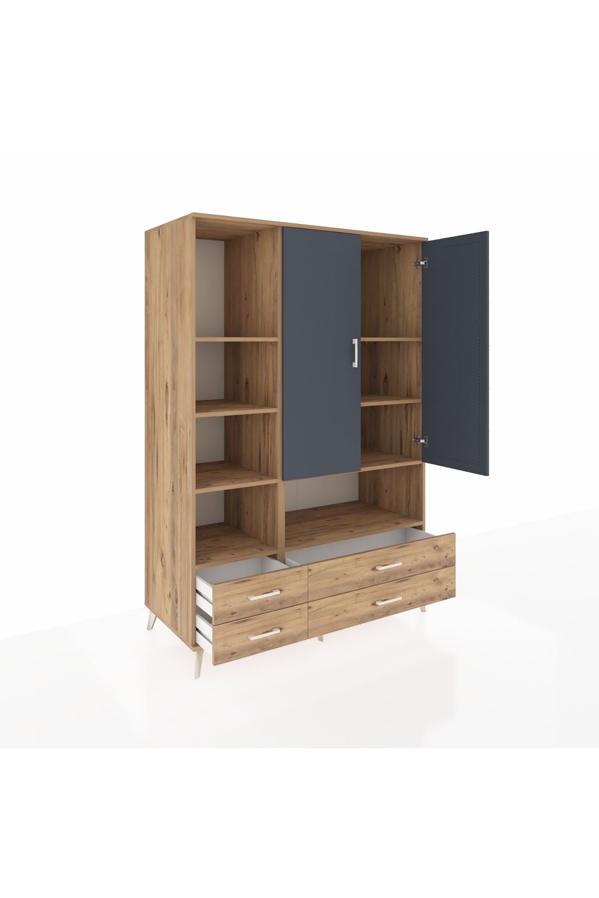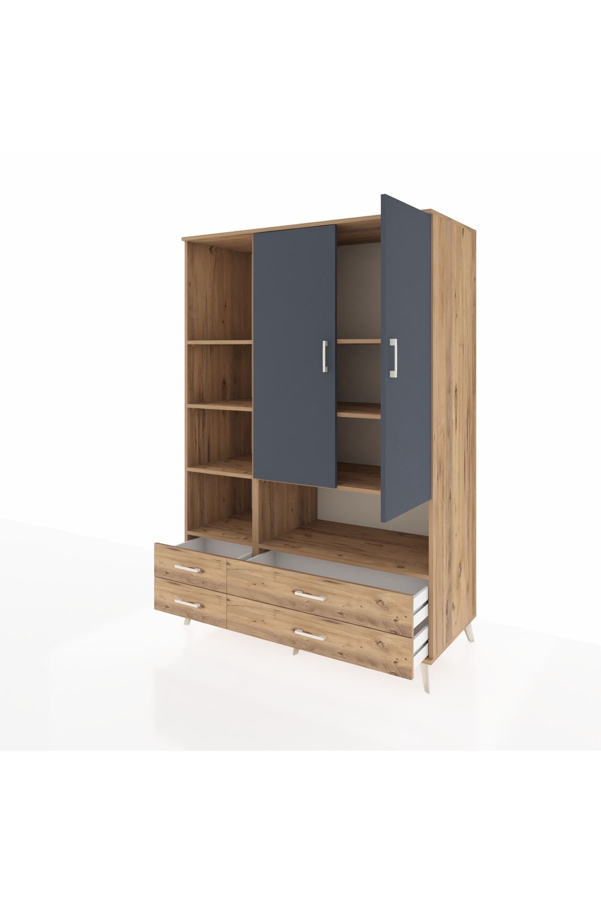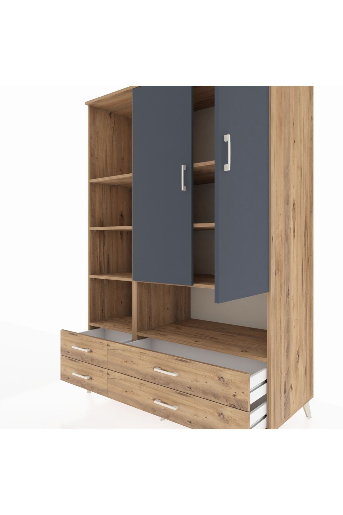 Kronos Dolap 8 Raflı 4 Çekmeceli 2 Kapaklı 132x59x195 Çam-Antrasit/Çam