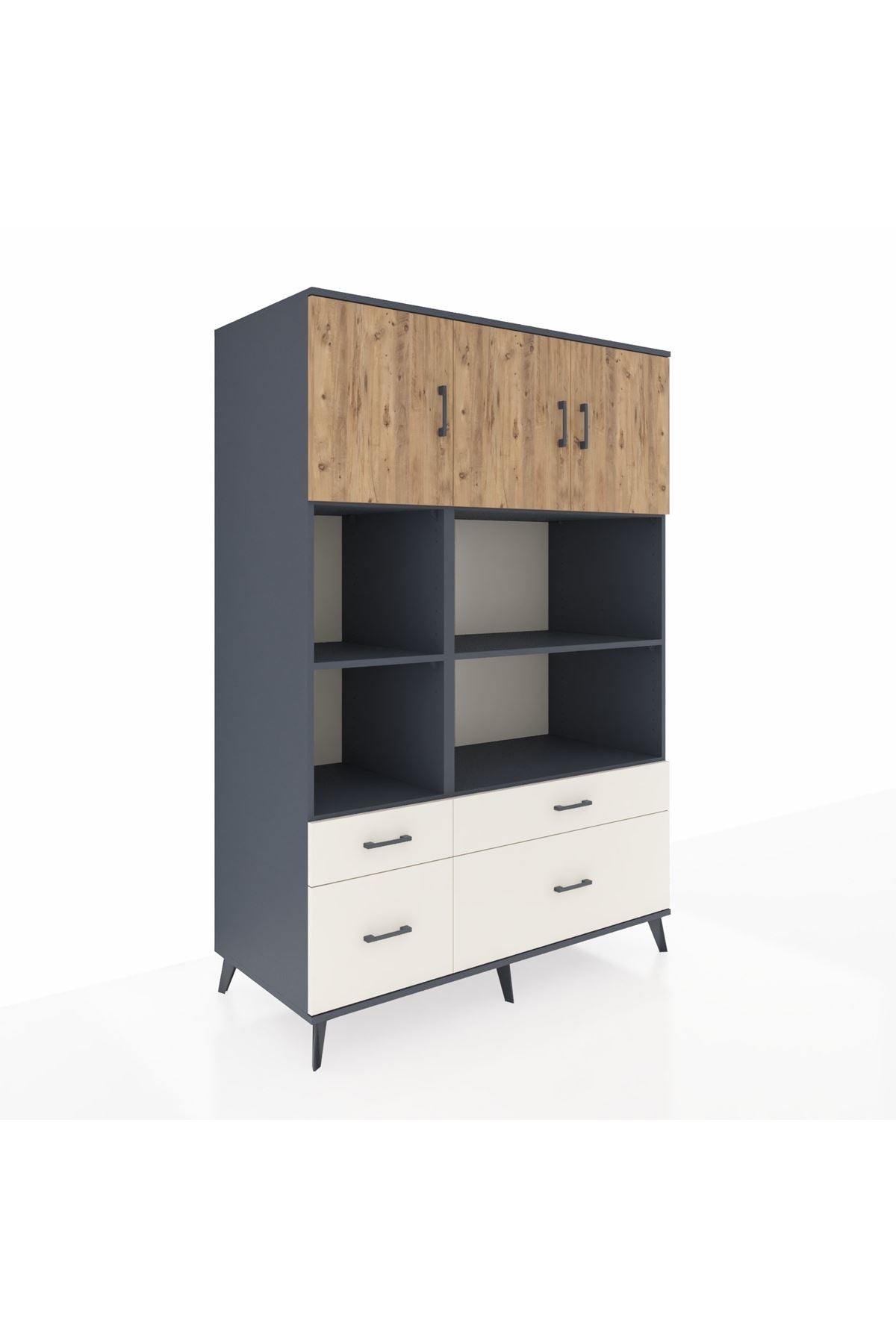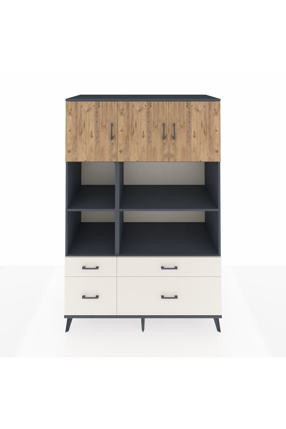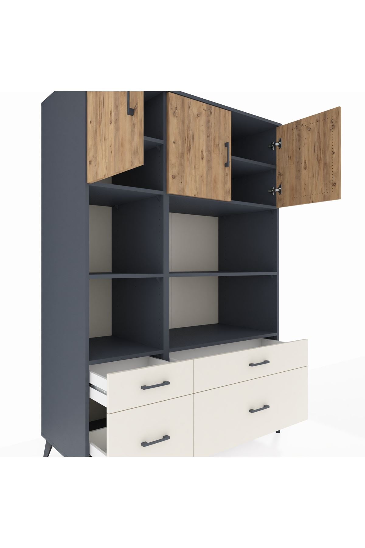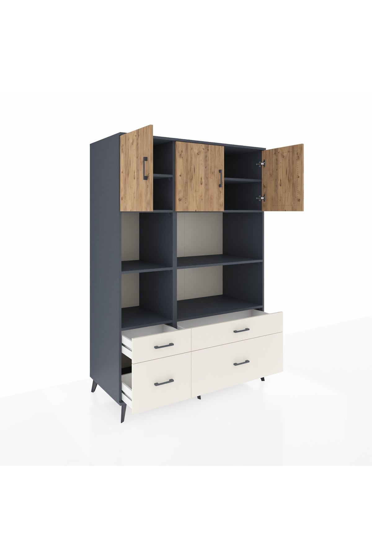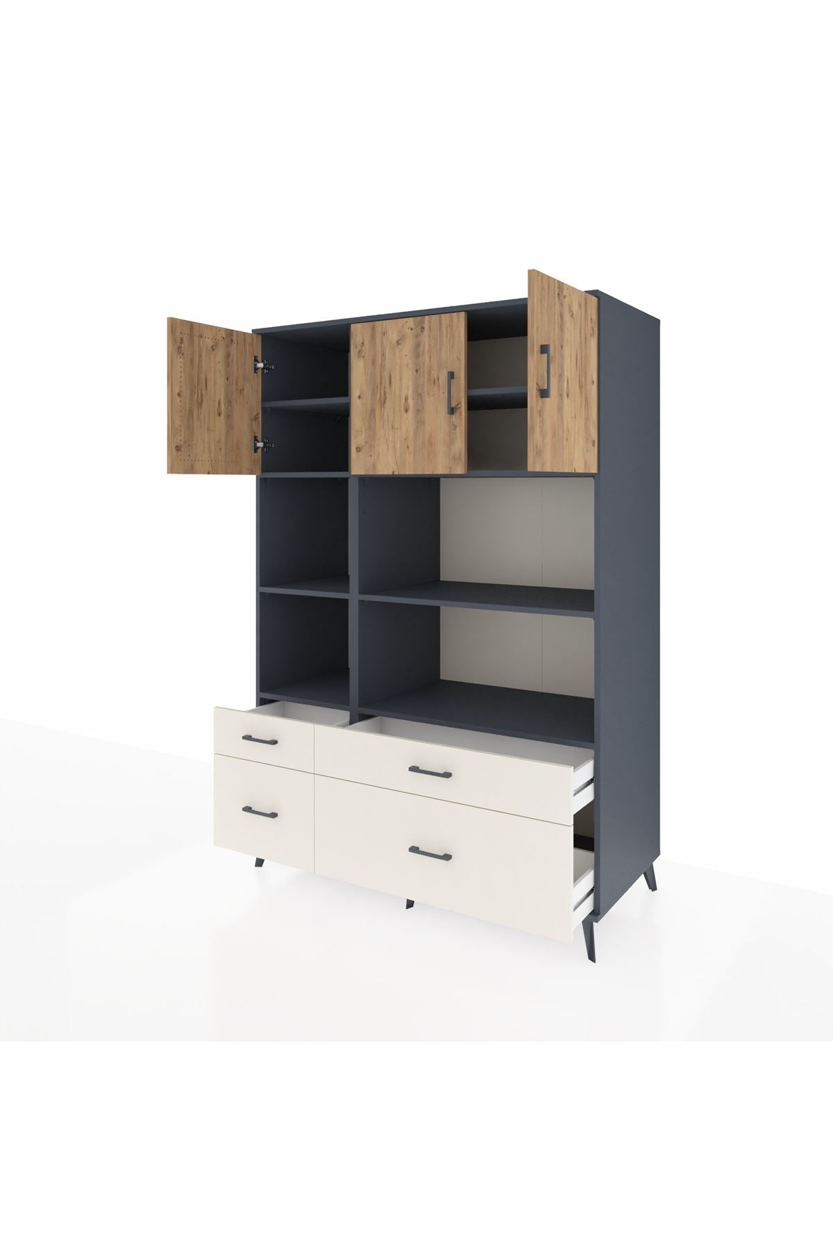 Kronos Dolap 8 Raflı 4 Çekmeceli 3 Kapaklı 132x59x195 Antrasit-Çam/Aytaşı