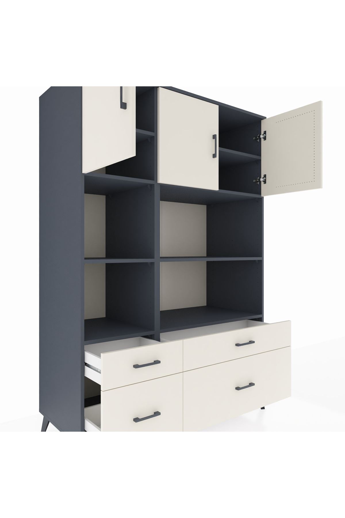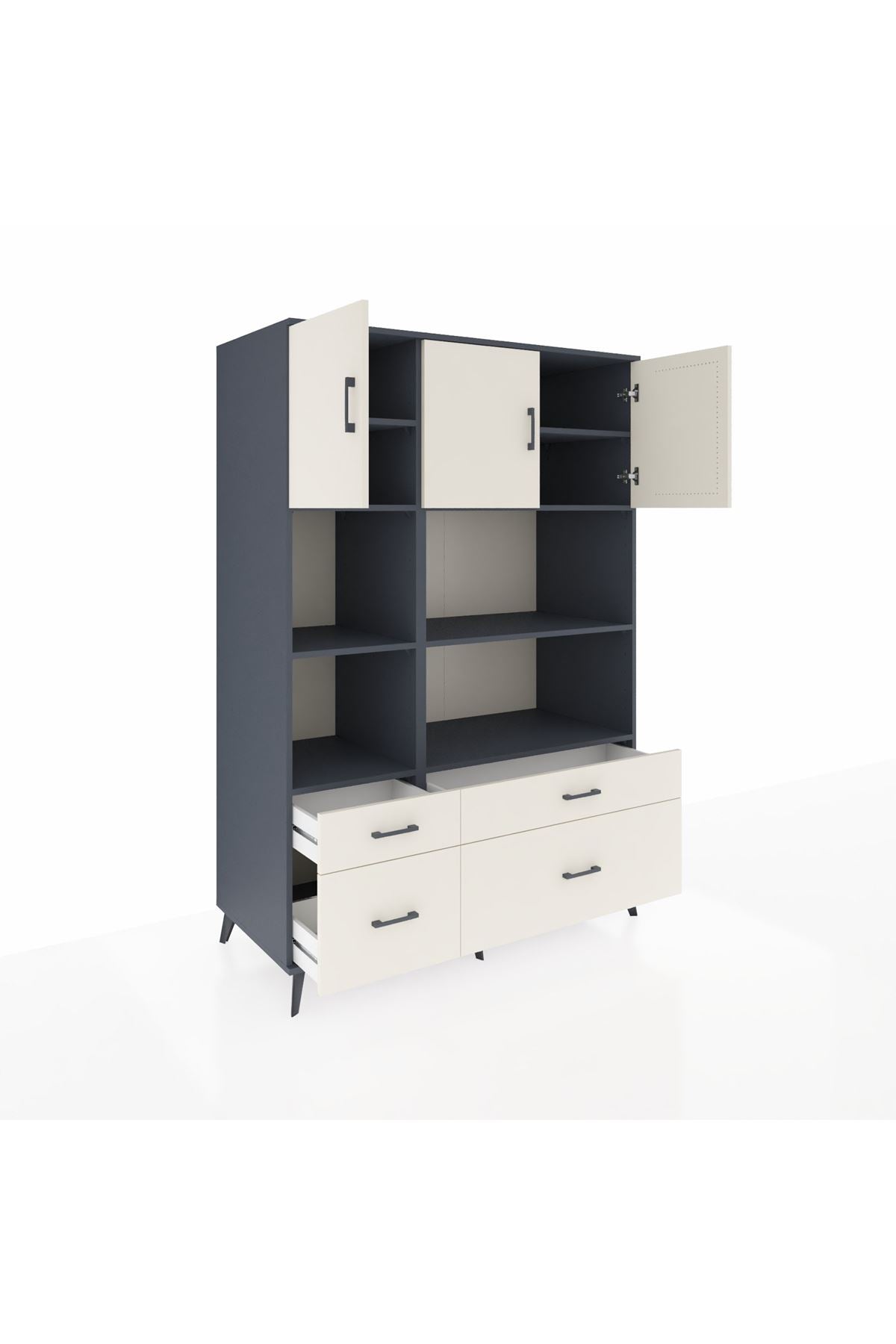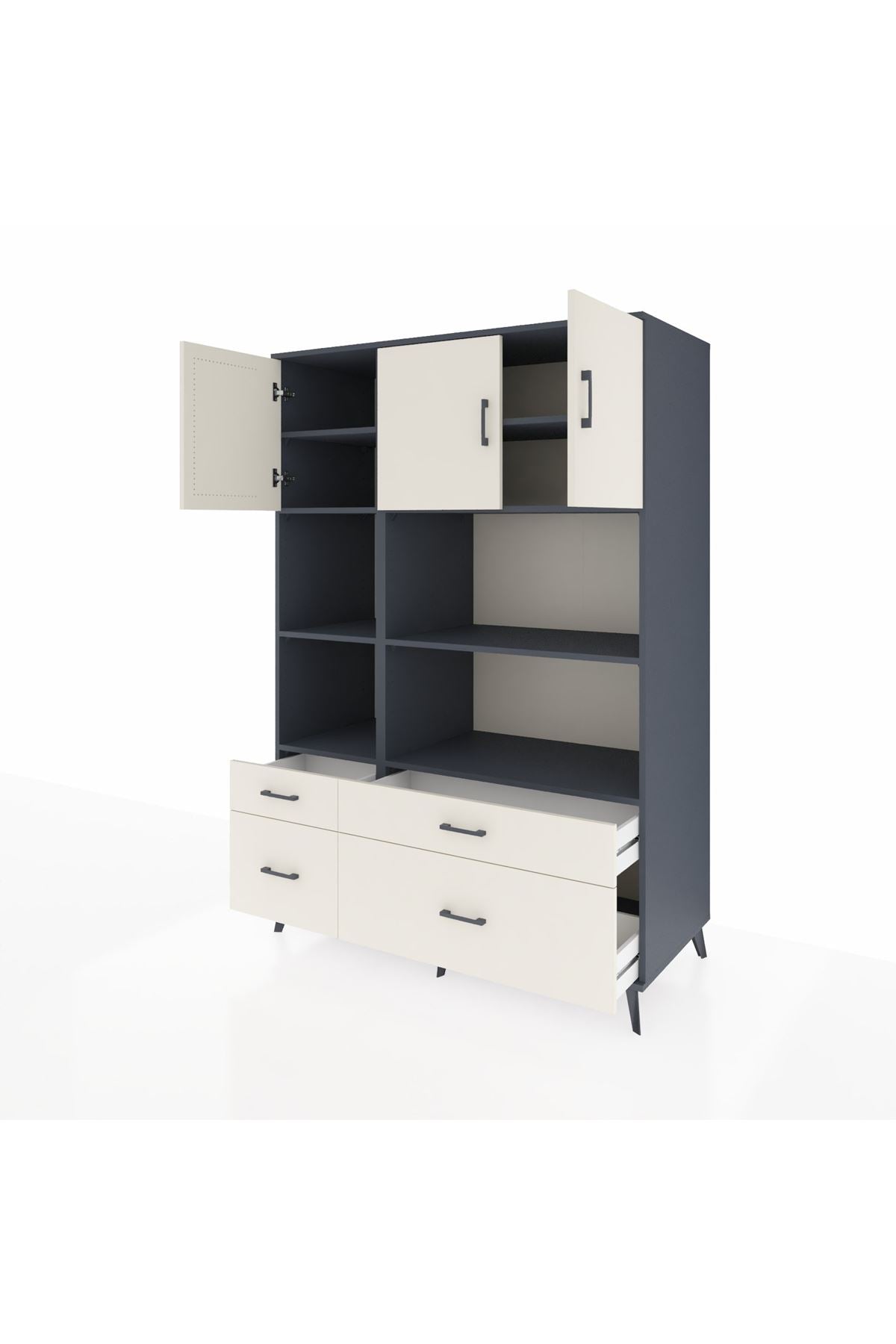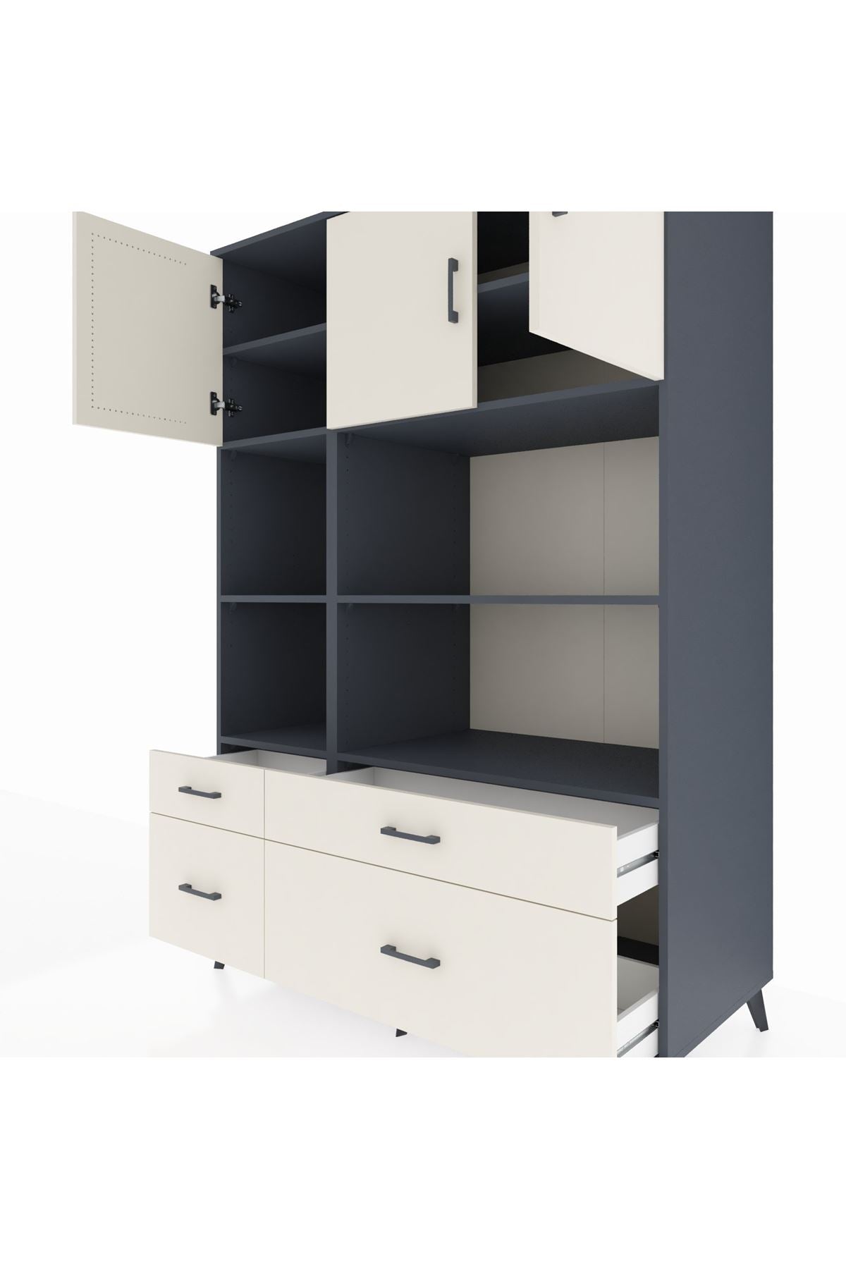 8 geniş raf, 4 derin çekmece ve 3 kapak ile hem günlük hem de sezonluk eşyalarınızı düzenlemenize yardımcı olur. 🗄️ Metal ayaklar ve sağlam metal kulplar, uzun ömürlü kullanım ve modern görünüm sunar.