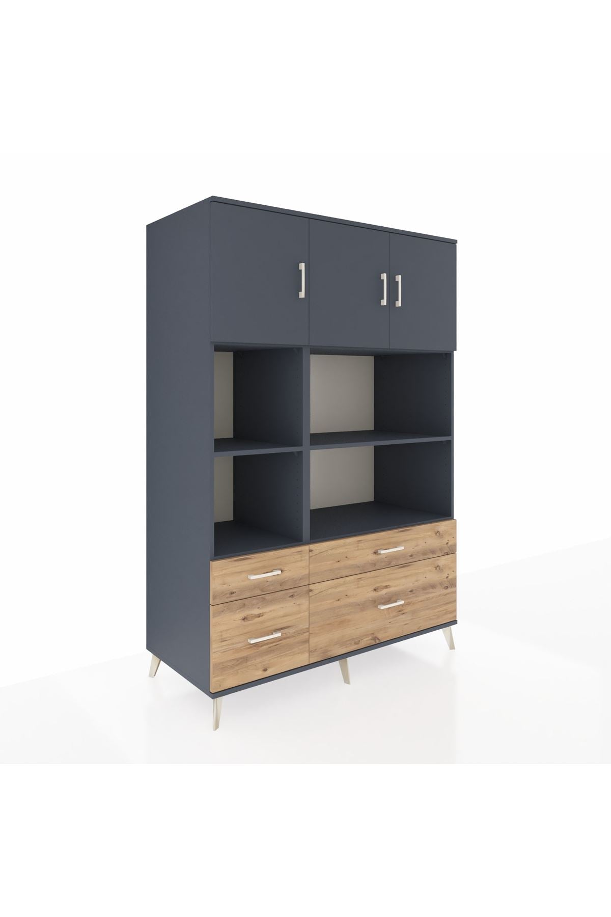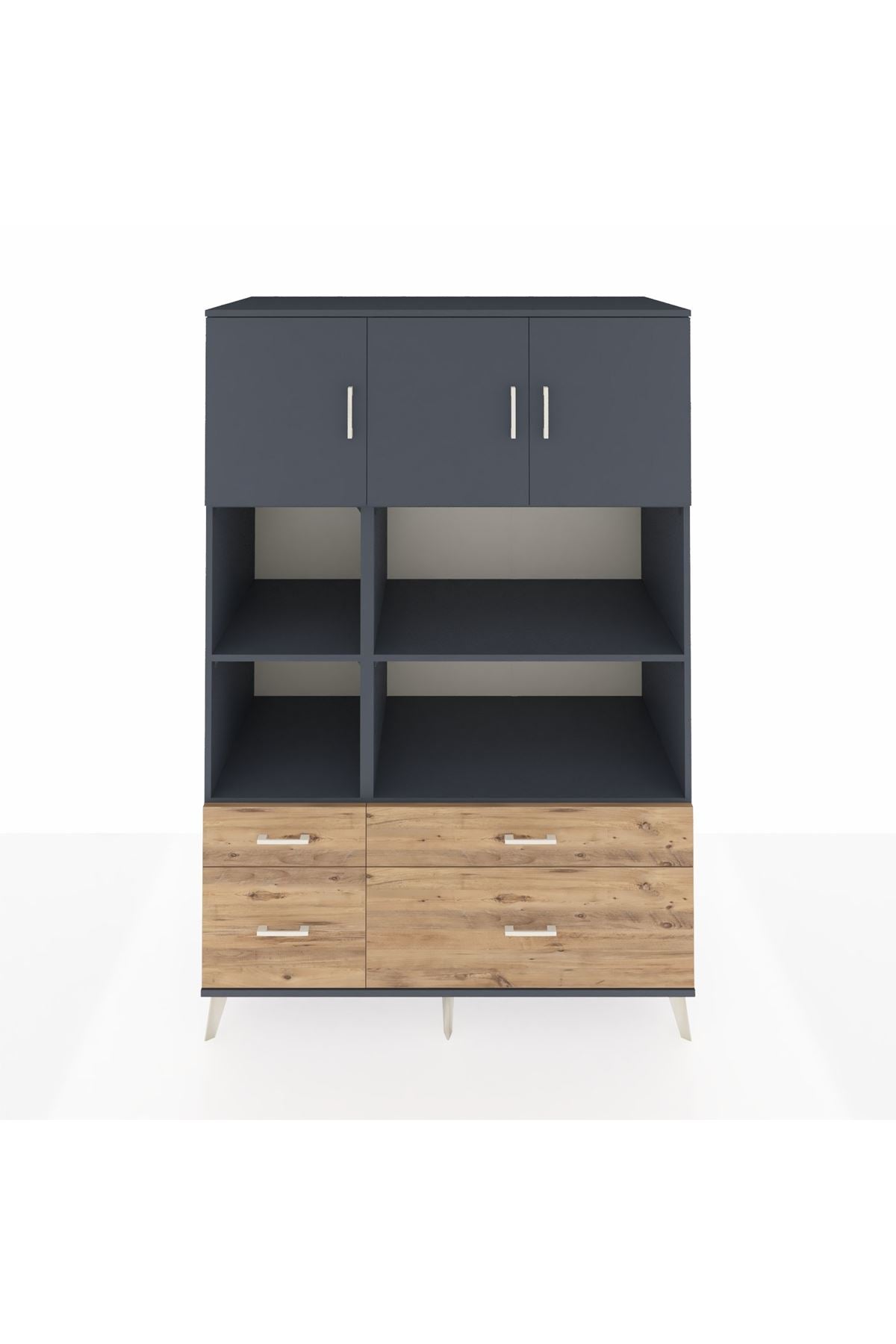 Kronos Dolap 8 Raflı 4 Çekmeceli 3 Kapaklı 132x59x195 Antrasit-Antrasit/Çam