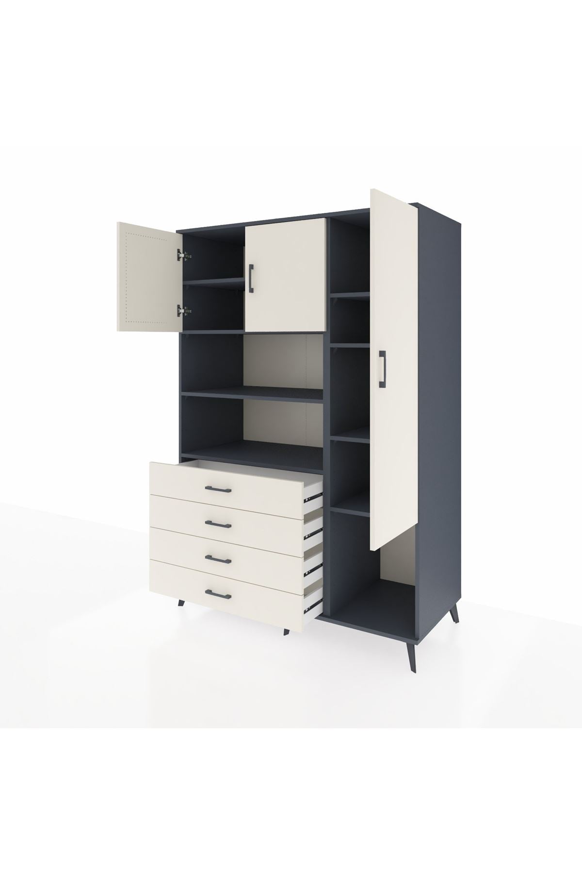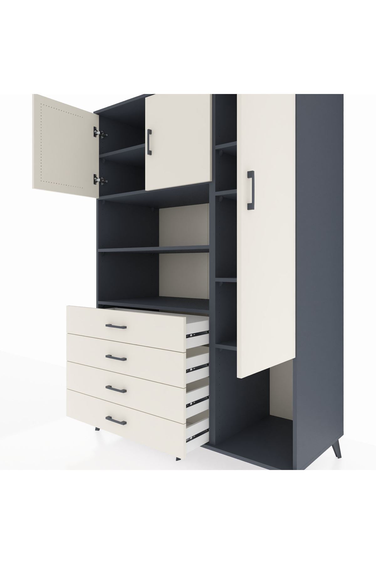 Kronos Dolap 8 Raflı 4 Çekmeceli 3 Kapaklı 132x59x195 Antrasit-Aytaşı/Aytaşı