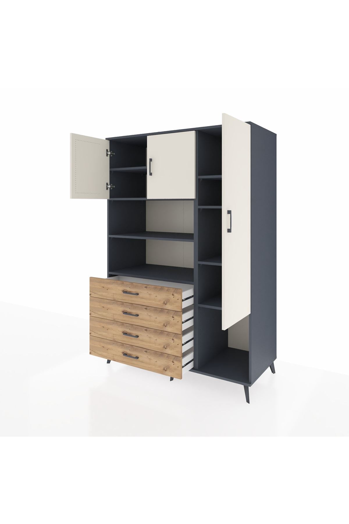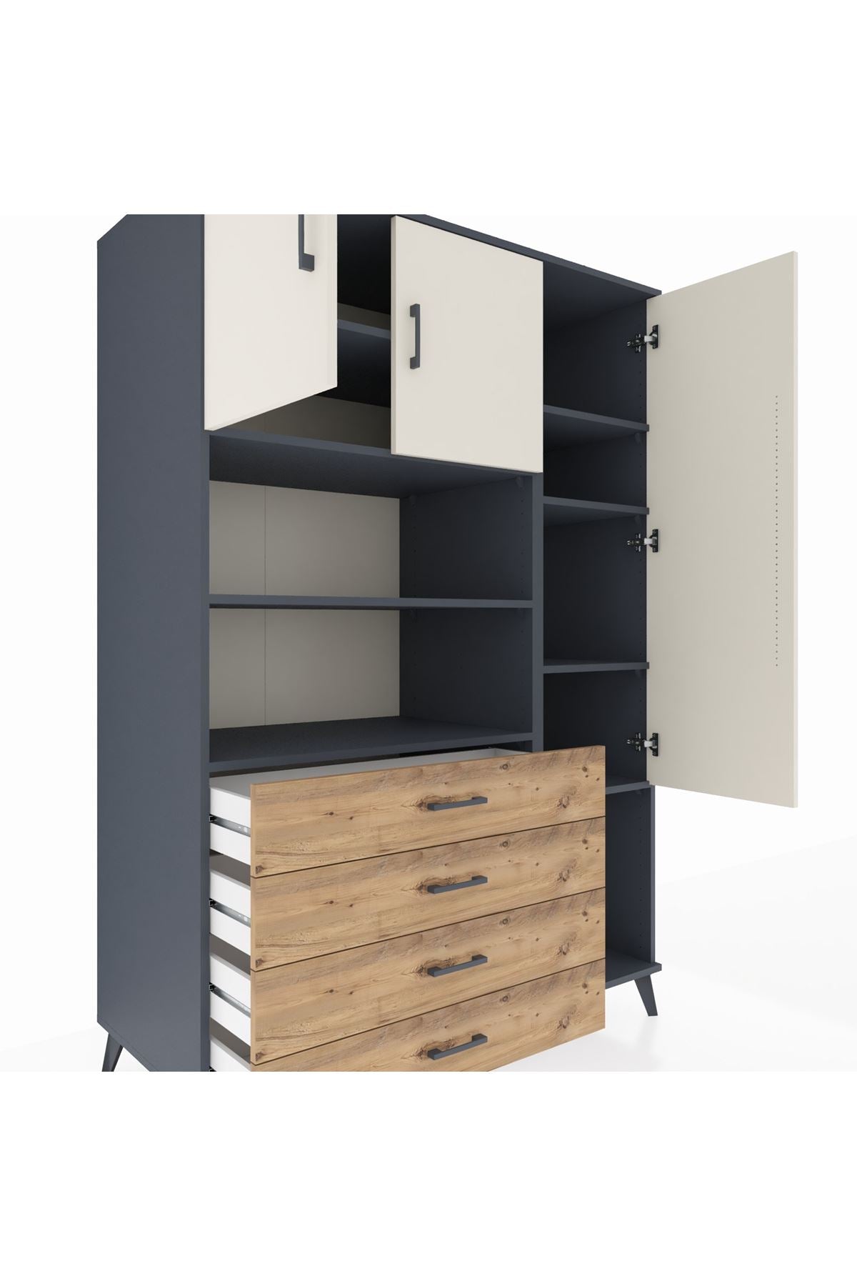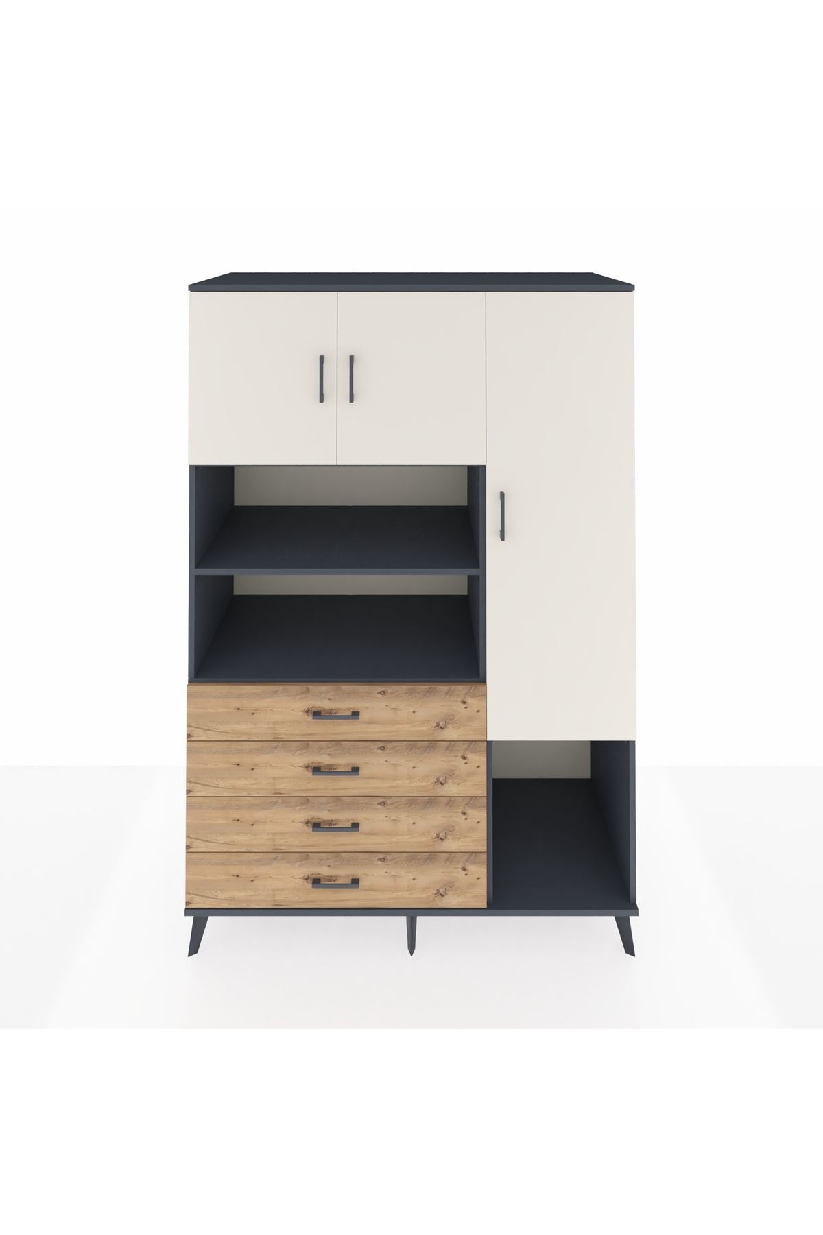 Kronos Dolap 8 Raflı 4 Çekmeceli 3 Kapaklı 132x59x195 Antrasit-Aytaşı/Çam