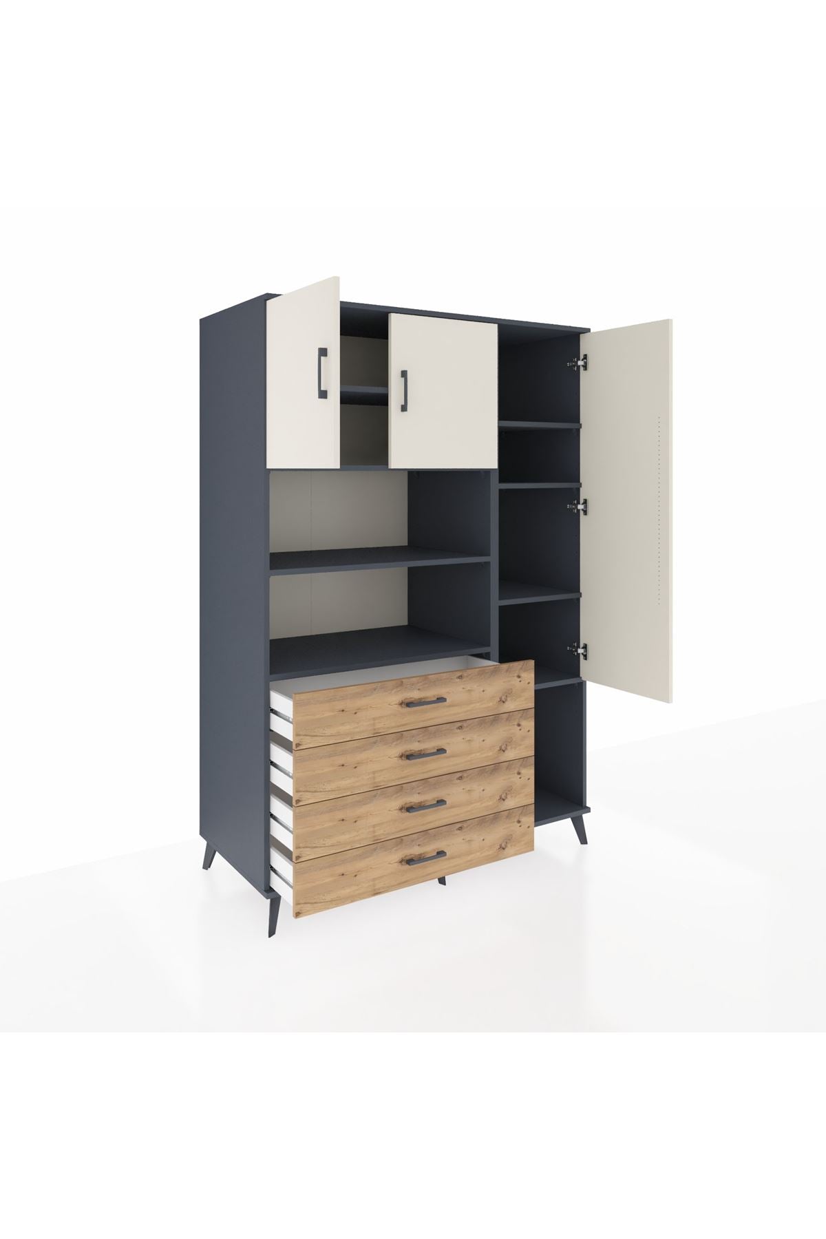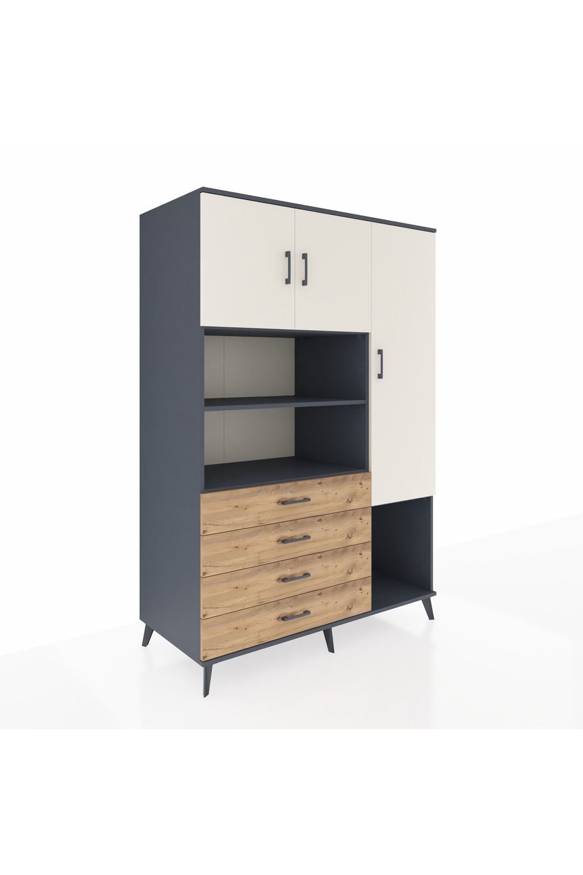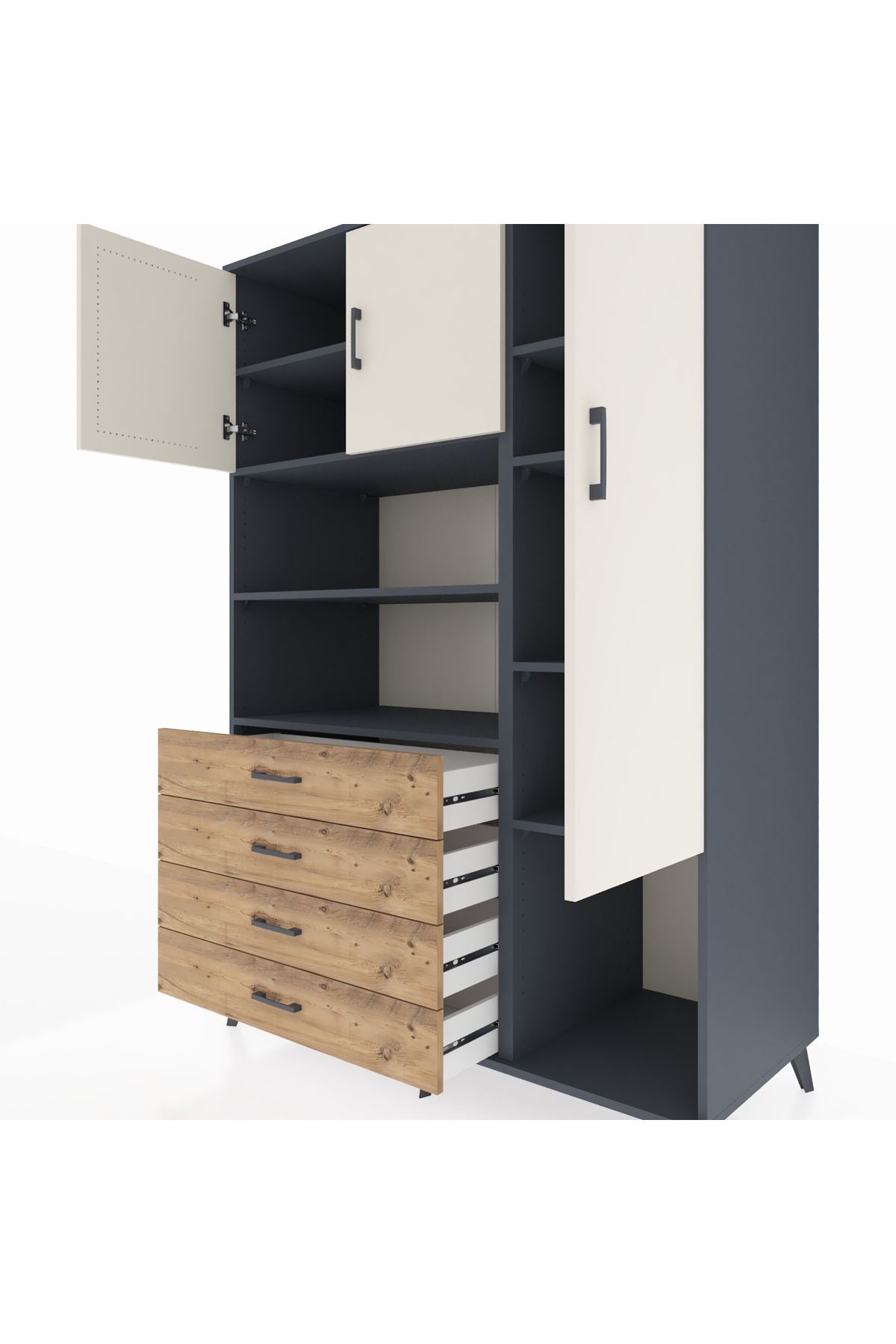 Kronos Dolap 8 Raflı 4 Çekmeceli 3 Kapaklı 132x59x195 Antrasit-Aytaşı/Çam