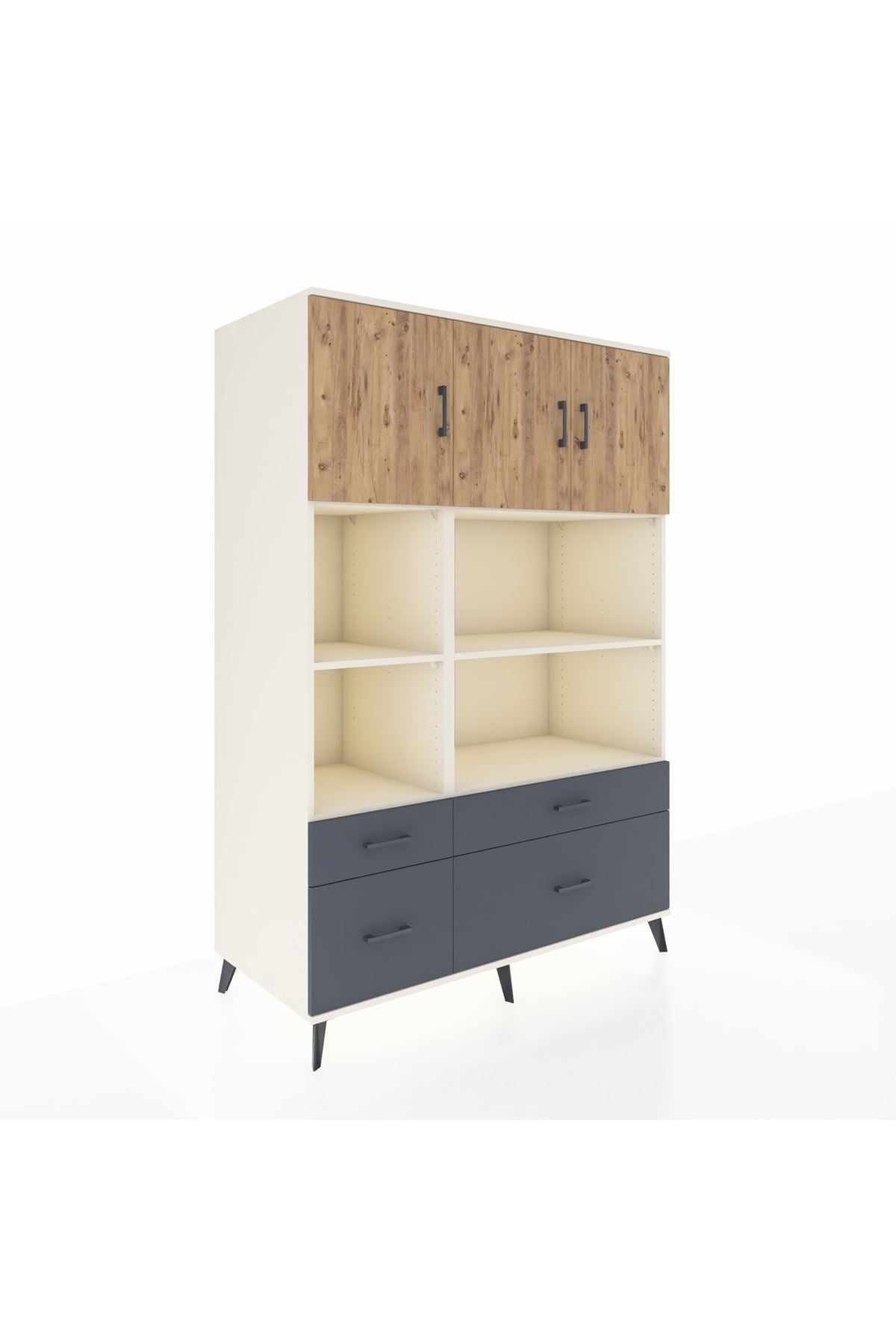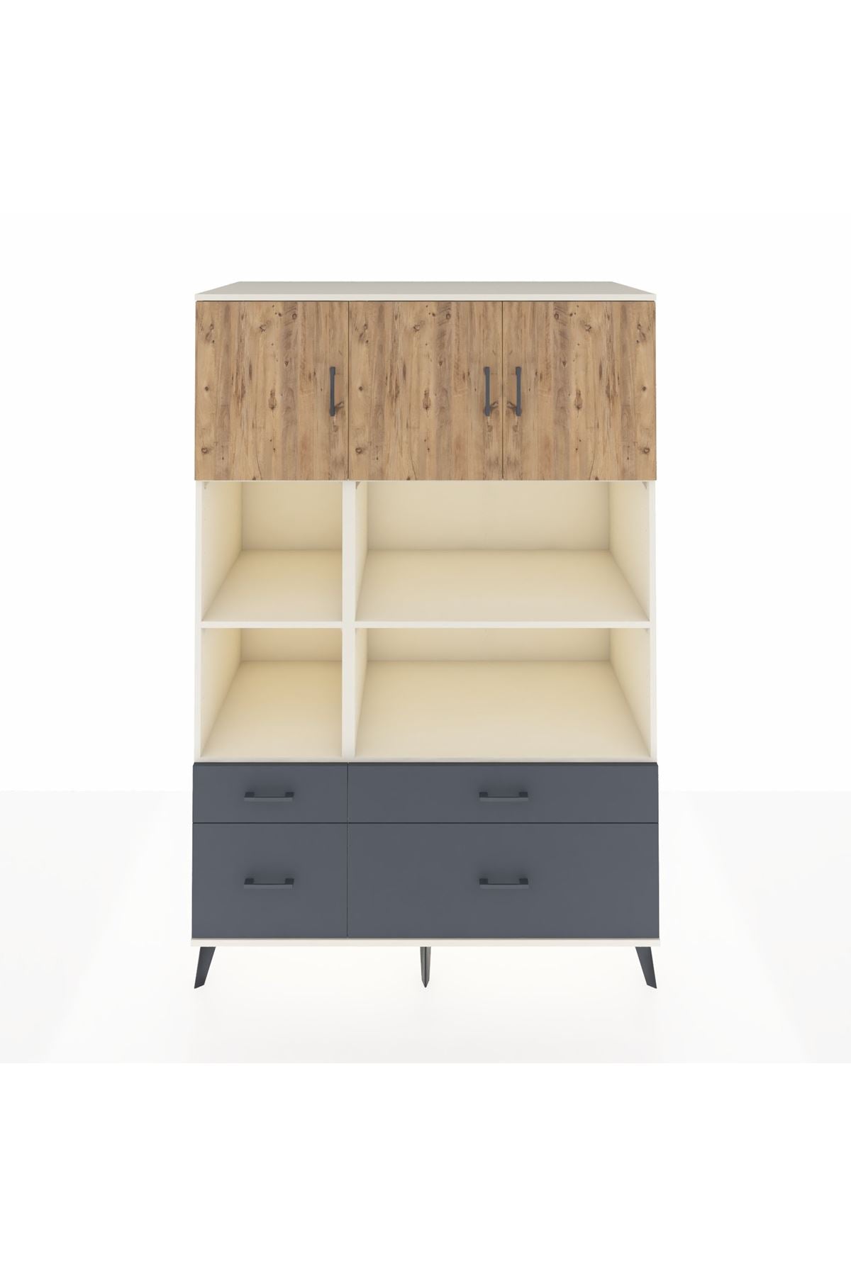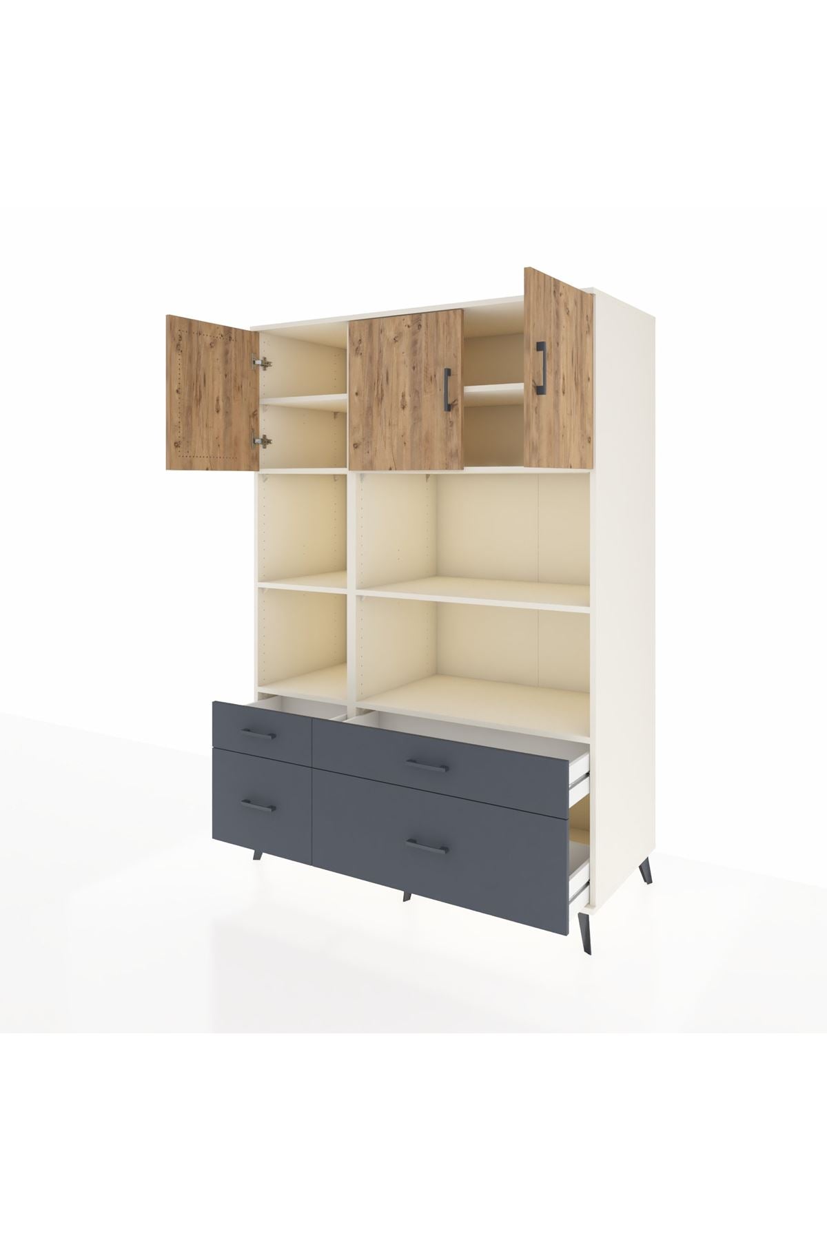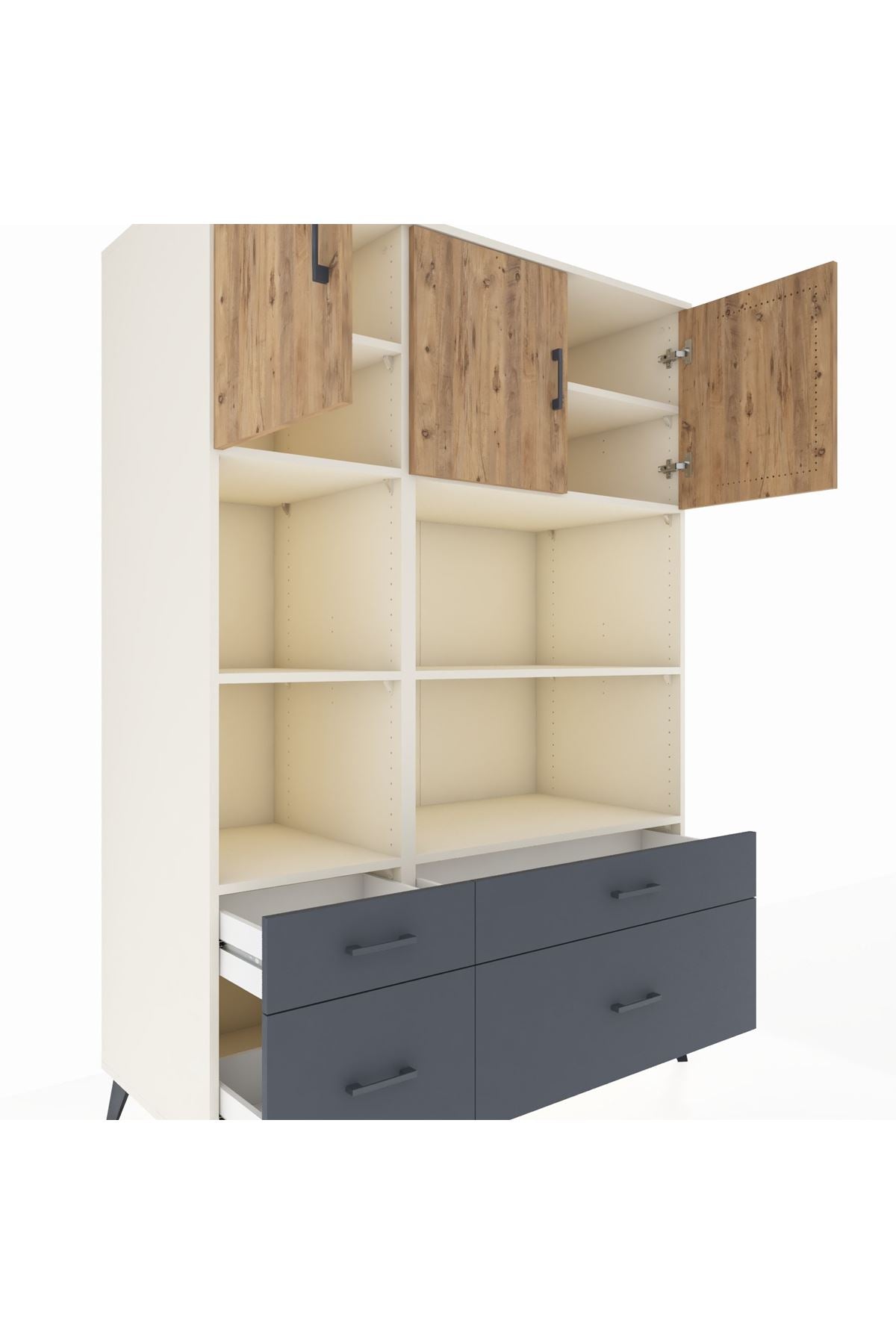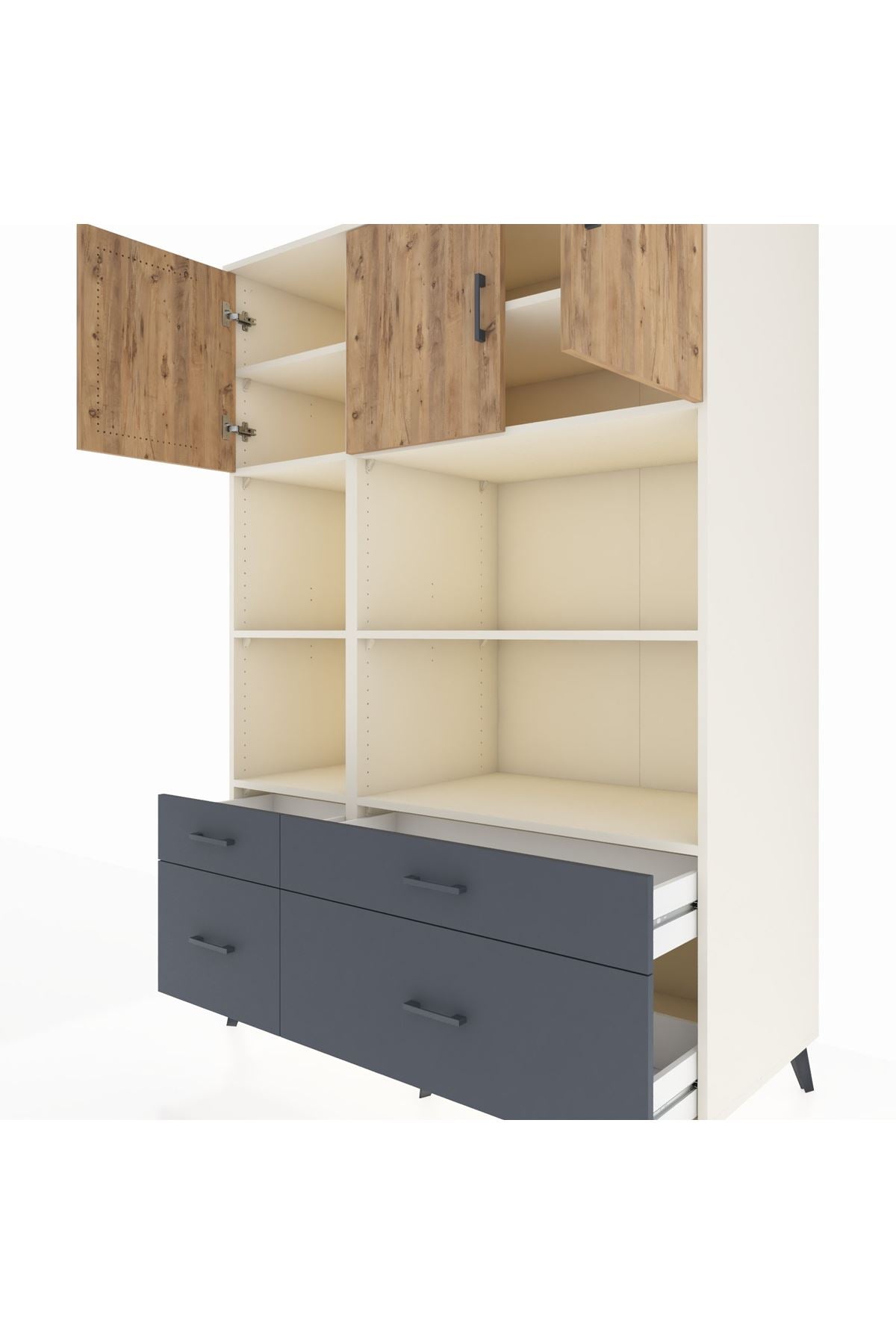 Kronos Dolap 8 Raflı 4 Çekmeceli 3 Kapaklı 132x59x195 Aytaşı-Çam/Antrasit