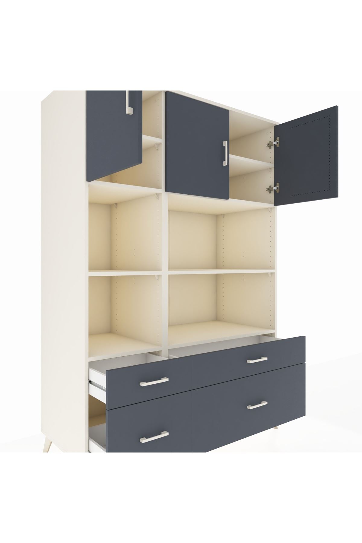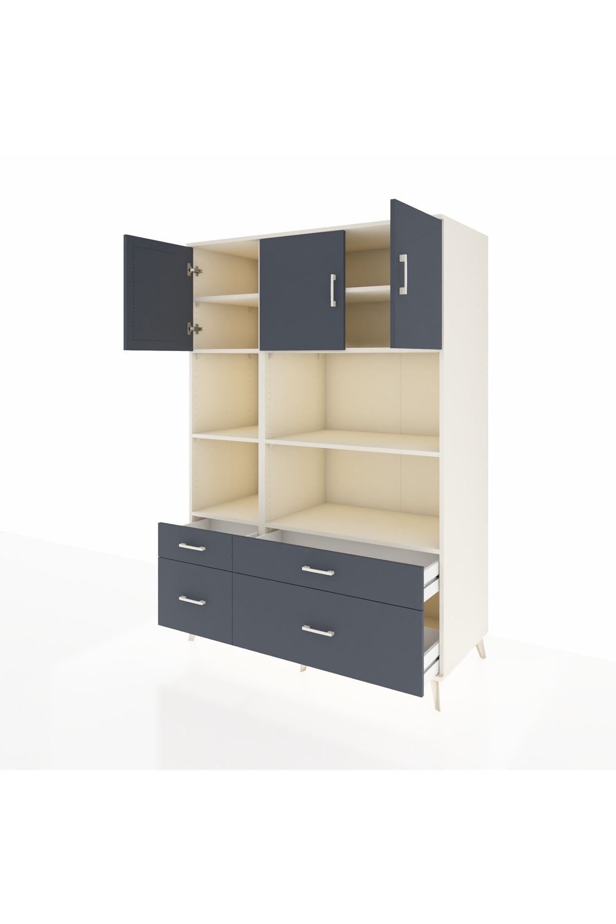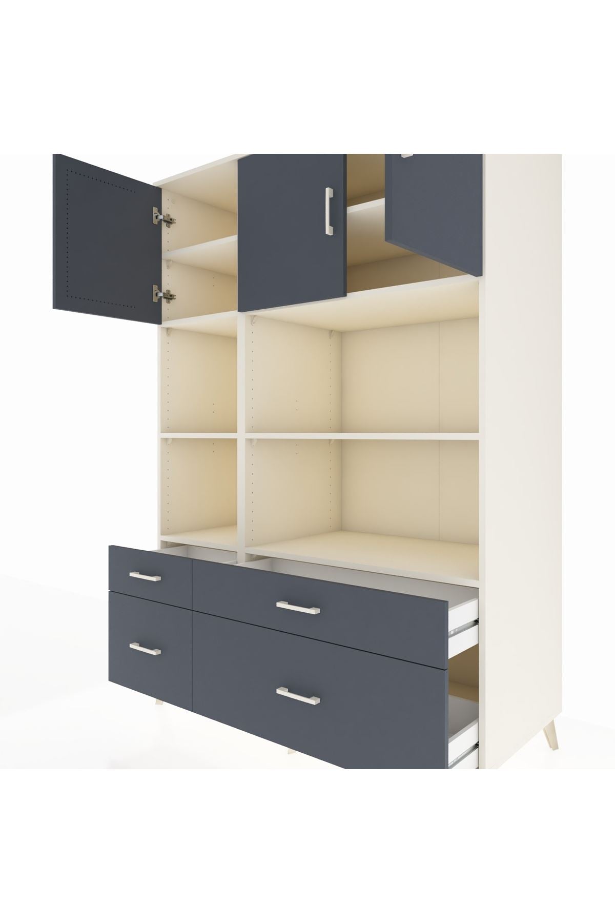 Geniş hacmiyle 8 kullanışlı raf, 4 ferah çekmece ve 3 sağlam kapak bir araya geliyor. 🗄️ Tüm kıyafetleriniz, evraklarınız veya ev eşyalarınız için ideal depolama sunuyor.